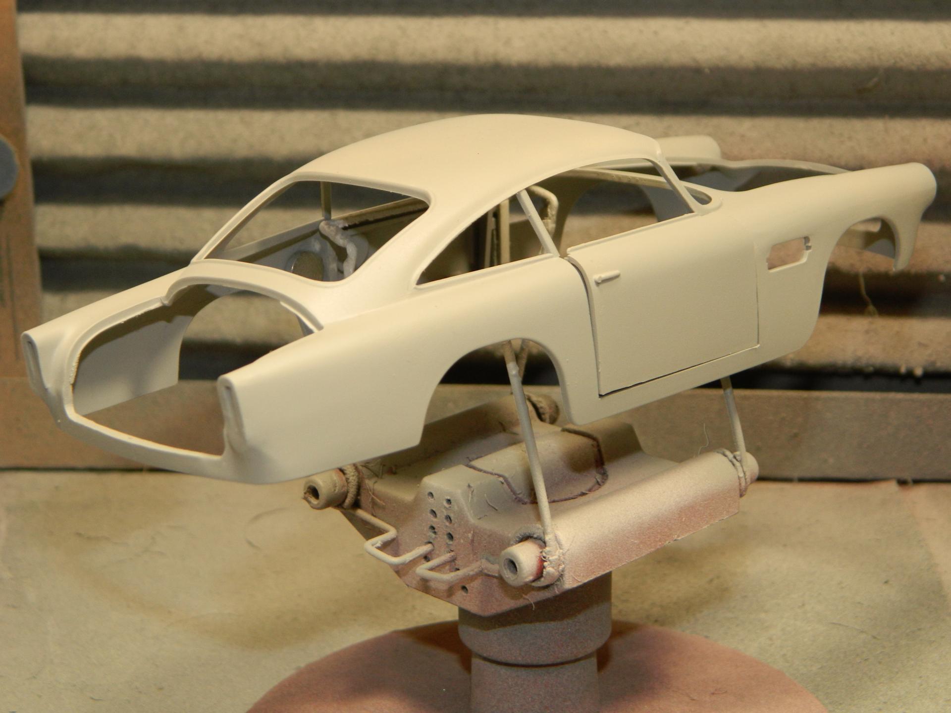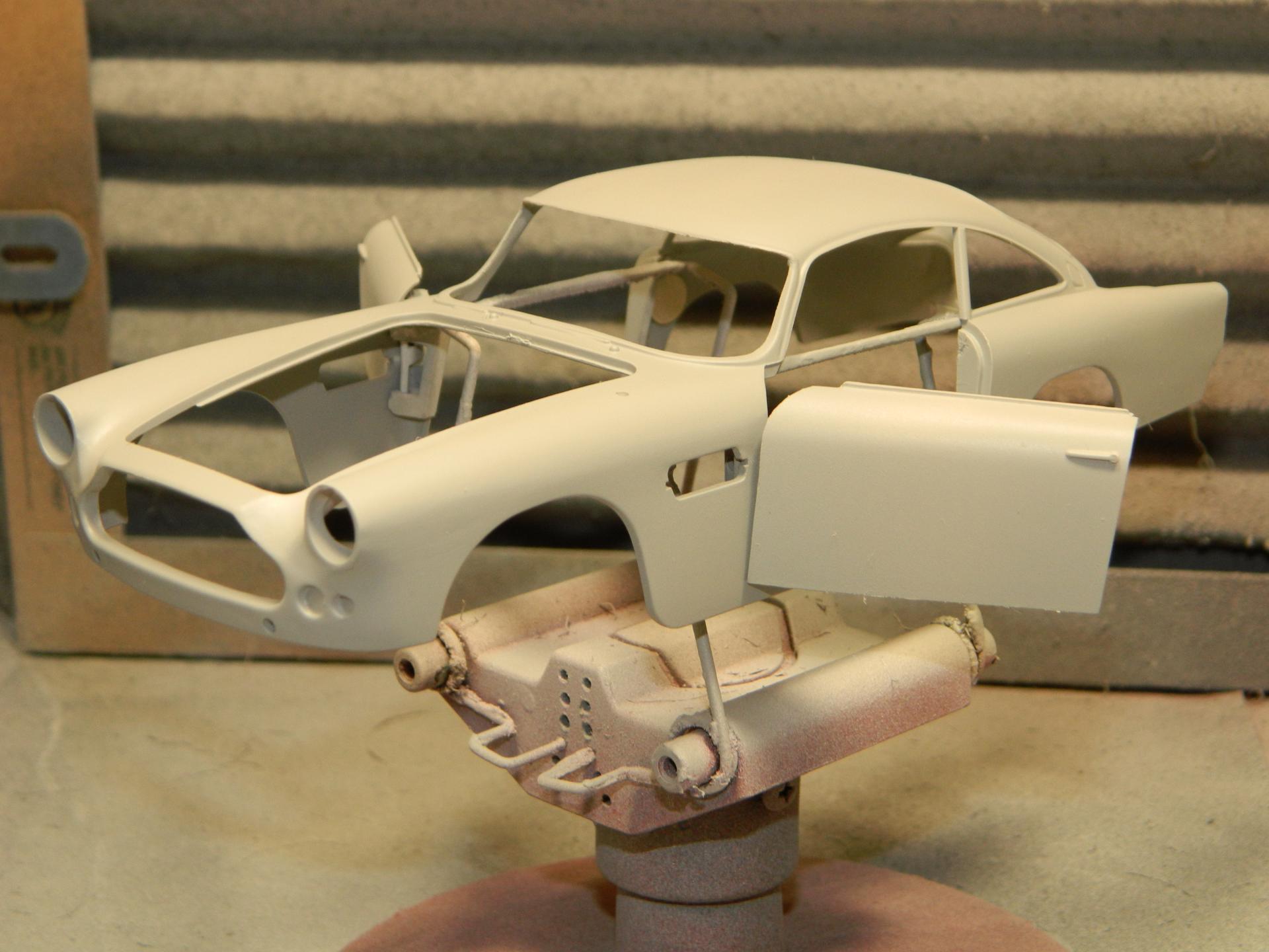 I gave the Aston what maybe its final coat of primer before paint. The paint will be Tamiya TS-30 Silver Leaf. The last picture is of the hood, trunk lid, front and rear valances. More to come...