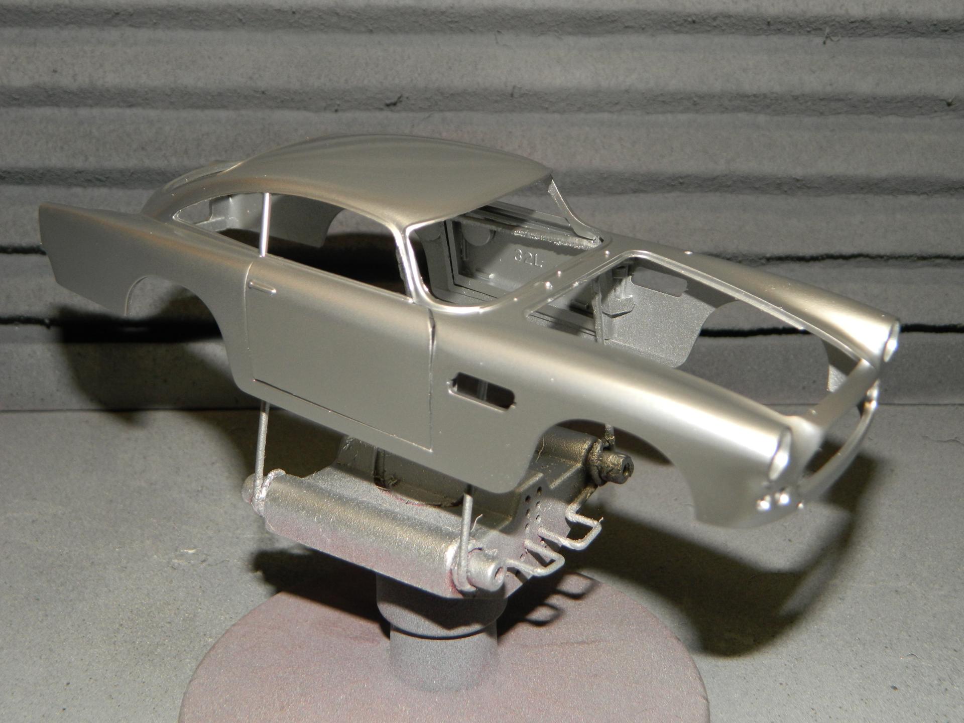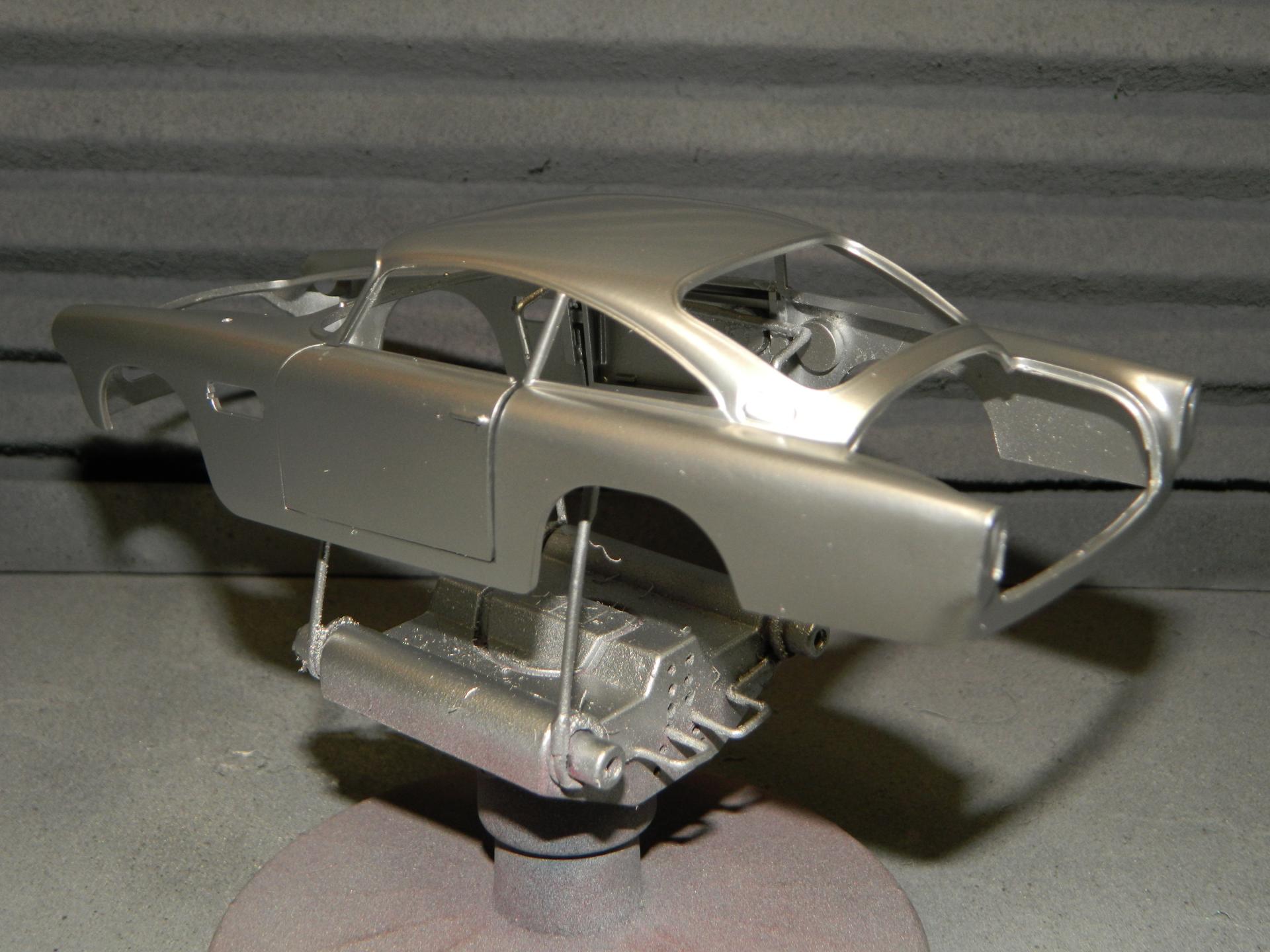 Paint was flying today in mrmike's Model Cave! I painted the Aston Martin DB4 with Tamiya TS-30 Silver Leaf. So far, so good. Very little trash in the paint. I will add a couple more coats of paint later followed by several coats of Tamiya TS-13 Clear. More to come...
