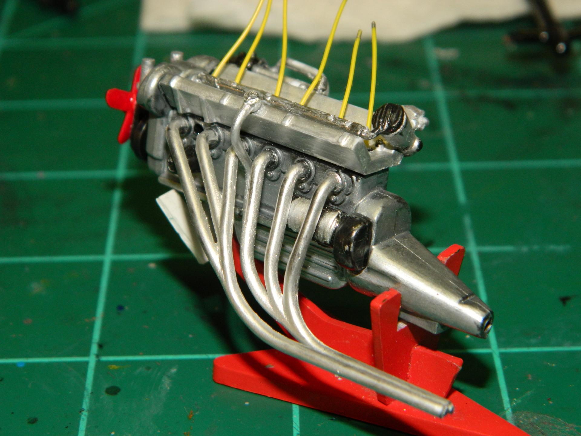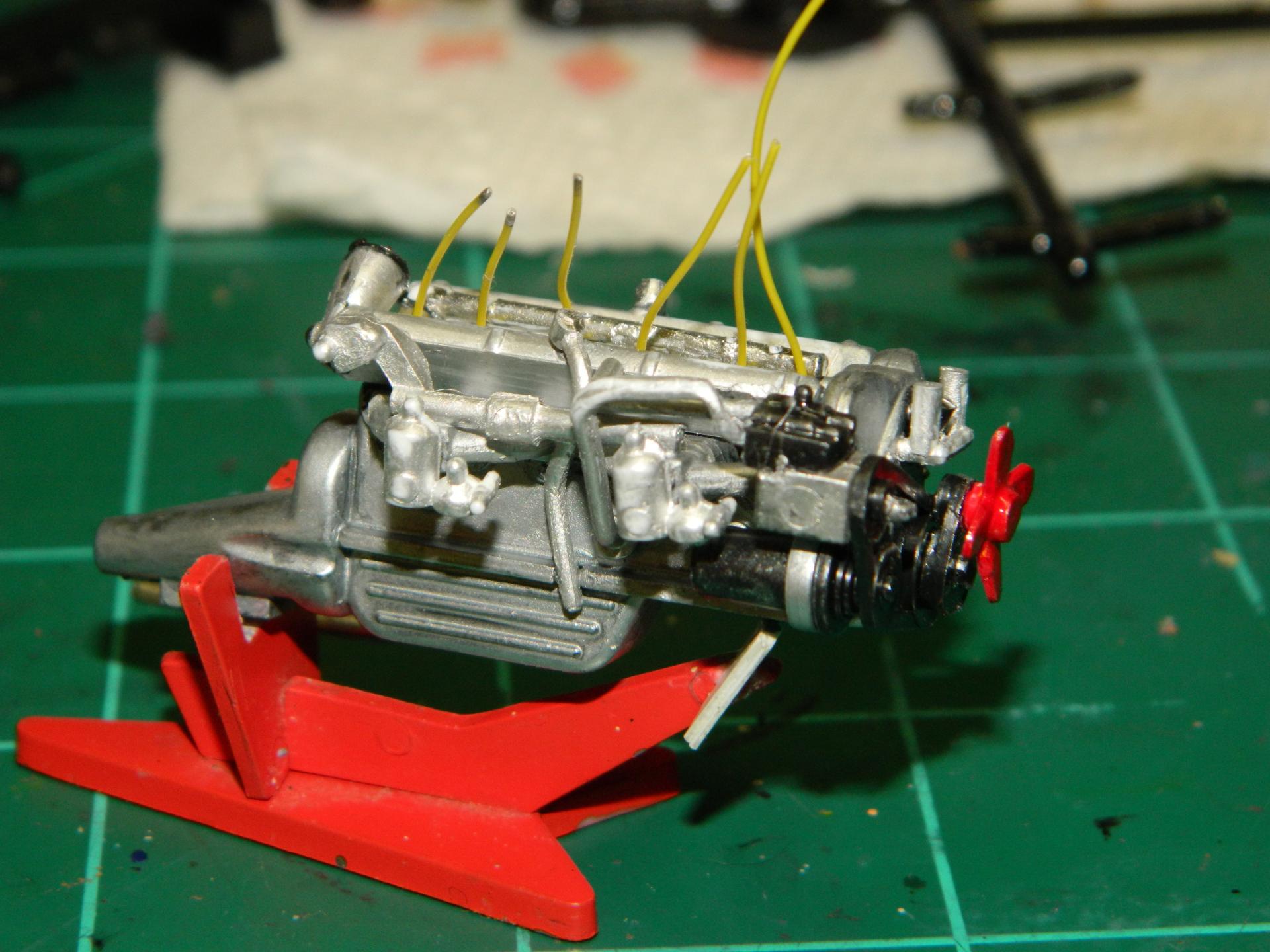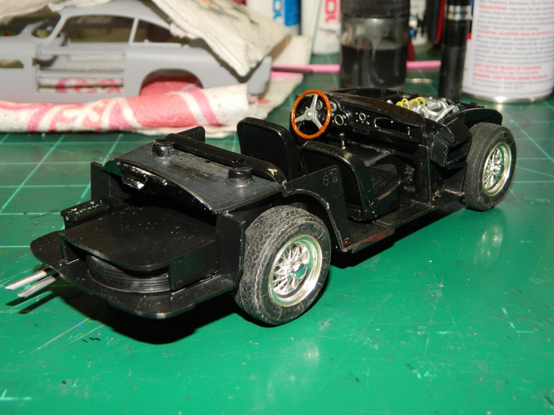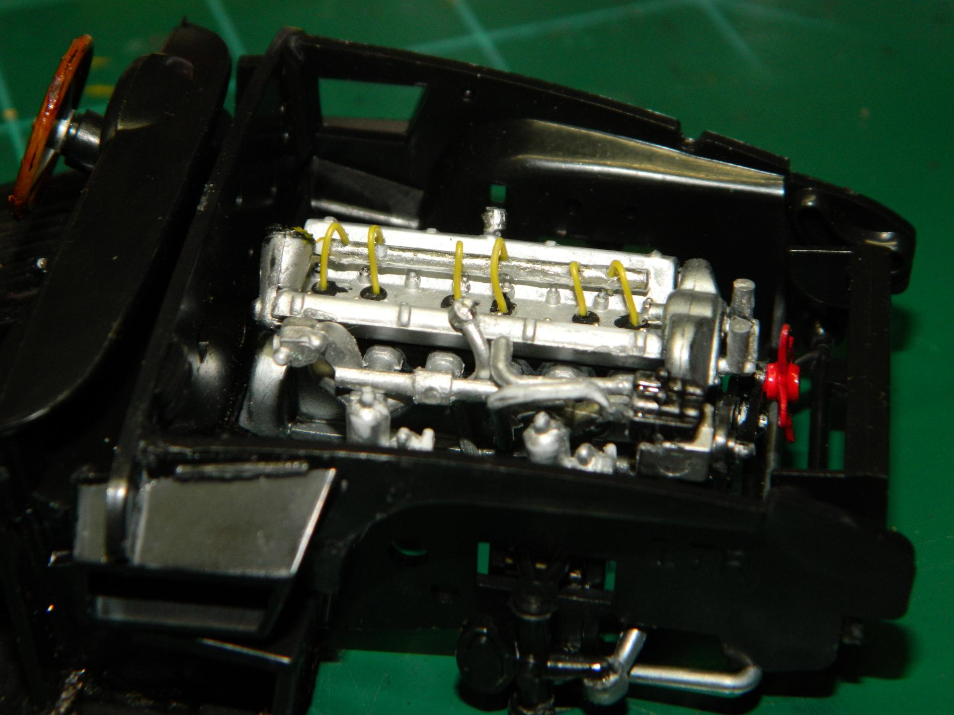 A little progress on the DB4 3.7 Liter engine. I got the wires installed into the plug holes and the plug wire tube with holes drilled for the plug wires. I removed the clamps from the chassis/interior and finished the interior. I added the front and rear suspensions. More to come...