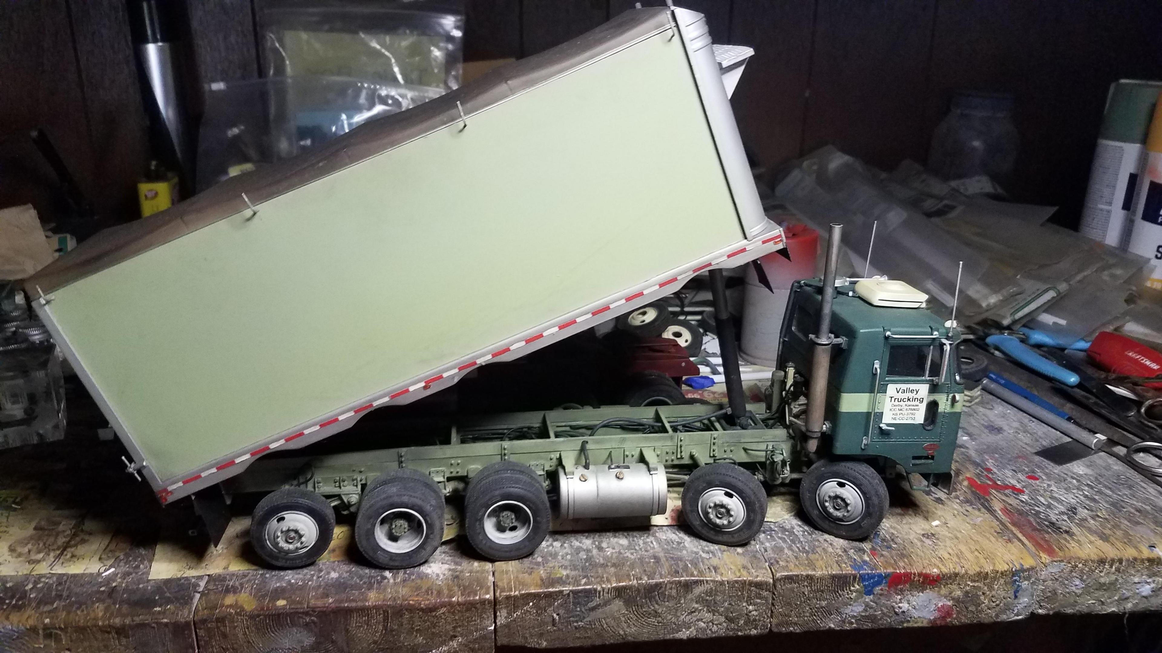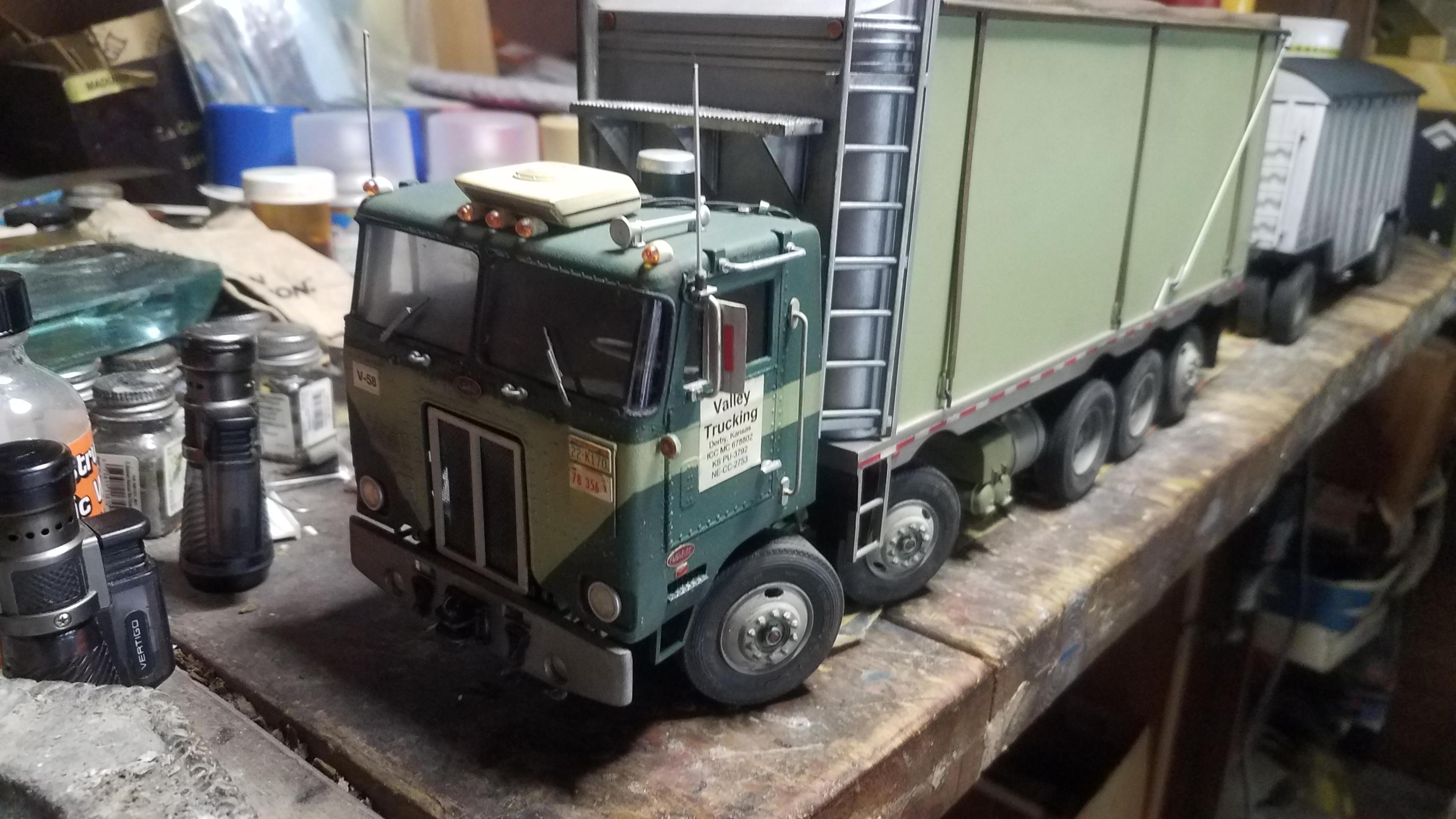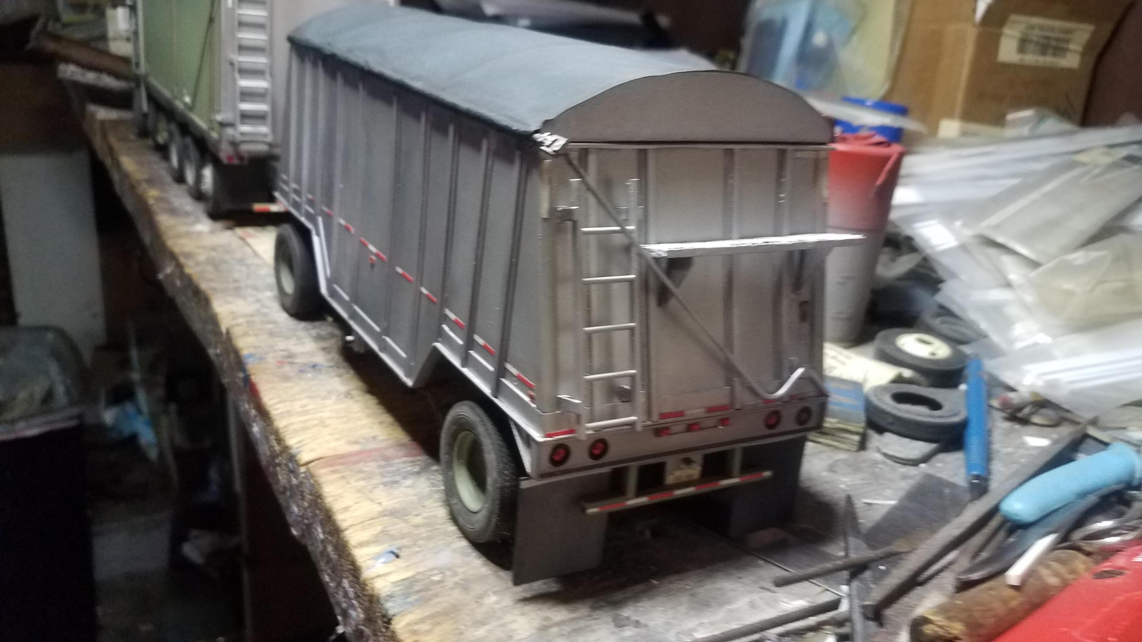 6. Never seem to post anything finished so I thought I would post one. Twin steer straight truck with agricultural body and 22.5 ft ag hopper full trailer.