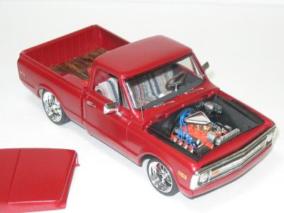 This is my latest model, it is a 1970 Chevy pickup. Sorry about the quality of the photo's. This stated out 15 years ago with a Chevy short box pieces I bought at a show in Toronto for a couple of bucks, I kept running into this short box pieces, i came up with an idea and the rest it history. Looks better in person, will add better pic's once the wife gets off the lap top.