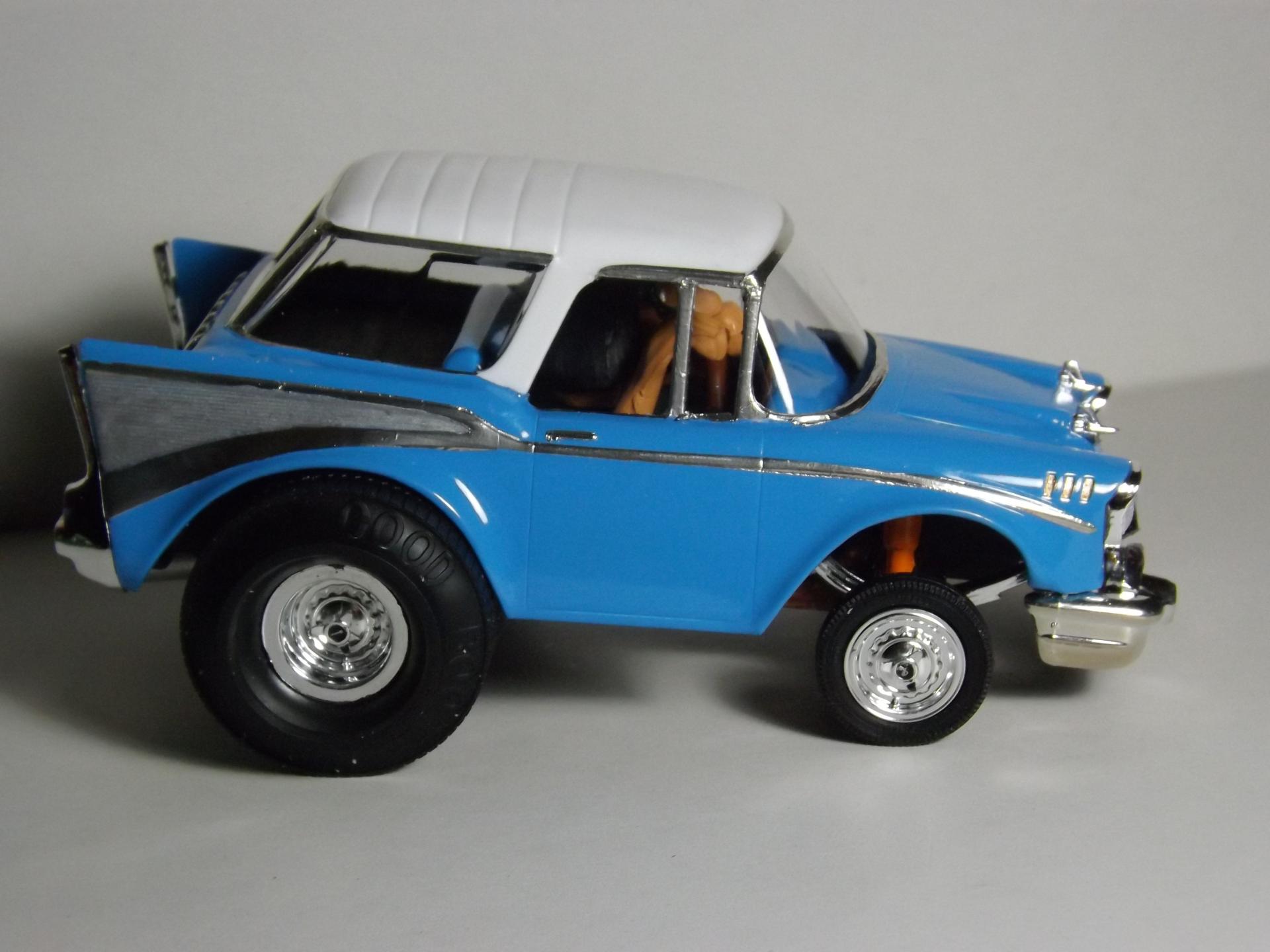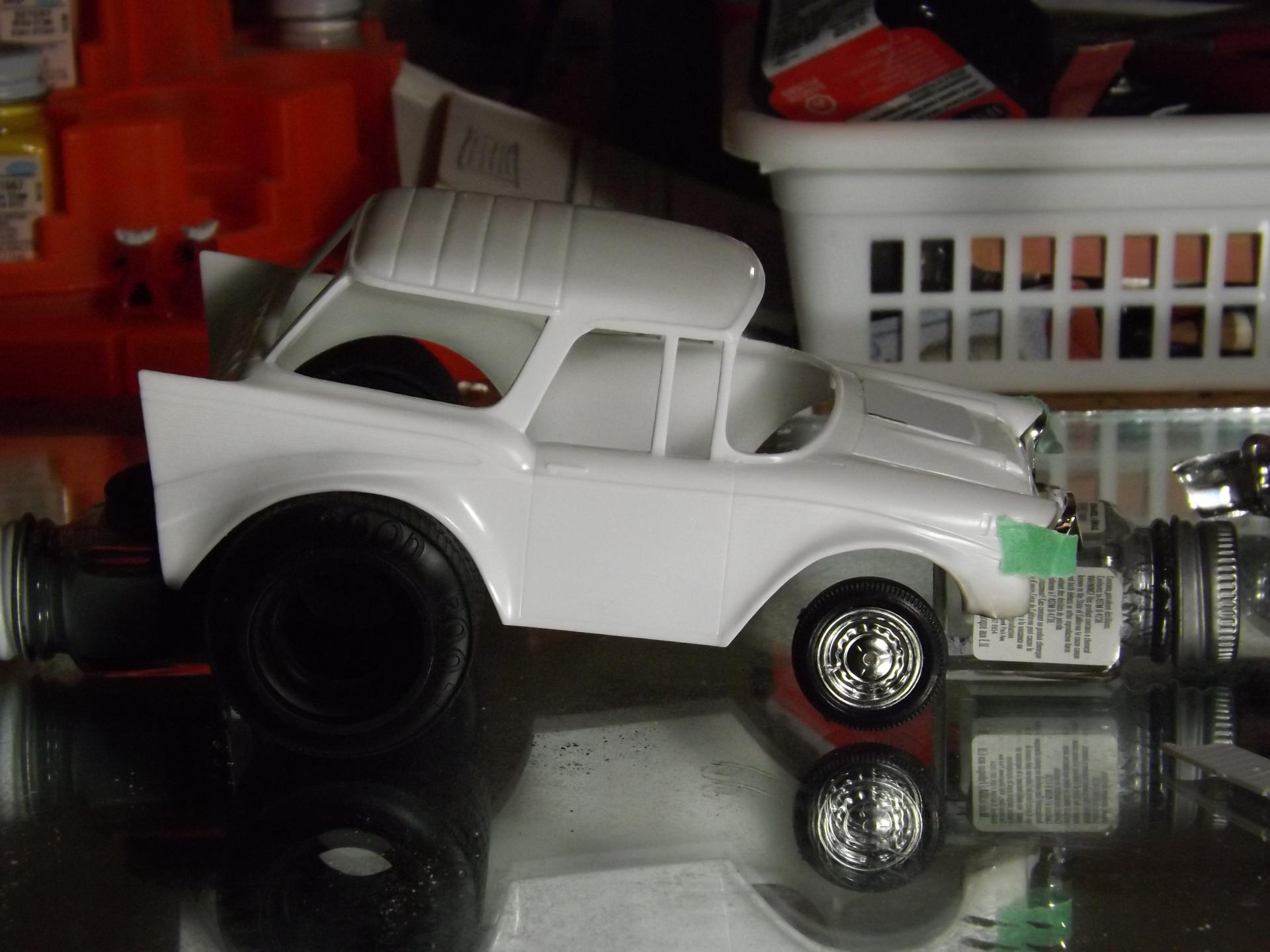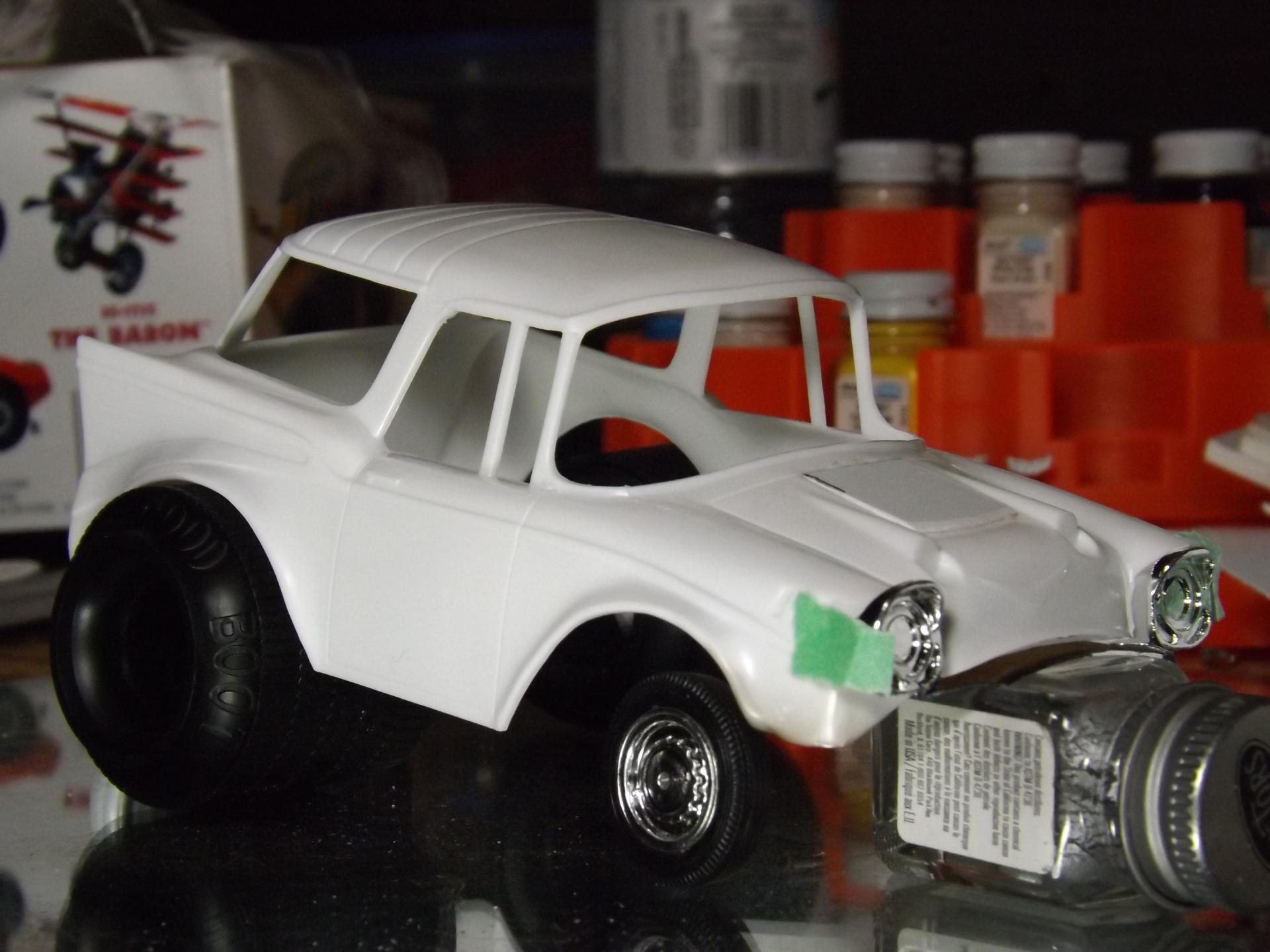 I just finished a Dave Deal Deal's Wheels. I started it last week and it was a fun little kit to build, I did change a few things that I didn't like about the kit. First filled the hood go rid of the Blower and the headers, wheelie wheels, narrowed the rear tires and cut down the wheels, aluminium tubing tale pipes, lowered the front end, added from the newest AMT 1957 Chevy kit hub caps, hood bullets and same AMT kit cut down a front bumper(narrowed) and this is what I got. Took a week and what fun it was, I may have to find my VW Bus Deals Wheels and do it next. Enjoy!