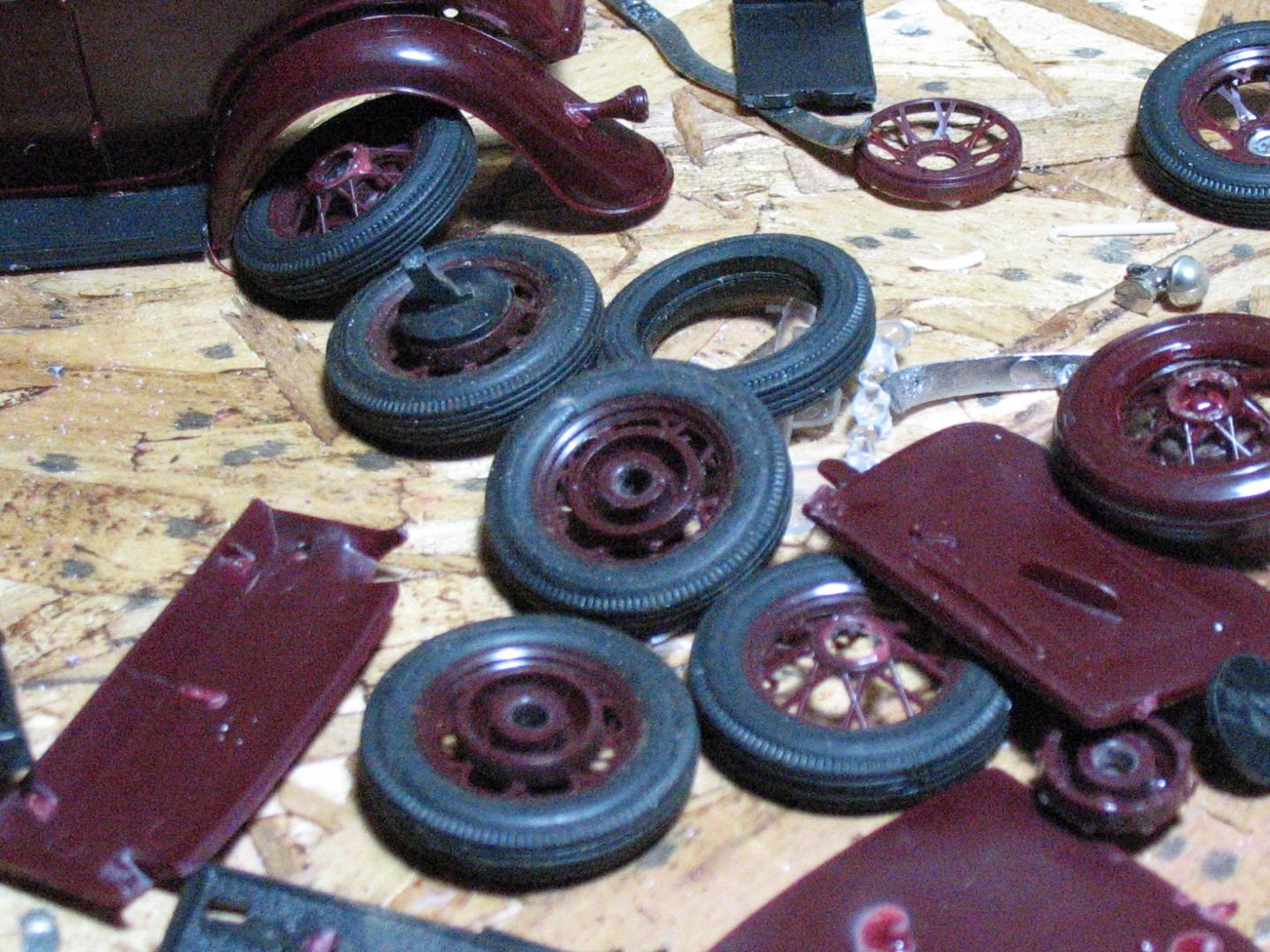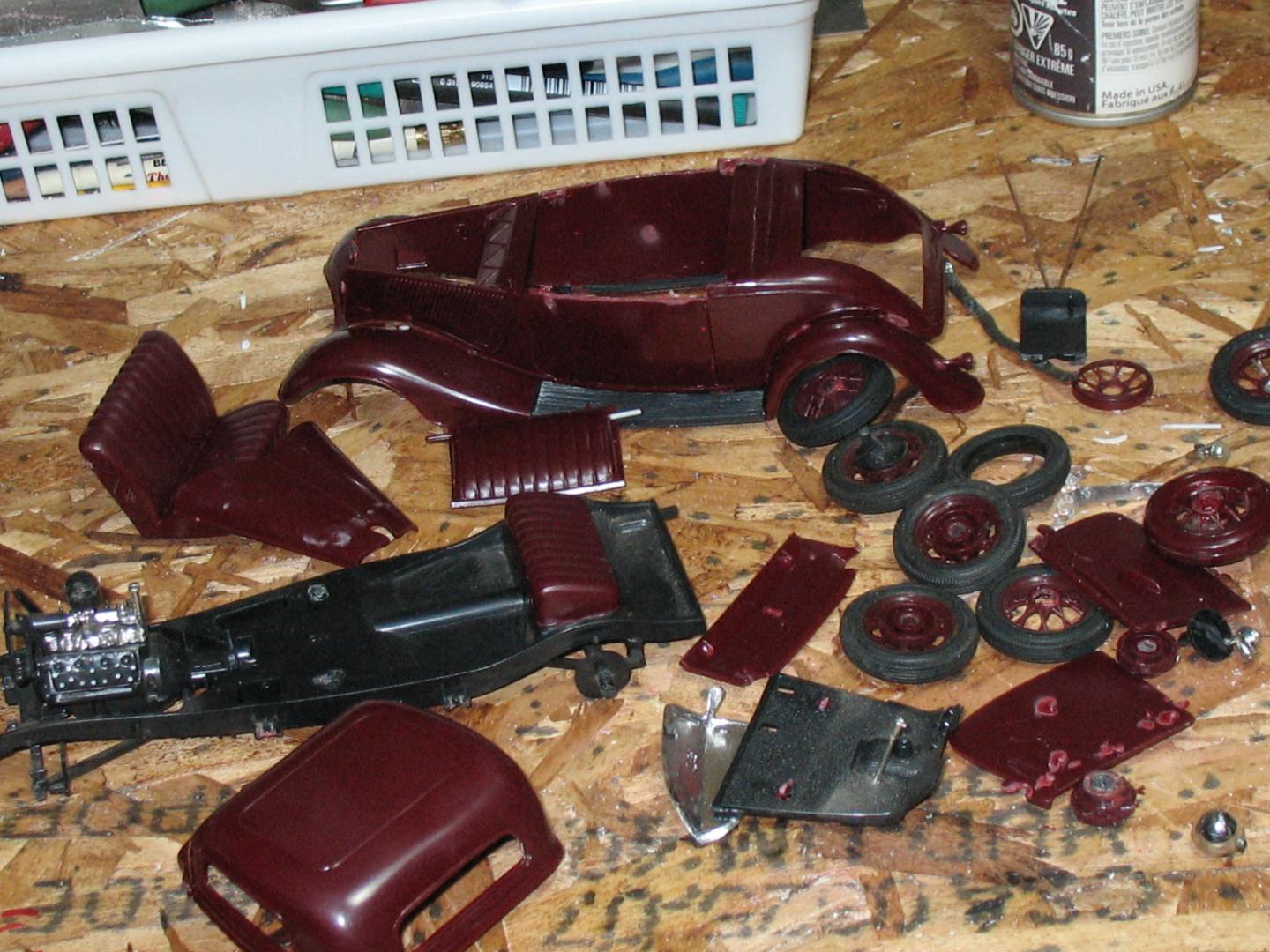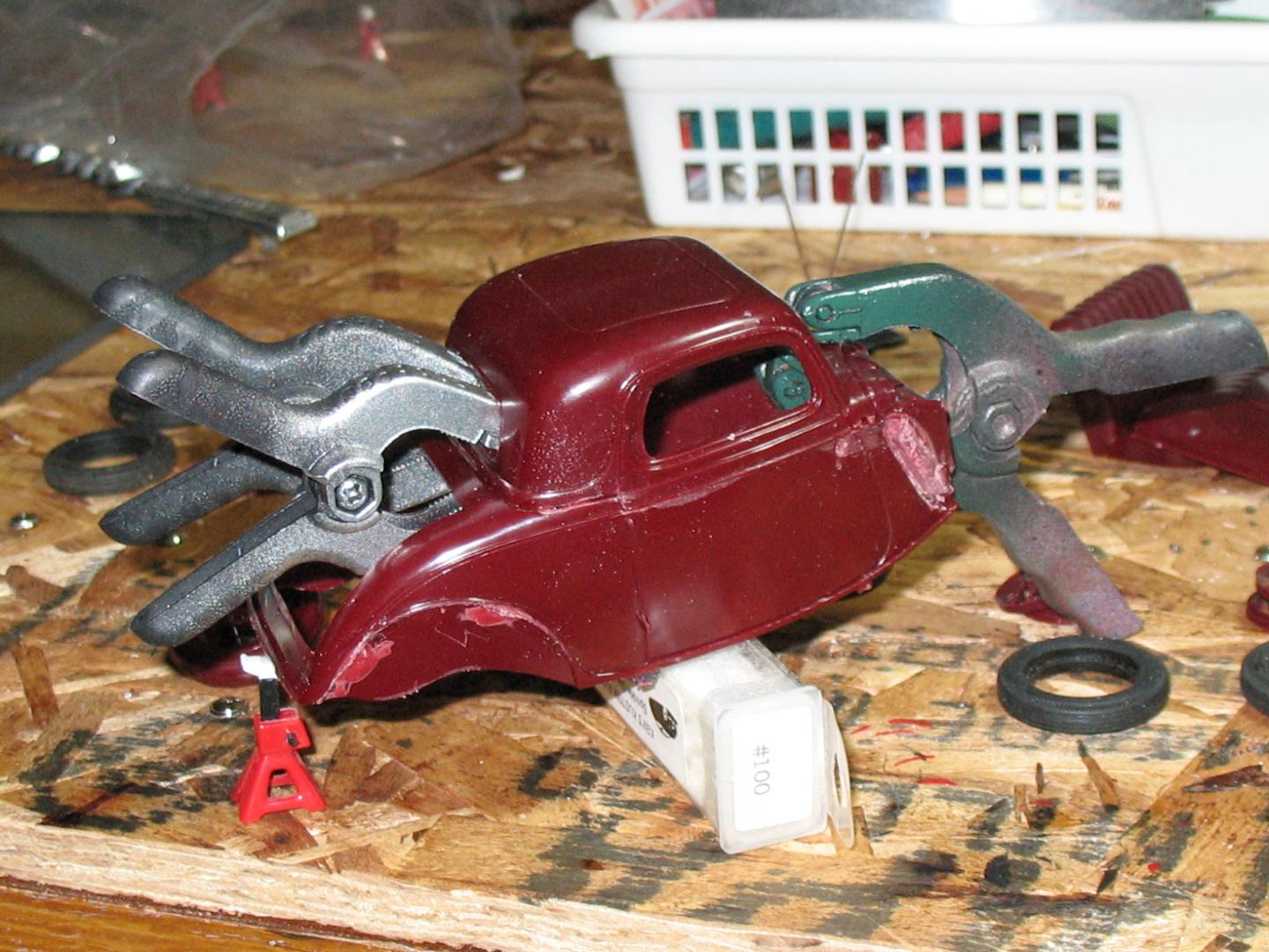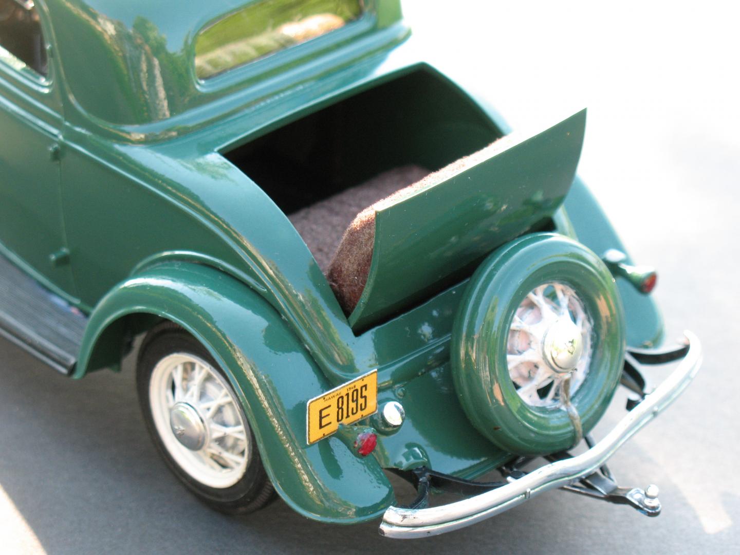8. Original release Monogram 1934 Ford 3 window coupe, I bought this kit last year at the Syracuse Nationals at the small model show and sale it was in a plastic bag in pieces. There are before and after pictures. I have always wanted to build this kit as stock, I have built it in the 70's and 80's even 90's but this was my favorate build of all even the ZZ Top version. I built as stock as possible I added detailing interior, wood look dash and engine detail I also added the trailer from the 37 Ford Conv kit but 34 wheels. So take a look and tell me what you think, thanks for looking.