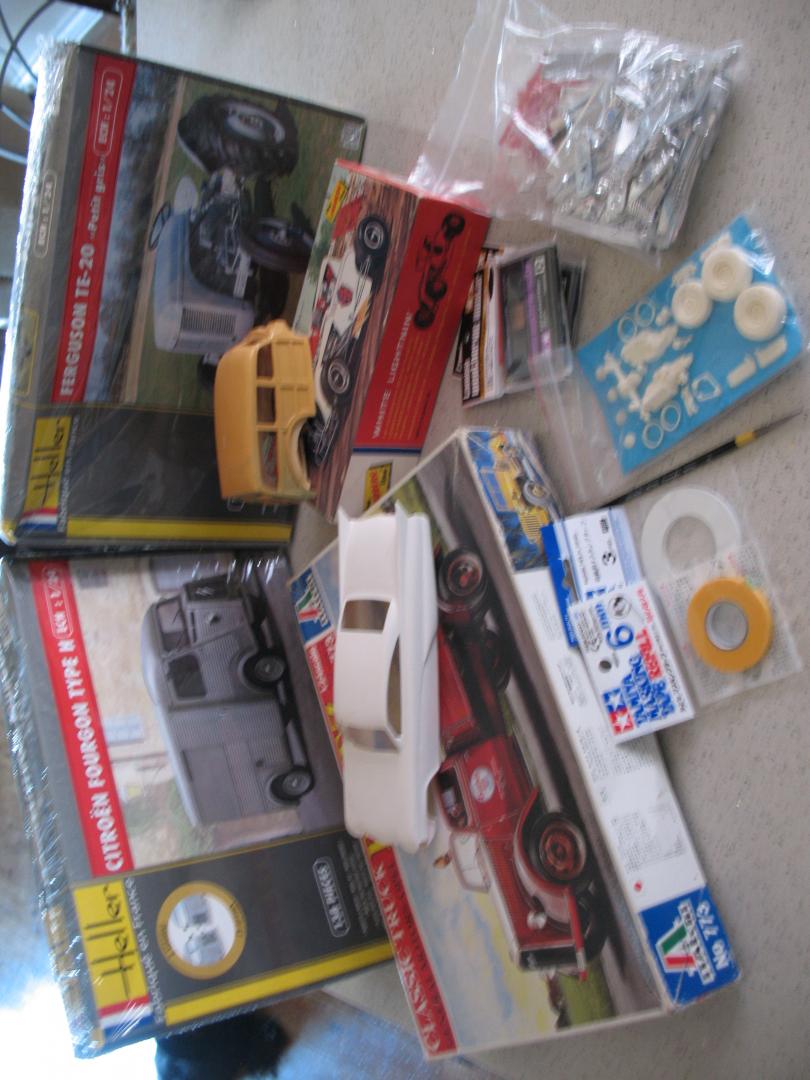 Just got back from the UK yesterday, was visiting my daughter and connected with a forum member. Was able to have my daughter order me and couple Heller kits was able to get the Opel truck and Lindberg race car containing 2 complete cars. And there is the two resin bodies, bag of chrome part and the resin street rod parts from Dave who goes under (72 Charger), I was able to bring a couple kits to him and we trades. Great guy, we are going to meet again this year for another trade I am sure. And then also picked up some tape, brush and detailing weathering. Great time great guy Dave.