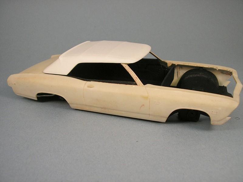 Let me make a correction about the uptop for the '69 Chevelle. I'm not really sure that the one I got came from Missing Link------I may have got it from Time Machine Resins. Here's some pics I have of how it fits on an older issue '69 Chevelle Convertible. Here's a pic of a 1:1 off the 'net of how that top should look in relation to the body...................... This is on my "someday" pile. As you can see the top is too long for the Chevelle body. If the top did indeed come from the '72 Cutlass, either the Chevelle is not quite 1/25, or the Cutlass is a bit larger than 1/25 as in 1:1 these were basically the same car built on the same platform. My apologies as I'm not quite sure where this resin top originates from. I do happen to have the '72 Cutlass uptop, and if I can find the kit and dig it out, I'll see if I can do a comparo and try the top on this body. -