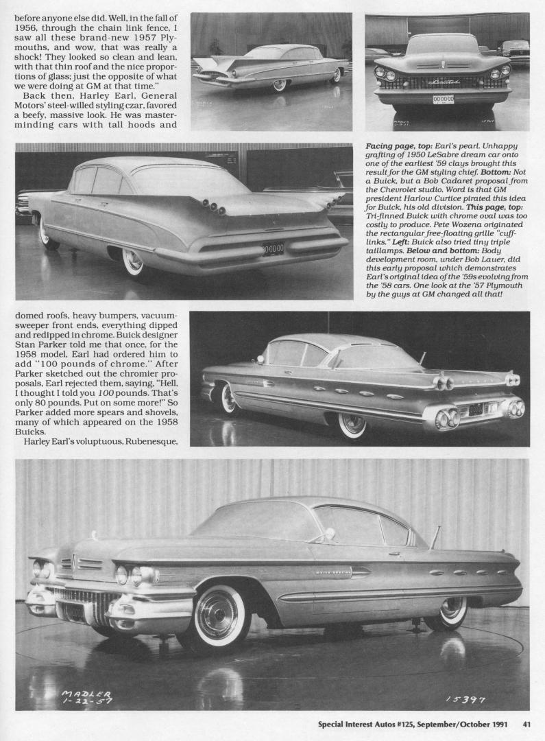 I just did a little digging on my hard disc and I came across one of those pages of 'Special Interest Autos' which showed what GM originally had planned for '59. I don't think I'd want to be caught dead in any of these cars. NOT pretty at all IMO! -