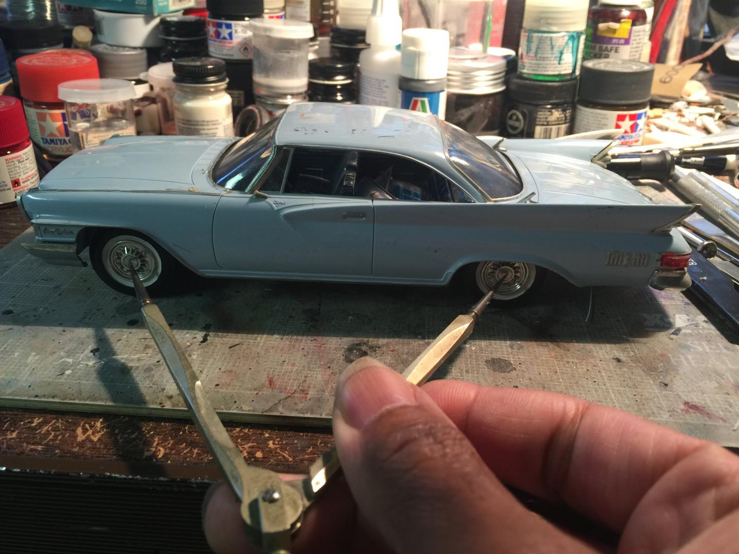 1 OOOOH! That is nice! I have that kit too (two actually......one for another project), but the glass on that kit leaves much to be desired IMO. That's a pet peeve of mine------distorted glass which this kit has to my view. I'll build it someday and that is a nice color for that '57.