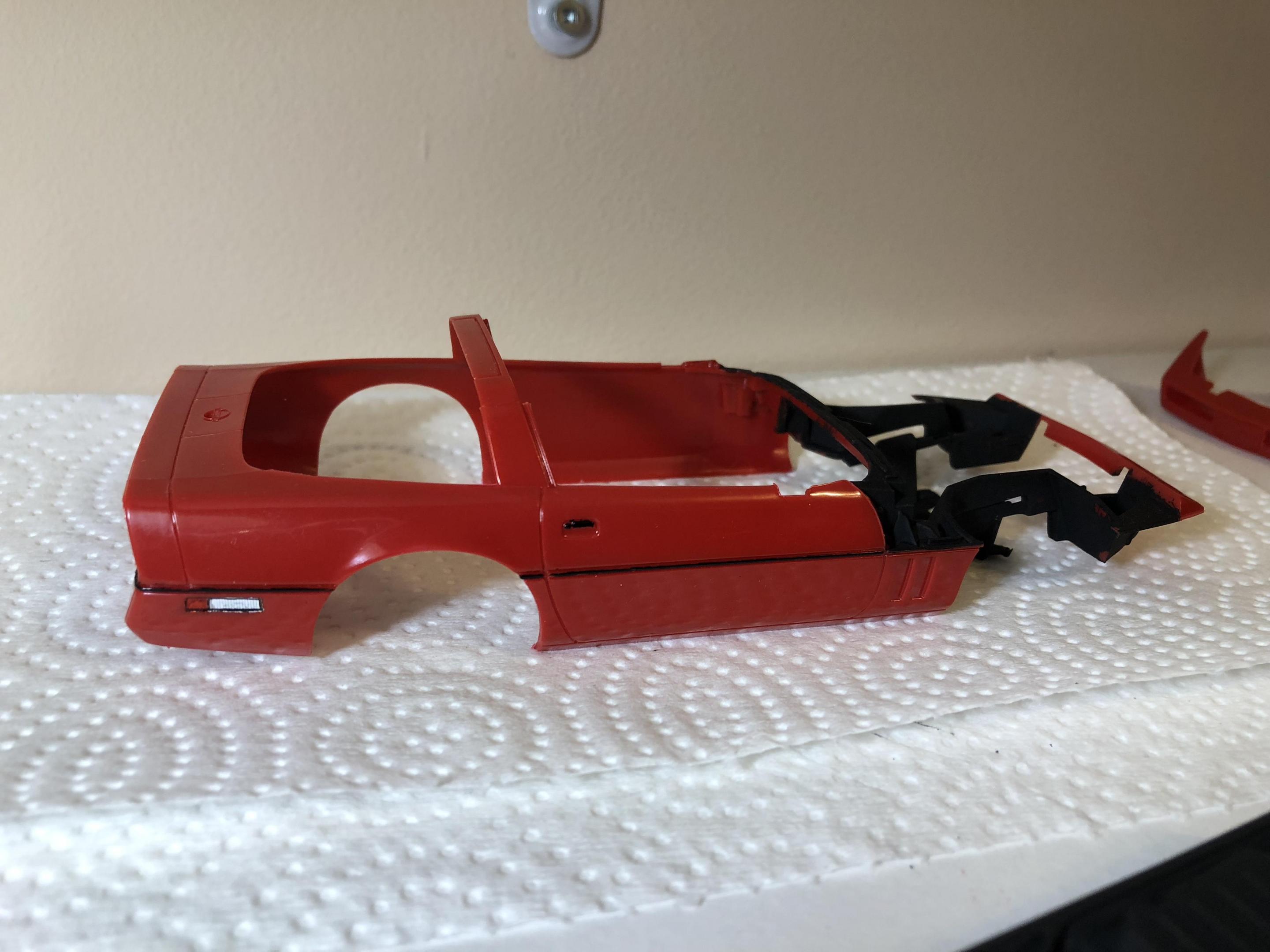 car was originally red then sold. Painted some over. Then sold lastly painted black. Car was far from stock. New owner brought her as close as he could.  That’s the story