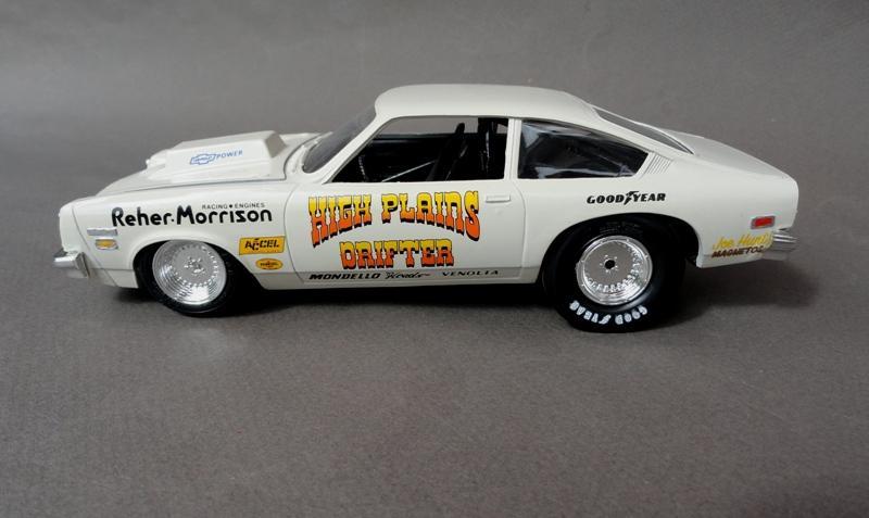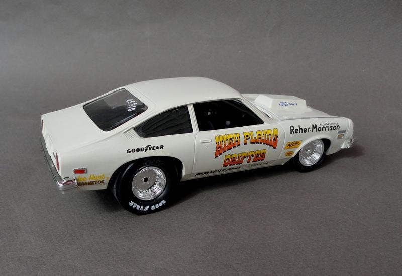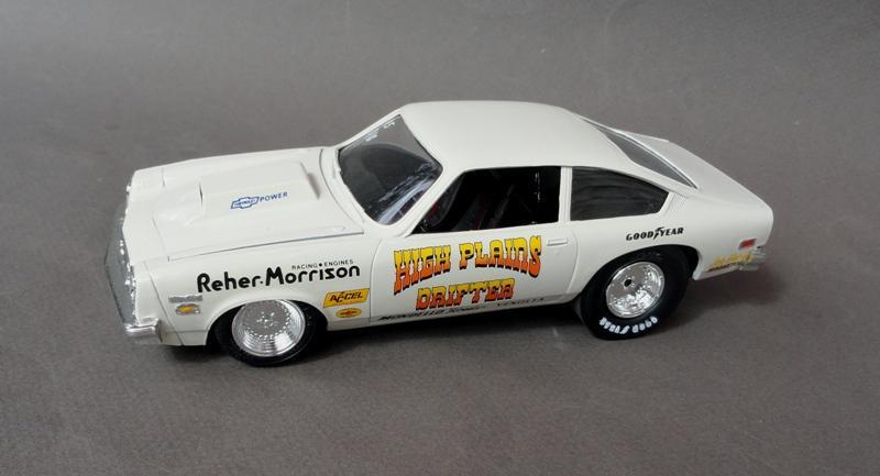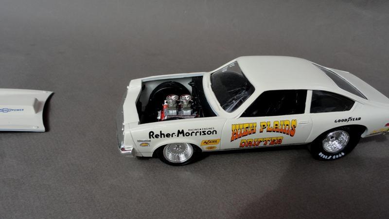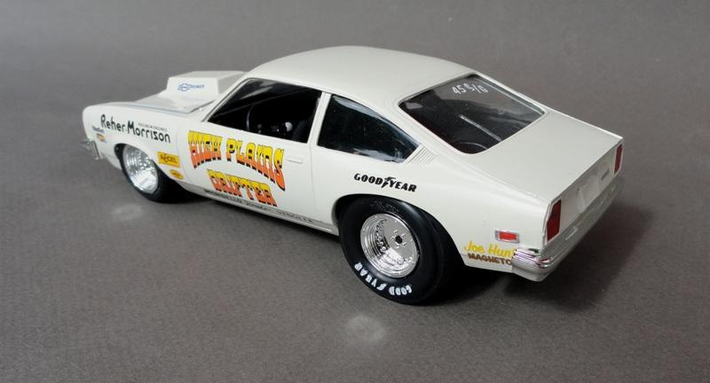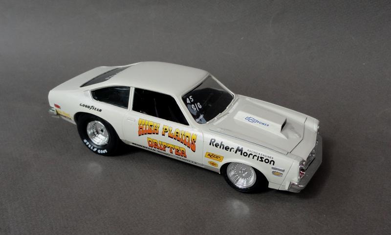 .... tried to come up with something to build from the AMT 1978 Monza kit (supposedly it was a Pro Stock, except it had a blower and injectors ) .......... so I just built it as a Sportsman racer from the Texas Panhandle (the "High Plains") .............. box stock AMT kit, Testors Wimbledon White paint, Slixx decals