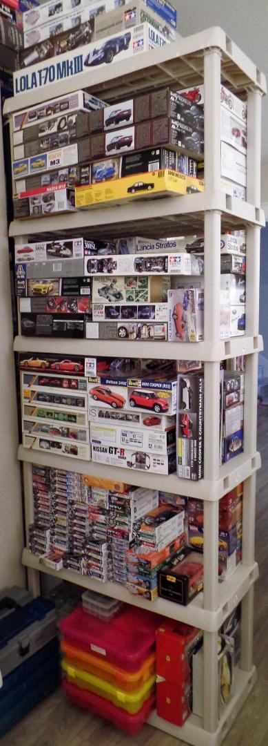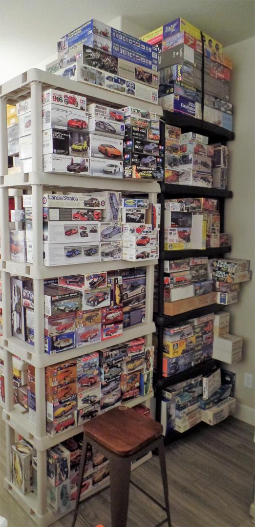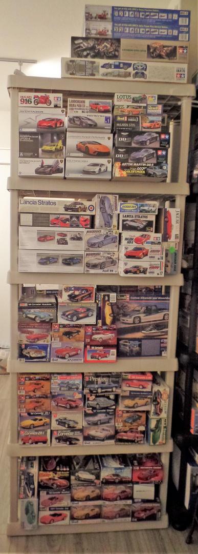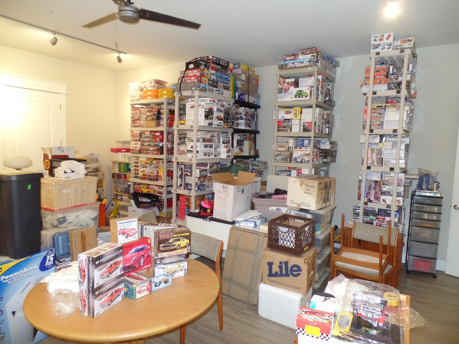 Still in the throes of unpacking everything. May get model room "operating" by Christmas. Almost all unbuilt kits on the shelves. Sorting out the aftermarket stuff (real pain) and dealing with a damaged display case (mover needs to send repairman). Now a member of Scale Auto Builders Assn. May be back for a visit in May. Looks like we may have a buyer for the Palatine house.