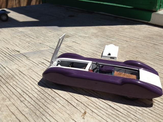 Not sure exactly what category this fits, but figured this might be the closest, so here goes. It's one of the old Lindberg or Hawk(?) 1/32 scale cars that had rubber band power. The body is close enough to pose as a 1/25 car, so I built a crude chassis and put a flathead in it and called it good. One of these days I'll figure out how to do decals.