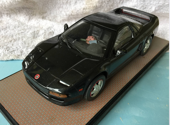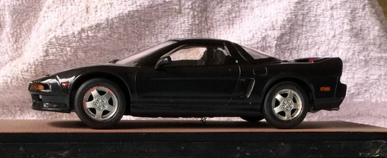 This is the Revell Acura NSX from around 1993 or so. It is a nice kit and still holds up well. I built it back when I was in the Navy, then put it away. Time and travel were not kind to it. I came across it by accident the other day and decided to redo it. It's not a glue kit so it can't be called a glue bomb. Maybe a snap bomb? Anyway, it went back together pretty well. I polished most of the scratches out of the windows. The only thing I couldn't fix is that the tires have started to attack the wheels. They are starting to melt just a bit. It was a nice trip down memory lane for me!