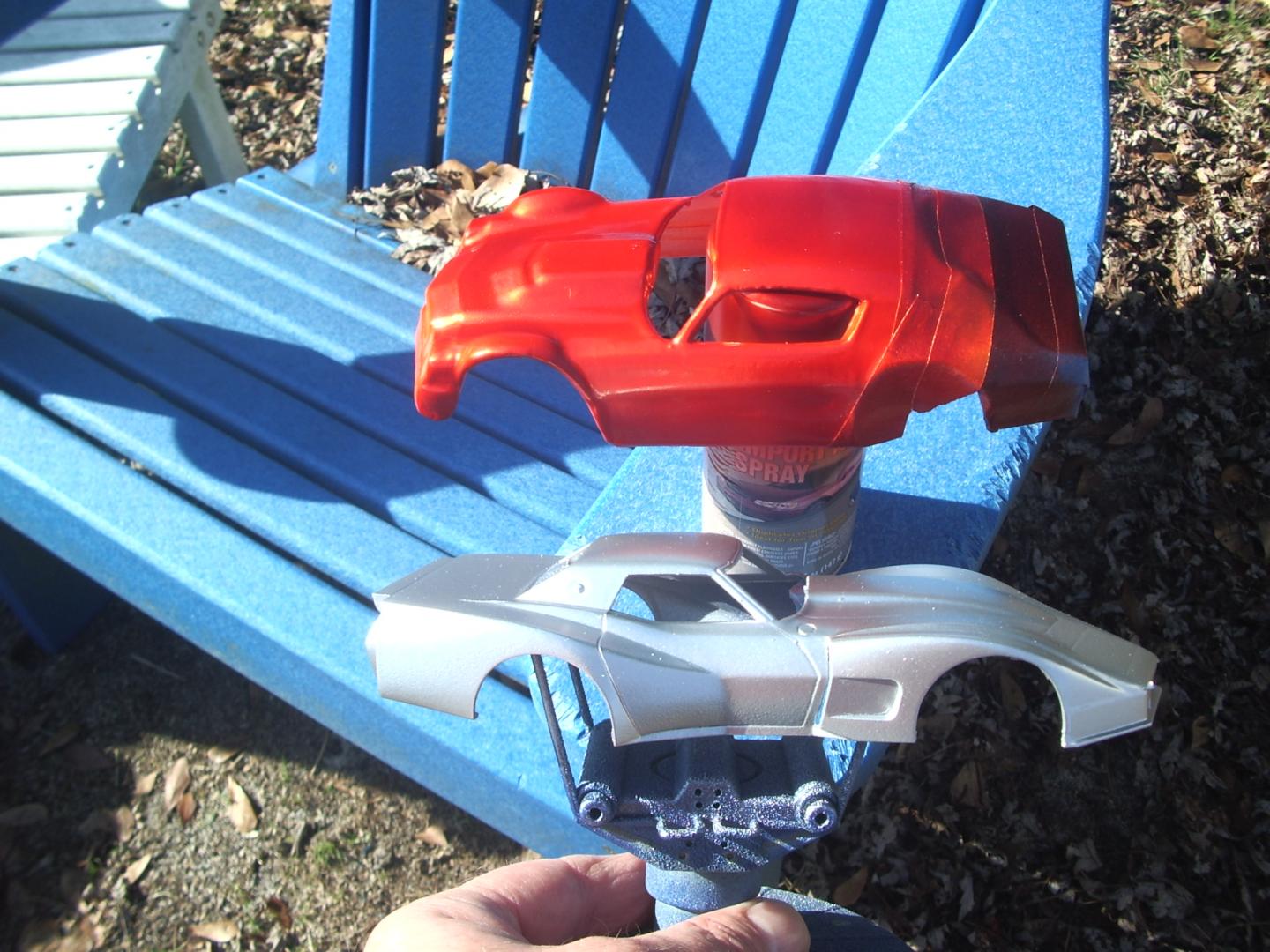 first let me say thank you all for the replies. I was really pumped up to get started airbrushing. Thinking with knowledge of painting full sized cars that it would help. Gotta think small now! time this past weekend was a disaster turned learning lesson. Used spray can duplicolor  grey primer earlier in the week. Paint day was maybe too cool to started too early at 63 degrees. Sprayed house of kolor orion silver that was ready to spray for an airbrush. It sprayed beautifully at 30psi. Let it sit about an hour and it felt dry. Then topped it with some autoair candy 2.0 blood red, same psi. Wow it was like red chromed finish. It started to wrinkle up so I moved it into the sun, had turned to about 72 degrees now. Photo looks better than actual model. Still had slight wrinkles but figured it was a learning lesson. Cleared with can tamily ts13. It sort of looks like old dried alligator skin now. Guess I need to slow down and allow more time between colors, coats, etc. Did learn to clean my airbrush really well. Getting another donor model ready to try again. Any ideas or any step by step tutorials? thanks!
