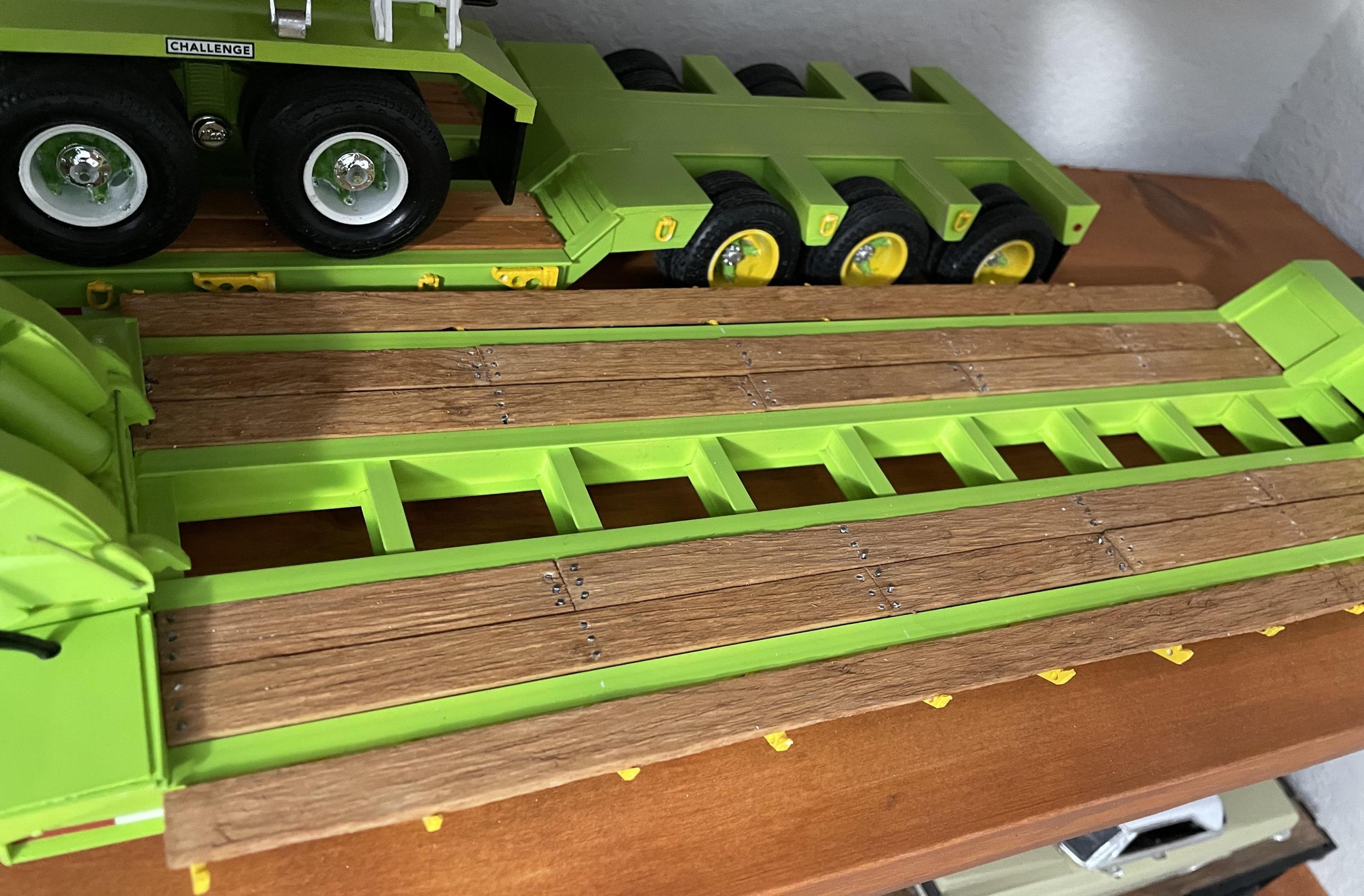 Thanks Jeff I’ve finished the trailer for now with bolting down the boards with all 96 bolts lol. Now to start the bulldozer for a load. I’m going to wait for a sunny day to get some outside pictures to put this under glass. -