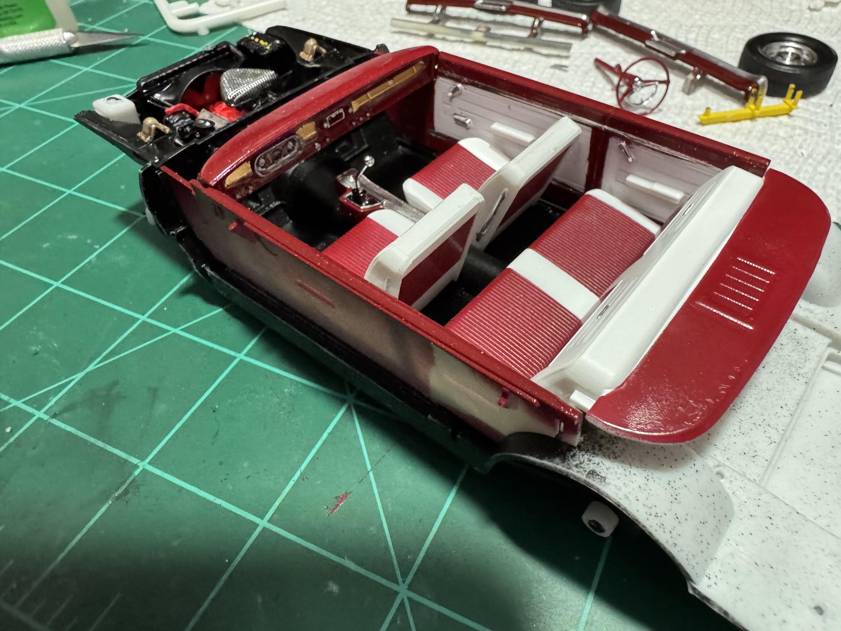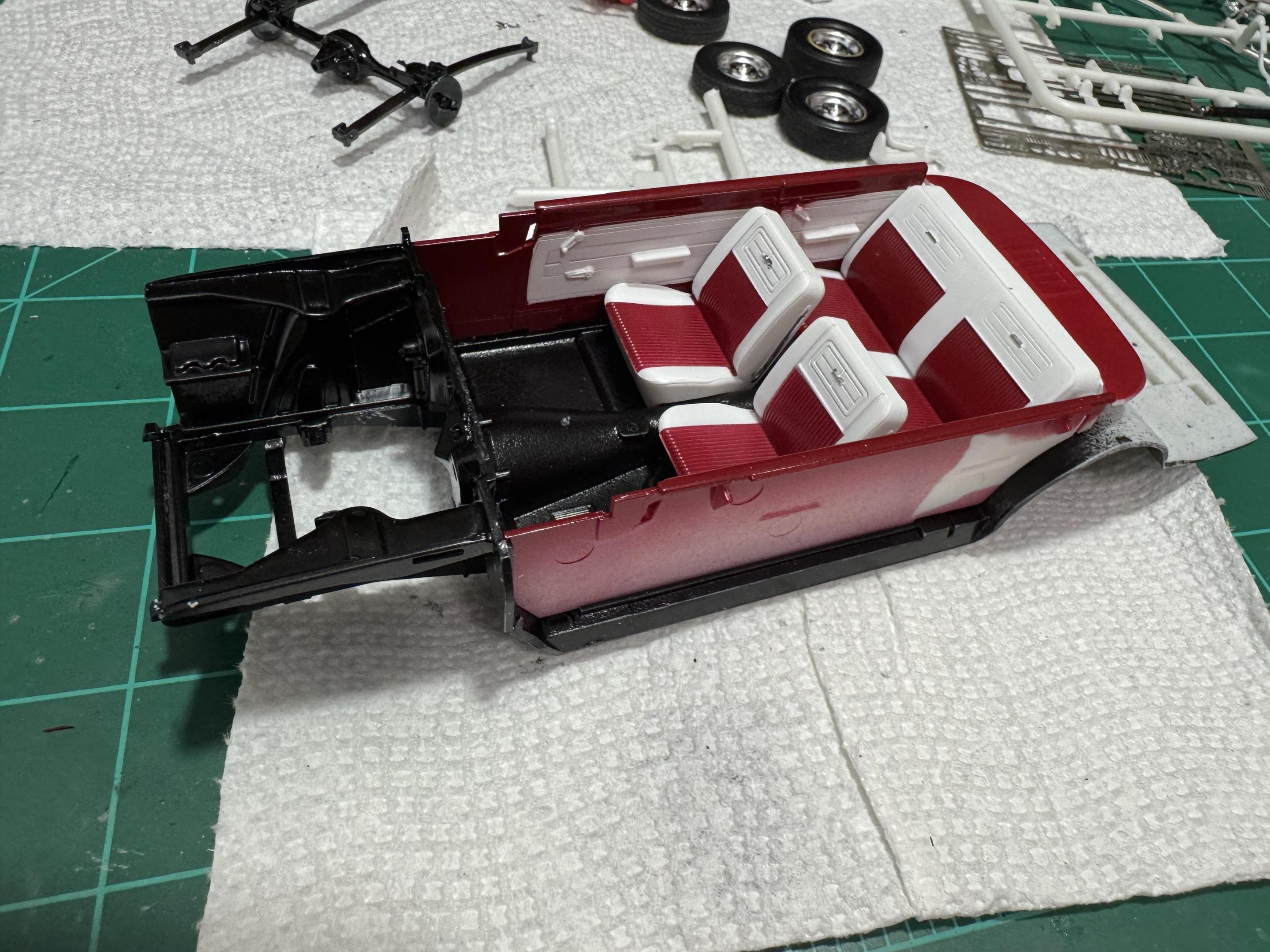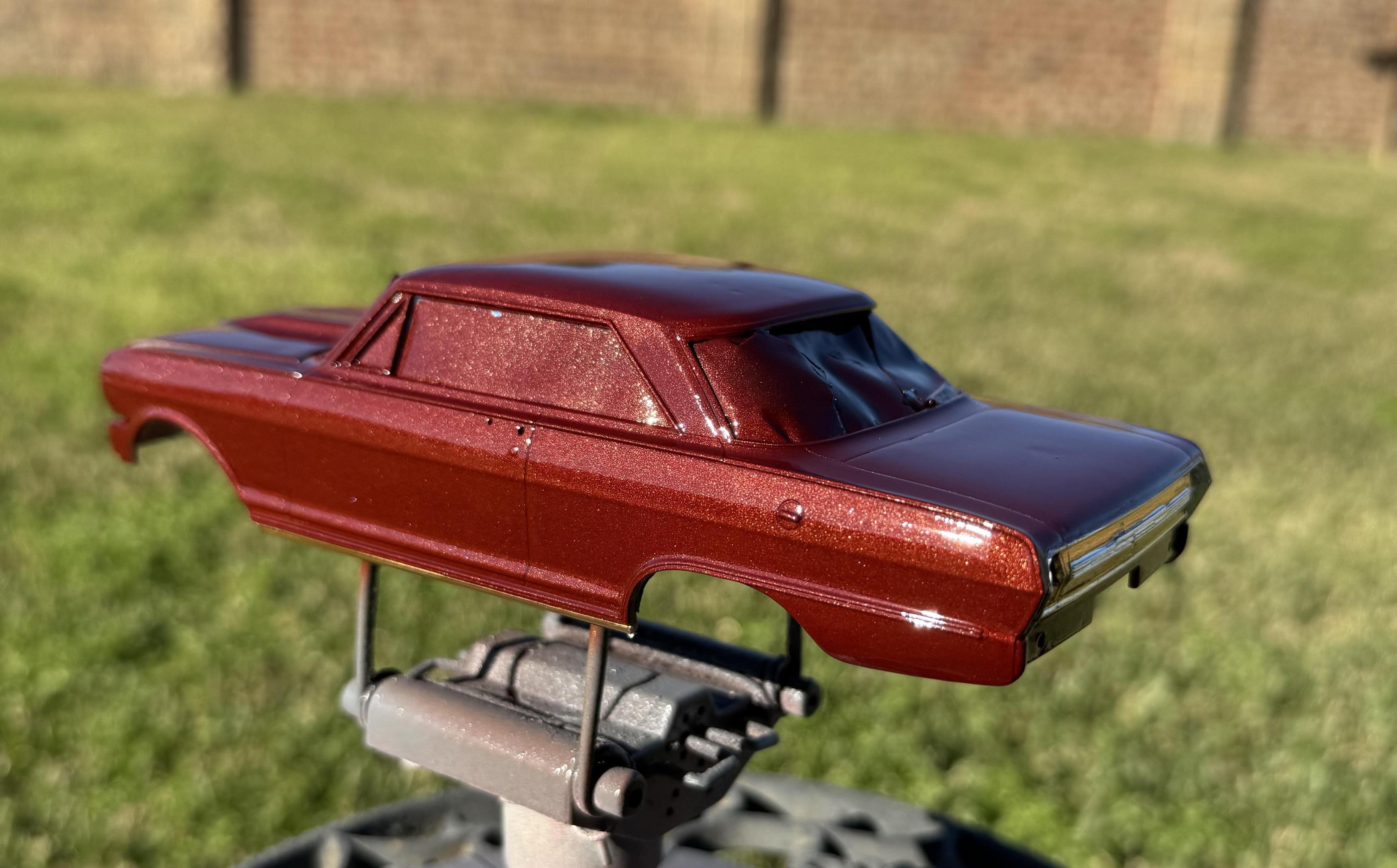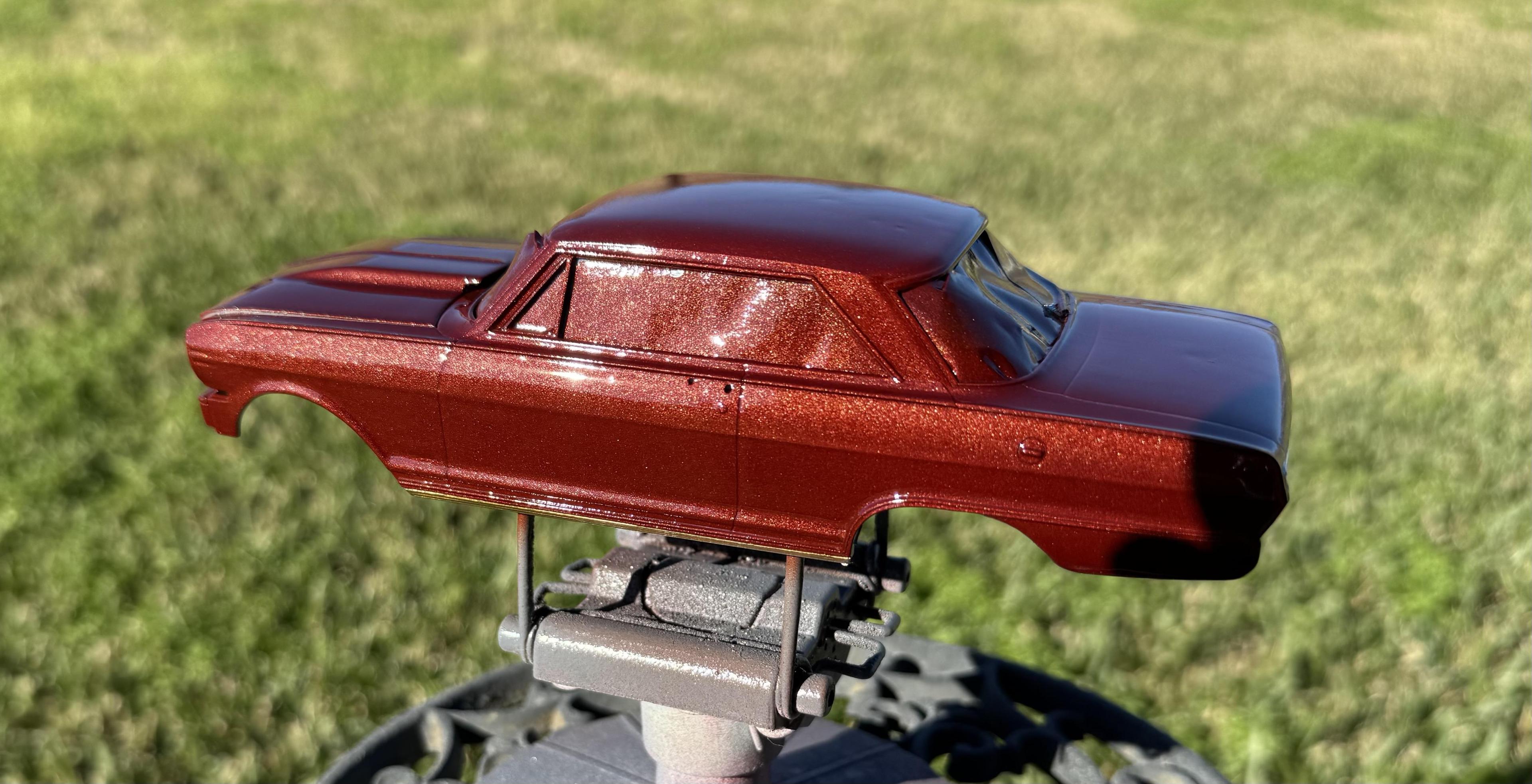 17. I’ve been making some progress on the Nova. Was able to get some paint and clear coat on the body today before our cold weather starts. Also did some painting on the interior.