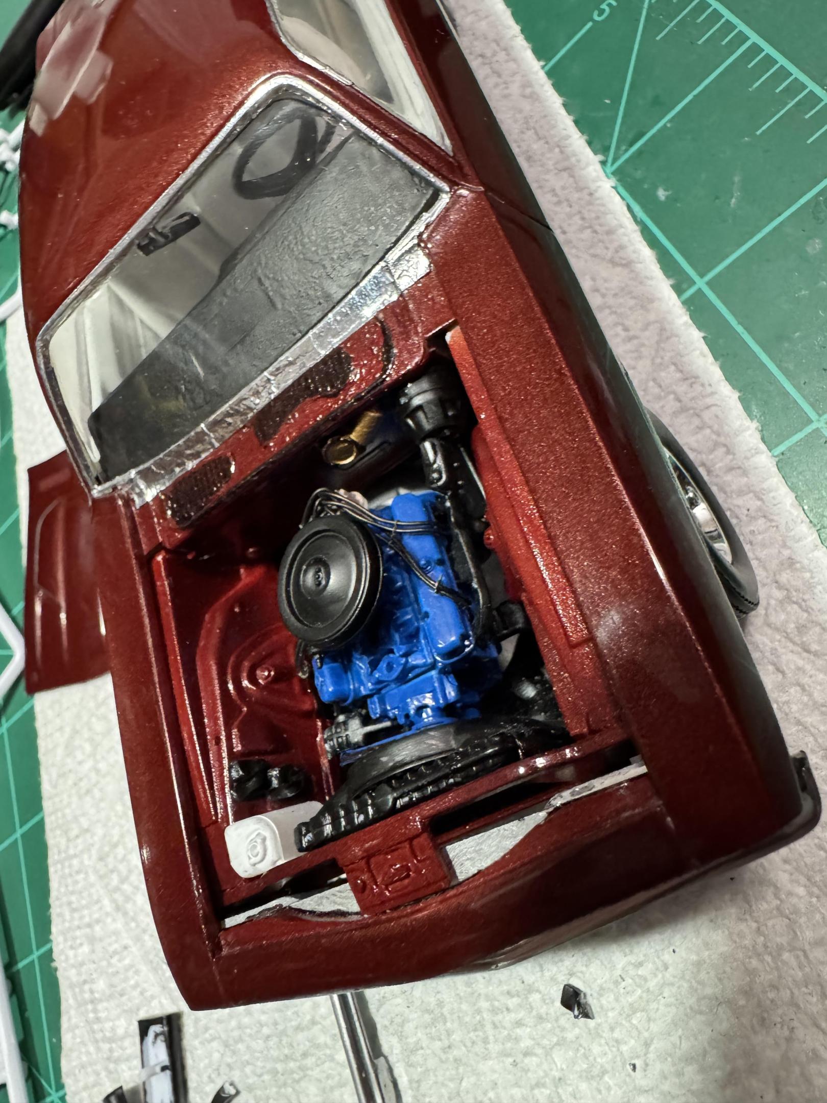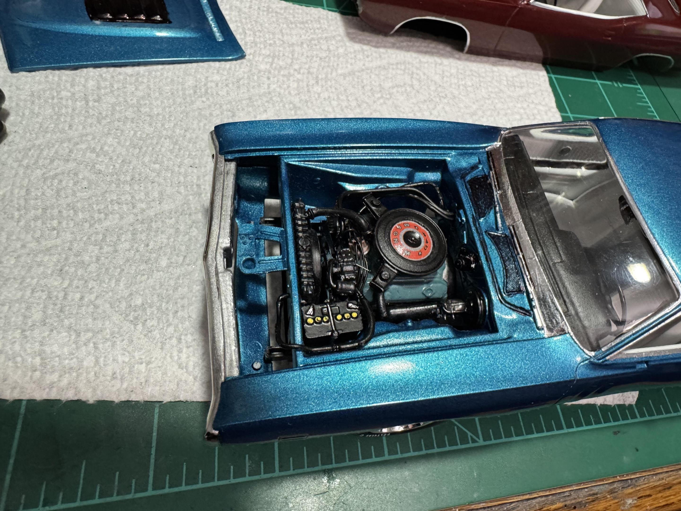 Thanks Greg. I’m going to and some red on the seats and dash. Thanks Carl I used Revell spray chrome on the headers. Thanks Bob.
