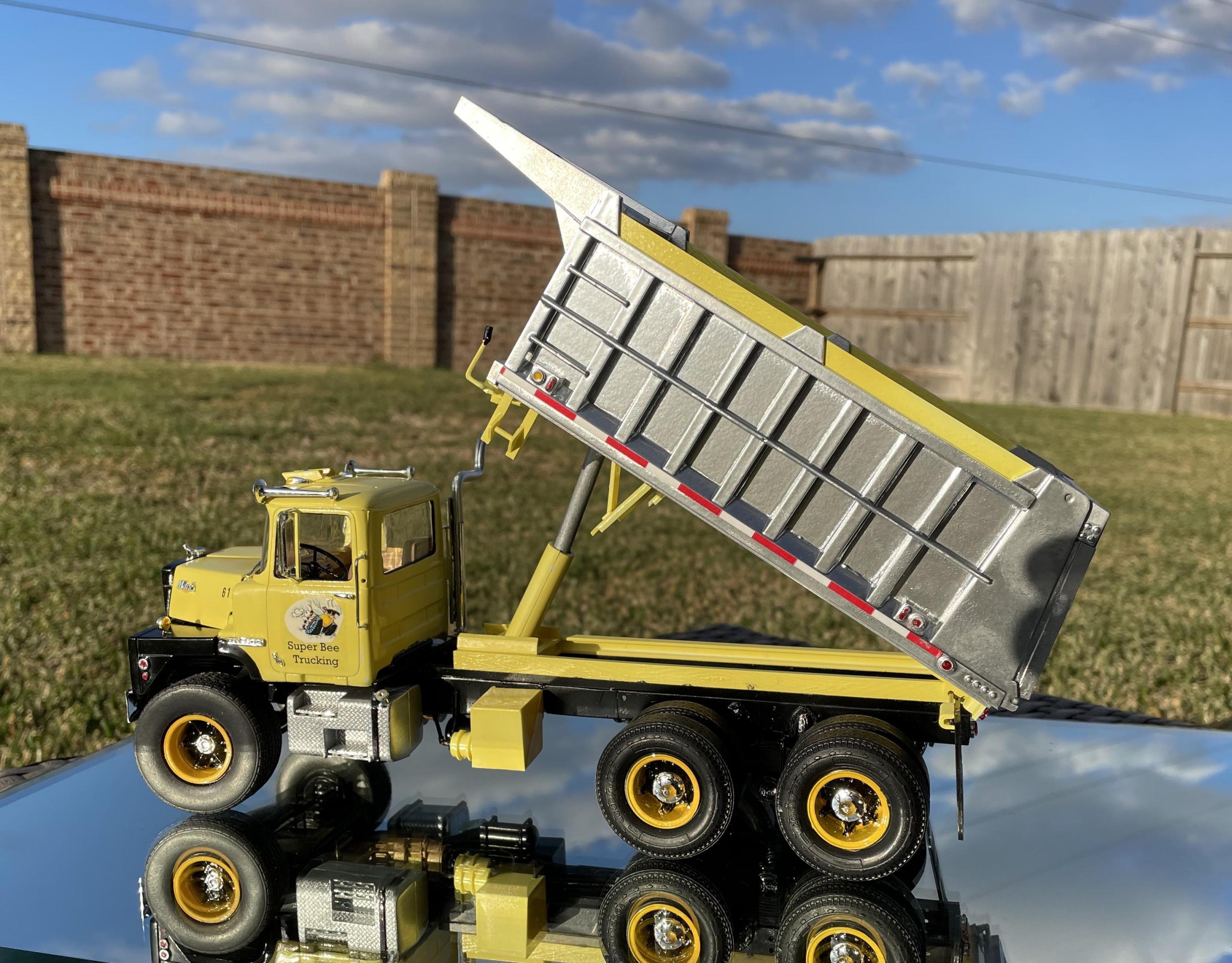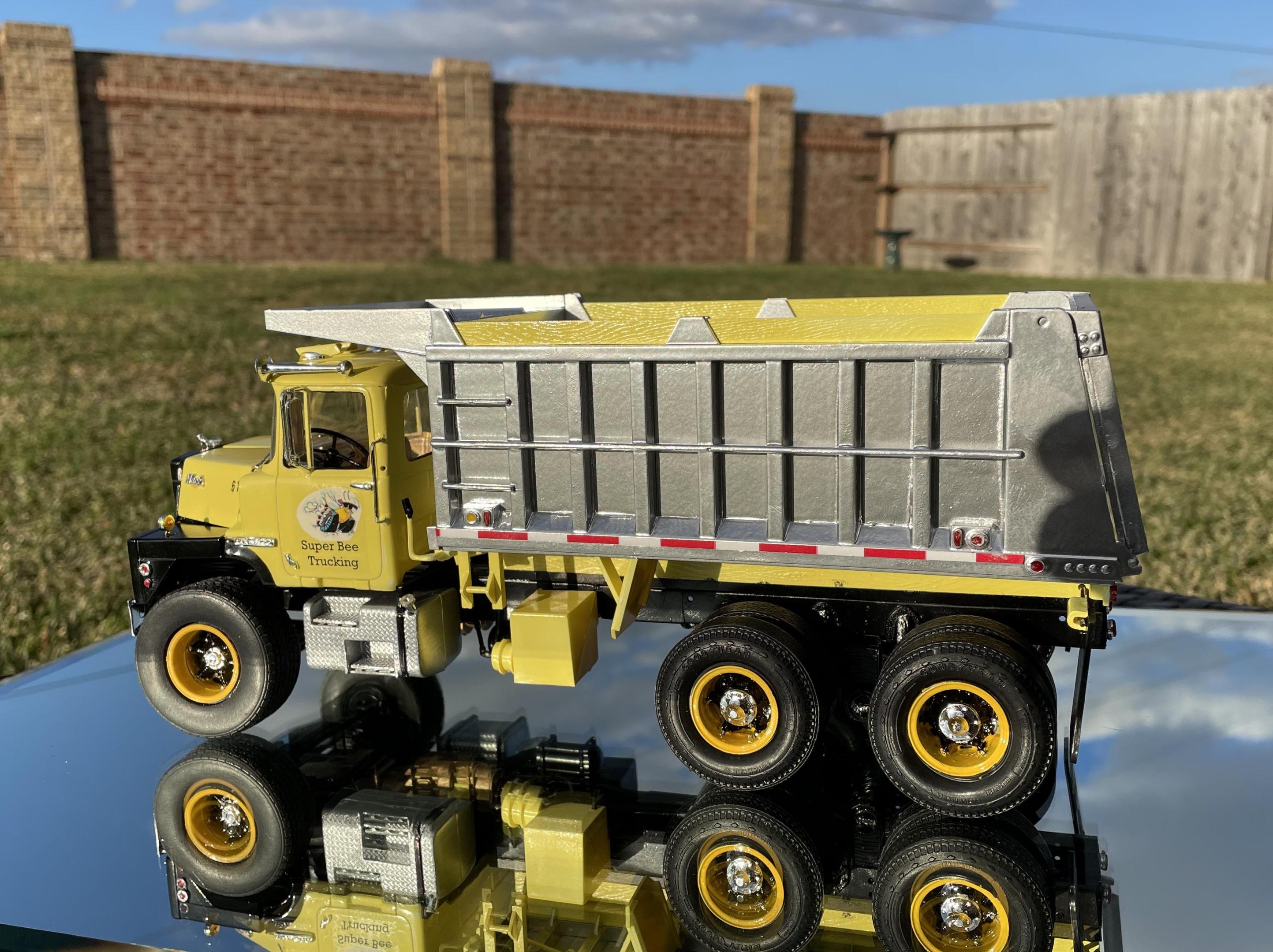 This is another addition to my Super Bee Trucking fleet with this one being the Mack DM 600 with the steel hood from Gary Wallace. I’m kit bashed using the Autocar Montone dump body with the Mack DM 600 kit. My build details are in the WIP area for this one. Everyone’s comments are always welcome and appreciated. I realized that I was missing the hood latches.