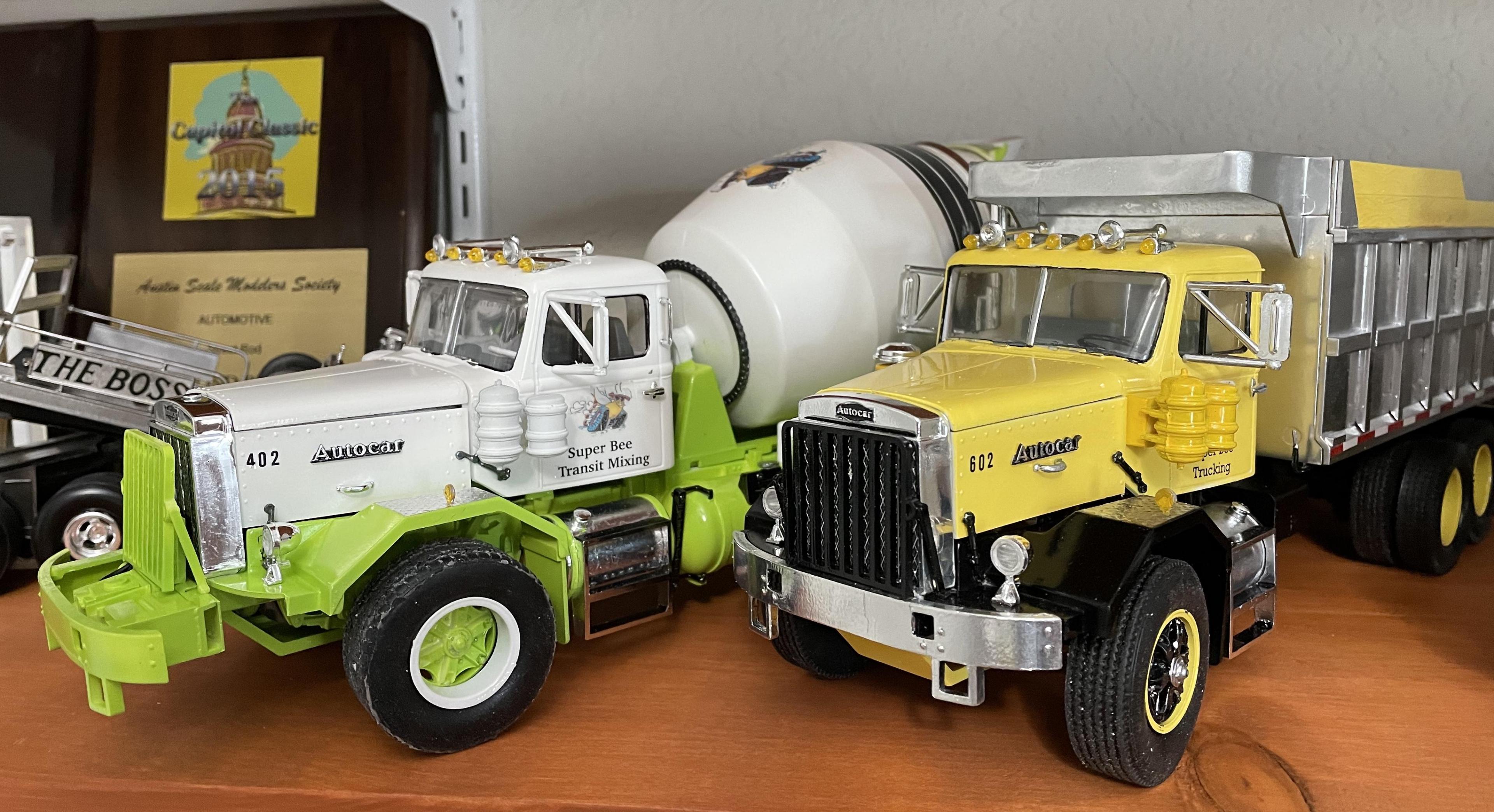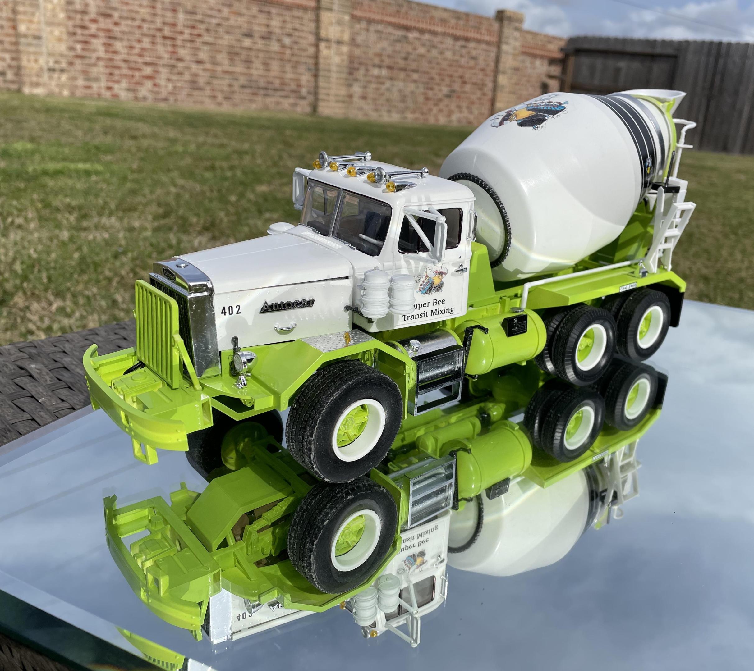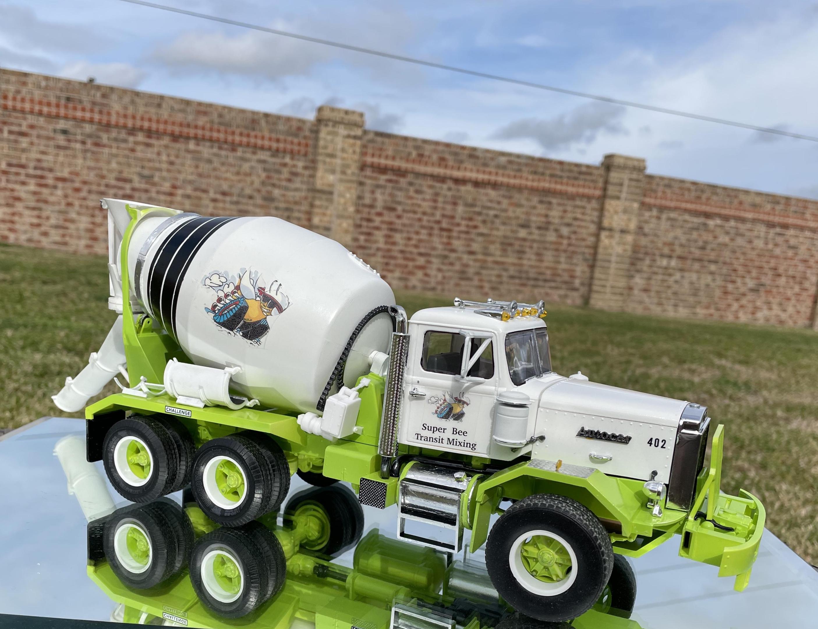 With this build I started up a new sister company to my Super Bee Trucking company. This one is Super Bee Transit Mixing with same paint system but different colors. I used to reissued KW/Challenge mixer kit and the Autocar dump truck kit to make this one up. There was very little modifications required for the change out. I did a WIP with the modifications. Next on my work bench will be a another Super Bee Trucking Mack DM 600 steel hood dump truck.