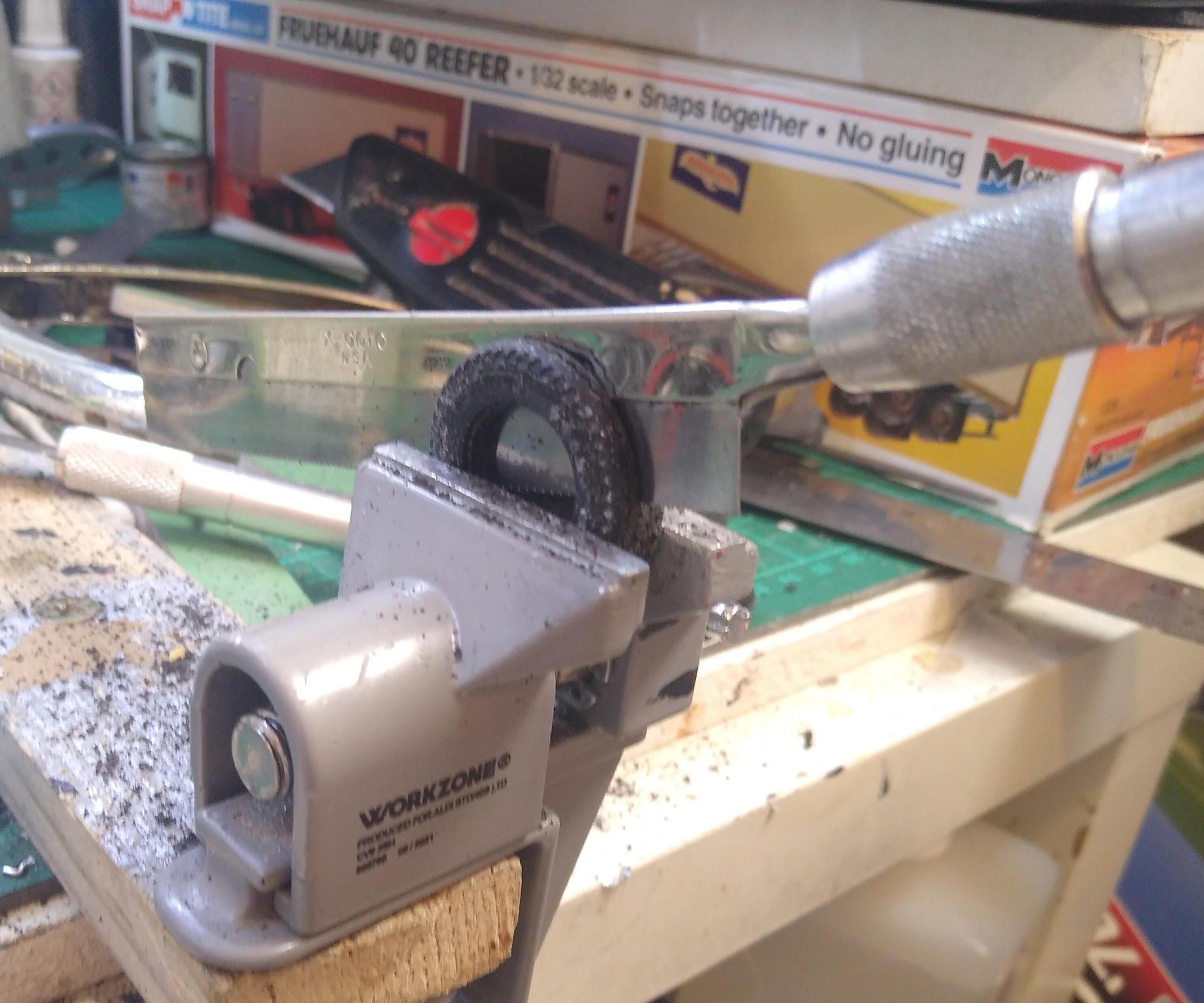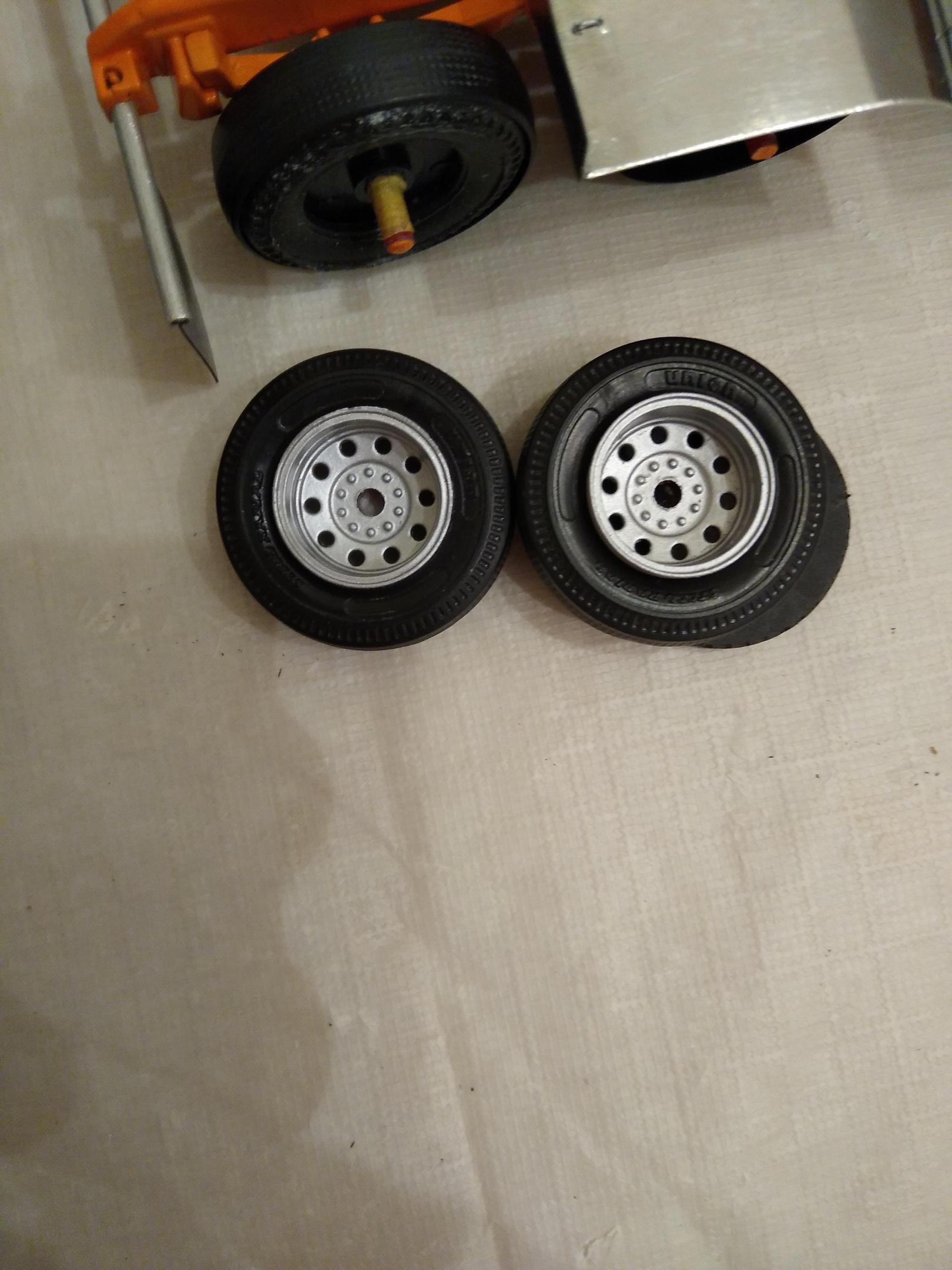 I can see how that would work. With using the AMT kits for my two W900 's, I've got at least 20 AMT tyres lying around. They're only fit to use on trailers because of the size issue so I put them to use here. It's such a shame that AMT made such a great job of these tyres in all but the size, they're perfect otherwise. The Monogram tyres are awful but they look OK size-wise and from a distance. Thanks for the idea though. -