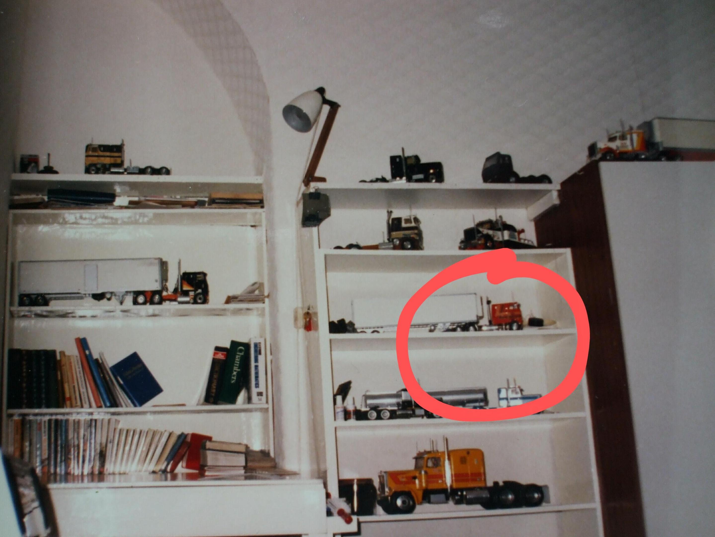 Got this off hype-bay. Paid a little more than usual for it but look at it. It's the original issue kit from 1981, built, and not a speck of dust on it. Just the CB aerials have snapped. They must have built it and put it straight in the box. Never put the decals on it either. I had this kit in 1981 so it's great to see it again. I can't leave it like this though, so I'm going to do some work on it but I want it to look like the original release that it is. Here is mine on the shelf in 1981.
