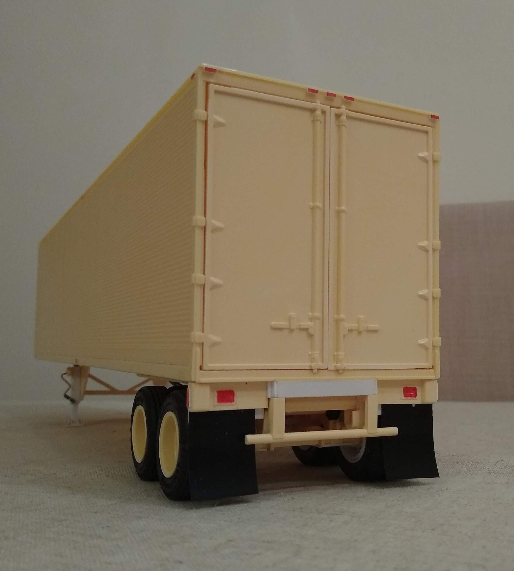 Wasn't going to do a WIP on this but here goes. Bought a few of these recently and was itching to build one. Took the enforced idleness of the holiday period as a signal to get stuck in. This typifies AMT kits in that it's brilliant and awful at the same time. Plenty to correct on these kits. First the ride height needs to be brought down by rebating the slide rails. Levelling up the horrendous rear subframe loses a few more crucial millimetres. Nothing is straight on this kit other than the van moulding, so a lot work filing, fitting etc... but end result is great. Narrowed the track of the rear axles and also the wheelbase. The tyres are too small and are 8mm apart if installed as per instructions, but slid them together slightly and the proportions look much better. Fabbed up the locking mechanism for the tandems. Usual mudlfaps from insulation tape, cut the kit ones away as they're like paving slabs. Boxed the rear end in to hide the terrible rail ends. Landing gear looks like it is made out of cake, so made my own out of square tube and some profiles for the sand shoes and axles. Took the opportunity to make them operable too, so it can stand on it's own two feet when uncoupled. Added basic air piping. Corrected the taper on the lower edge of the reefer unit. Moved the control panel up and built the casing around it. Built an exhaust pipe with a flapper on the top. Fabbed a battery box and starter cable. Added palm couplings and electrical socket. Also added marker lights. Just got to wait for decent weather for pain t now, roll on April!
