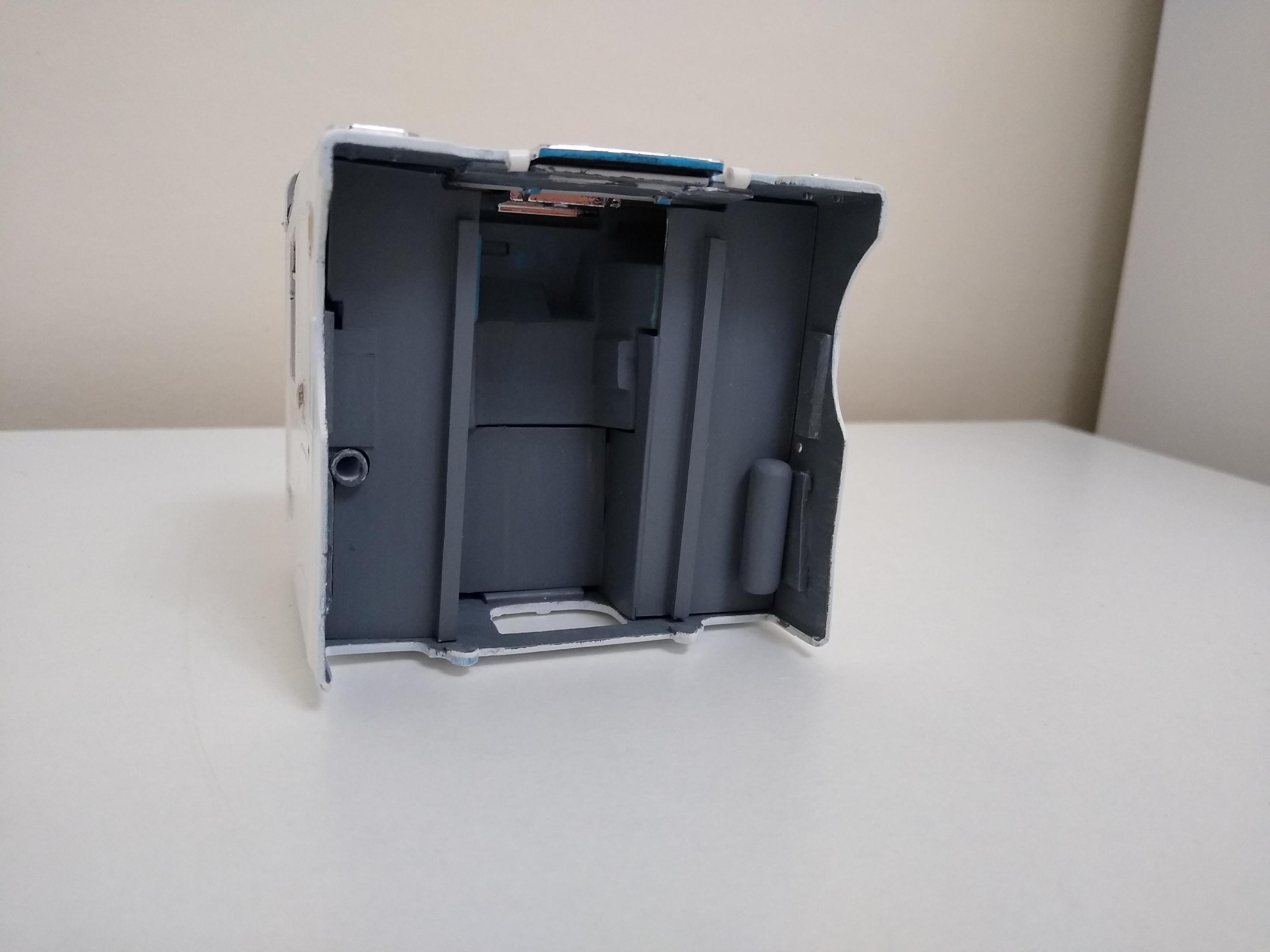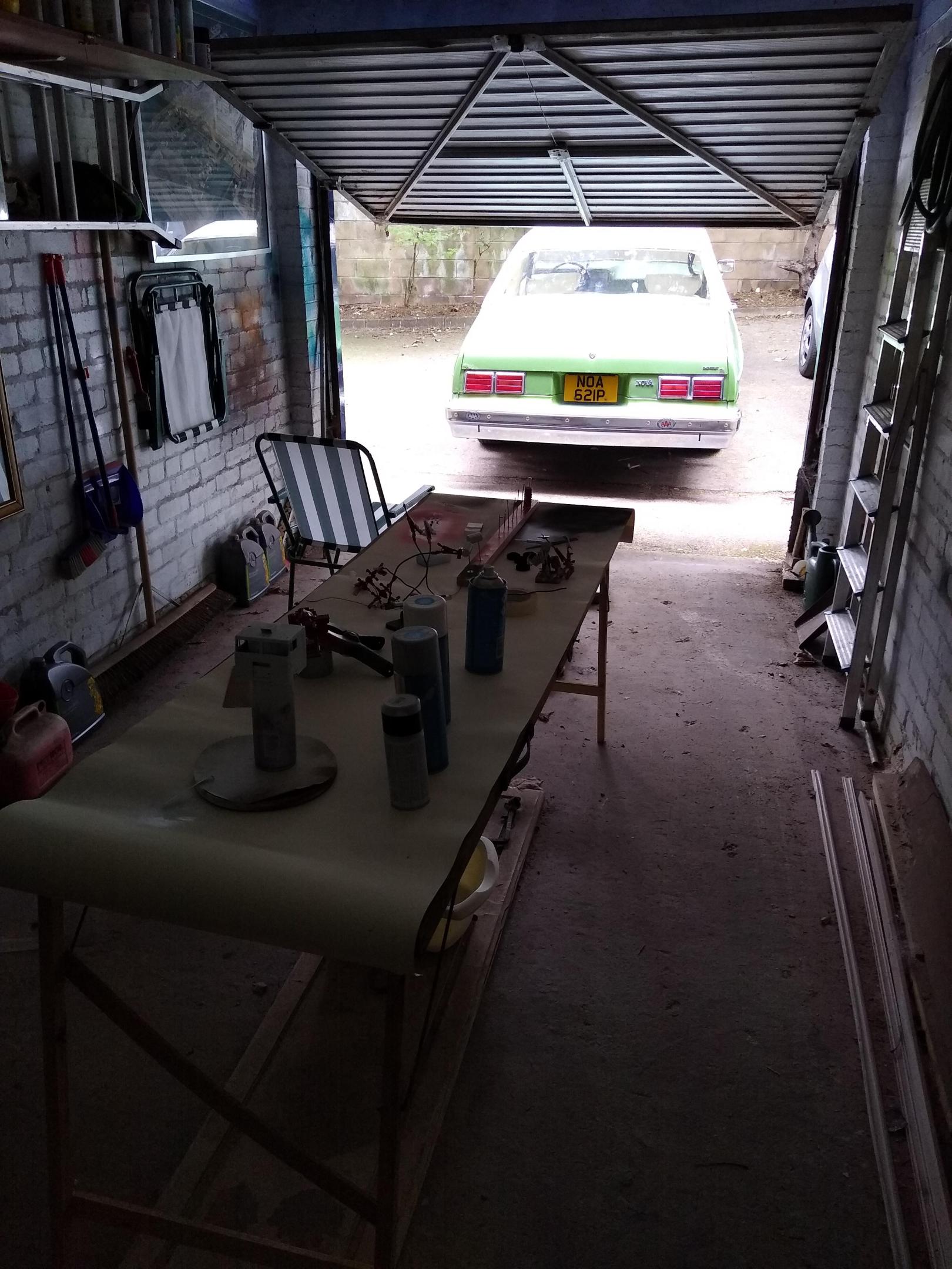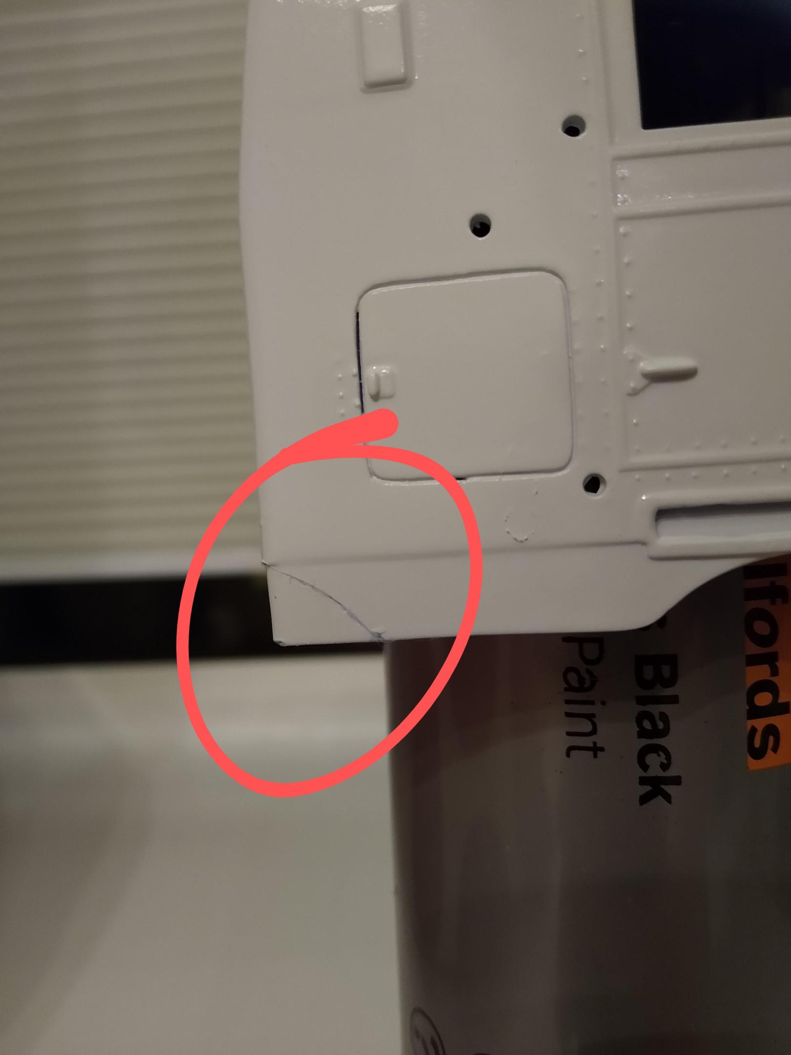 I think paint is the scariest part of any build for me. The weather has been bright but really cold for the time of year, down to 3C of a night. In the sun it's great of a day but as my "paint shop" doesn't get the sun it's been too cold to paint. Anyway, this weekend it's warmed up so I moved the car out of the way, set up a table and got to work. Chassis turned out great except for corner of the battery box that decided to play a contact sport with something before I noticed. Then I noticed I hadn't painted the front bumper I made but by that time I'd run out of primer. The cab has turned out ok. The joint between the two halves isn't invisible but it's not like the Grand Canyon. I think the casting thickness tapers toward the rear and I made the inner faces level. Oh well. At least I didn't drop it OH YES I DID! Broke the corner of the lower apron off on the passenger side. I'm not filling and sanding anymore on this job. It got glued back on and a dribble of Tamiya white. I'm resisting the urge to fidget with it and try mock ups because the paint is dry but still at that jelly like stage where it's still got a lot of gassing out to do. Couldn't resist dropping the engine in though. So, other than everything that went wrong, it went alright. ? I think. -