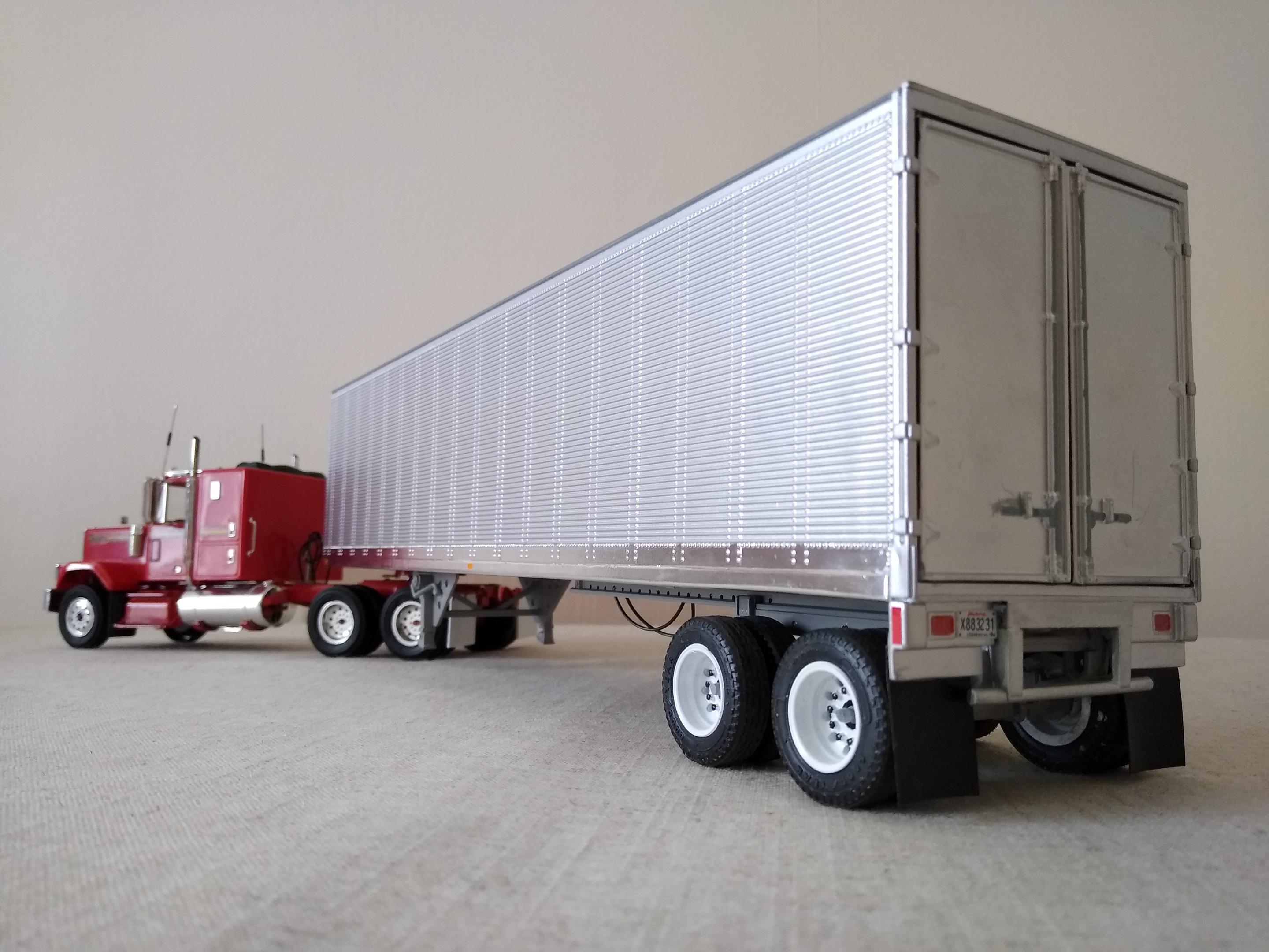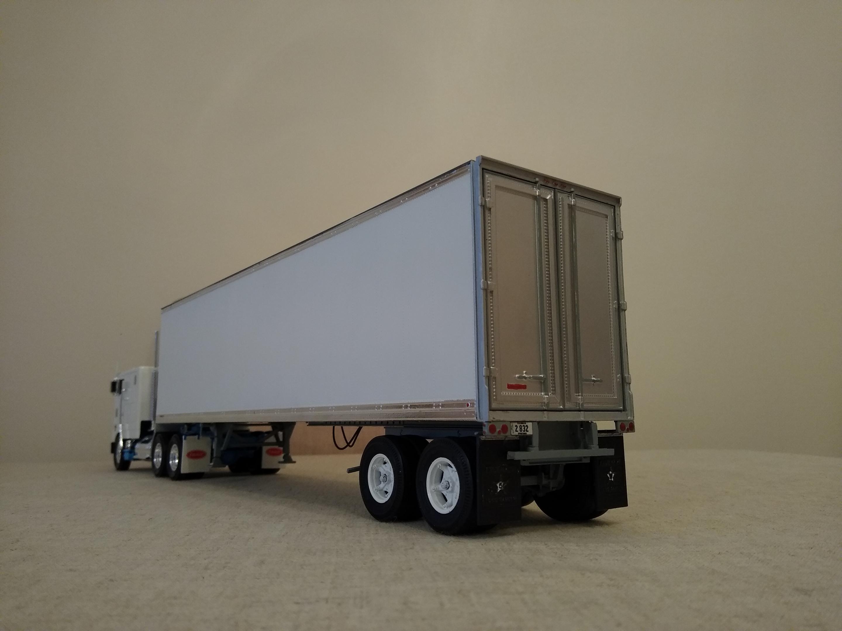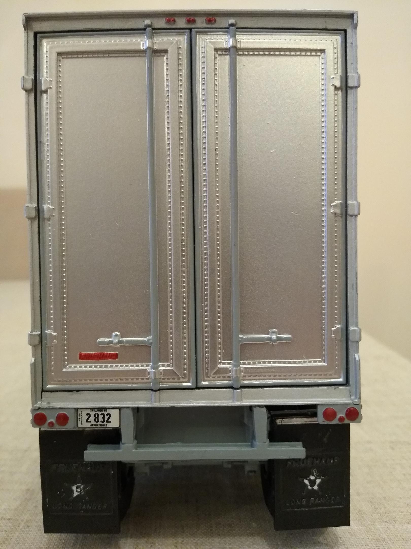 Finally finished the trailers. Added the air lines for the sliding tandems on the Fruehauf and just detail painted the locks and seals on the rear doors. -