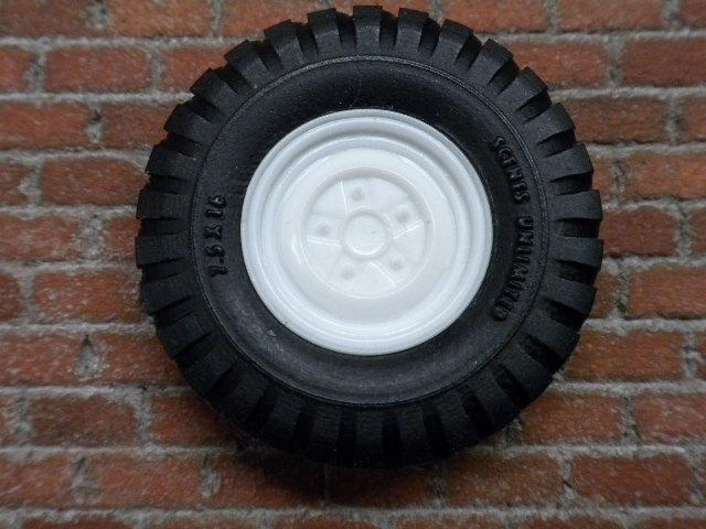 ..happen to spot this thread today and thought I'd post my experiment with white tires. It's not as easy as one might think, add white colorant instead of black. But what I have found with several 2 part urethane rubber compounds is that part B is dark pigmented, and adding the white colorant is tricky. Too little colorant and the tire is gray. Too much colorant the tire will not cure. Each of the compounds I've tried has different colorant ratio. These tires pictured are the beat results I've gotten so far....(didn't have the proper wheel for this tire nor any black paint on hand to show a better contrast, so I improvised)...