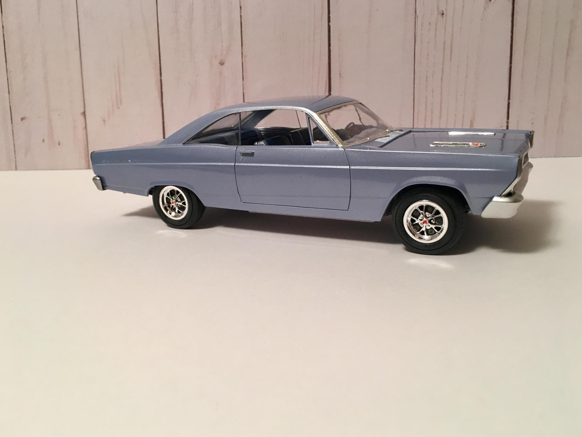 After realizing I had enough parts, including resin tail lights, to build a complete Fairlane from my extra parts, I finished this up yesterday. I scribed out the extra lines in the front grill to try to make it look like an actual 67. It’s not perfect, but it’s done.