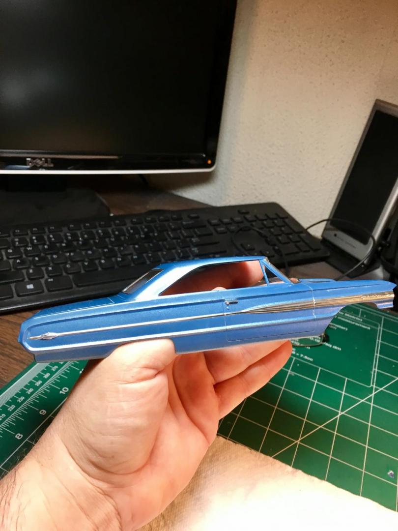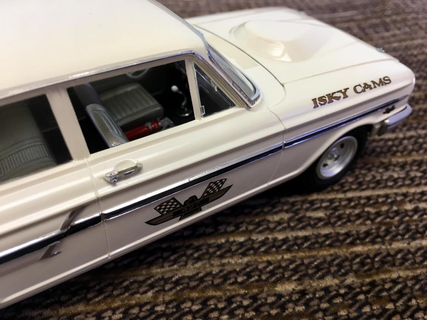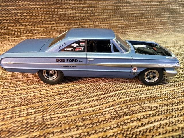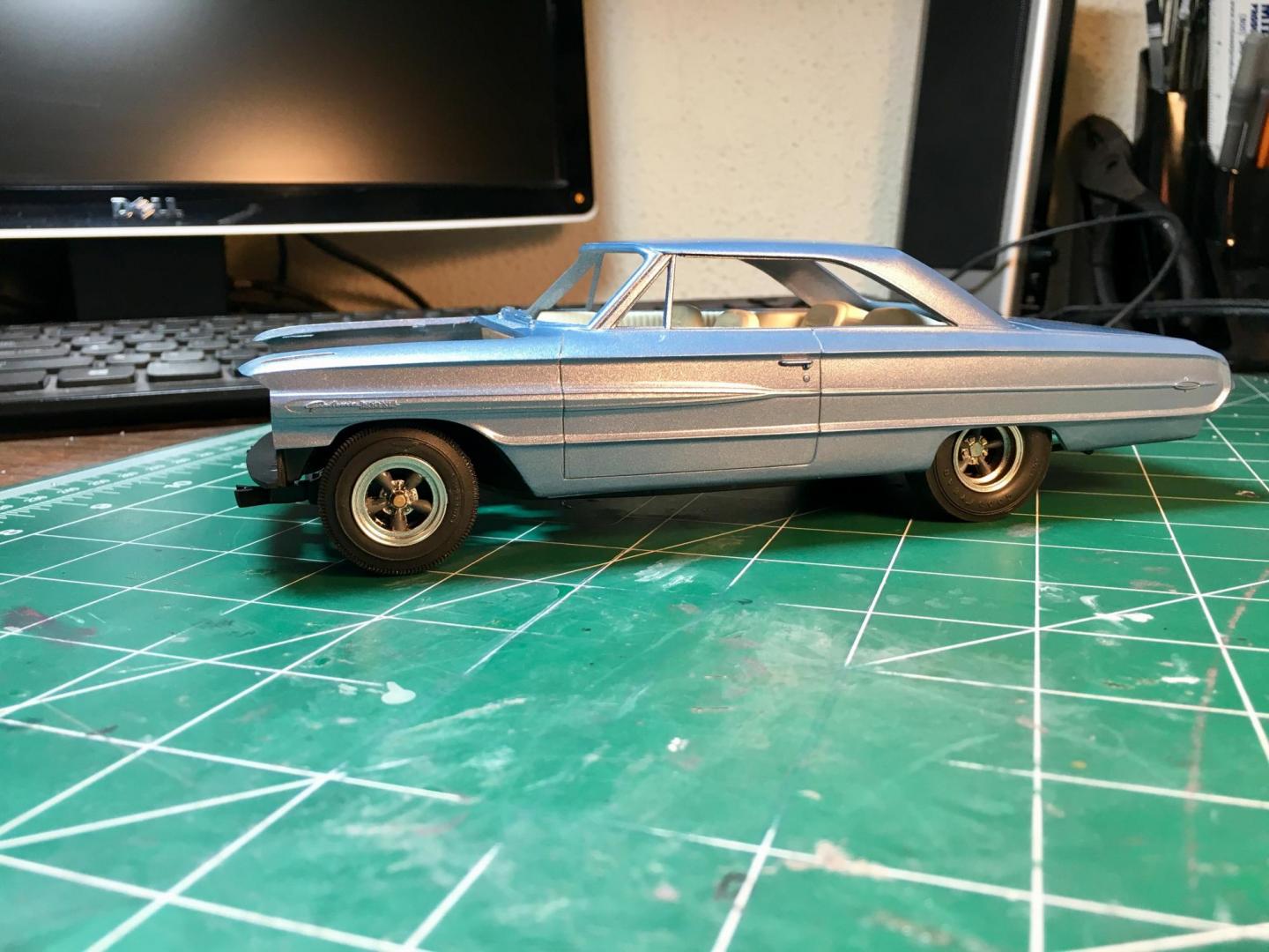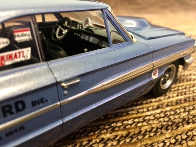 Finished the Galaxie last night. Usually I have to play around with the front end, when using the Starliner chassis. This one really became difficult. I lost two front fender top decals in the process, But its finally finished.