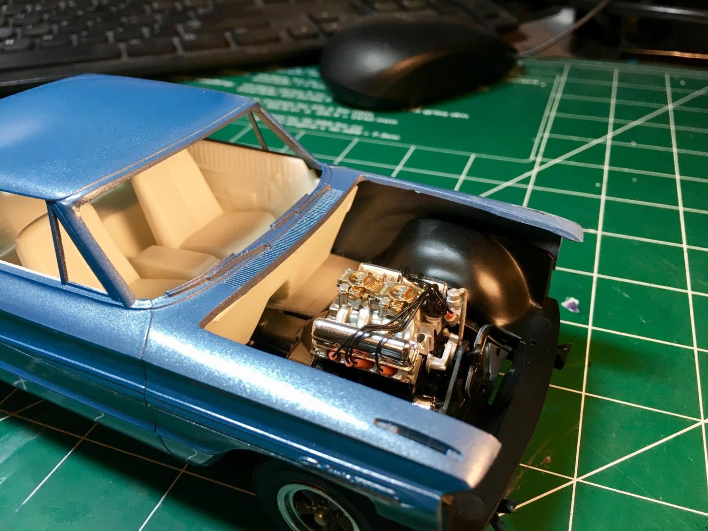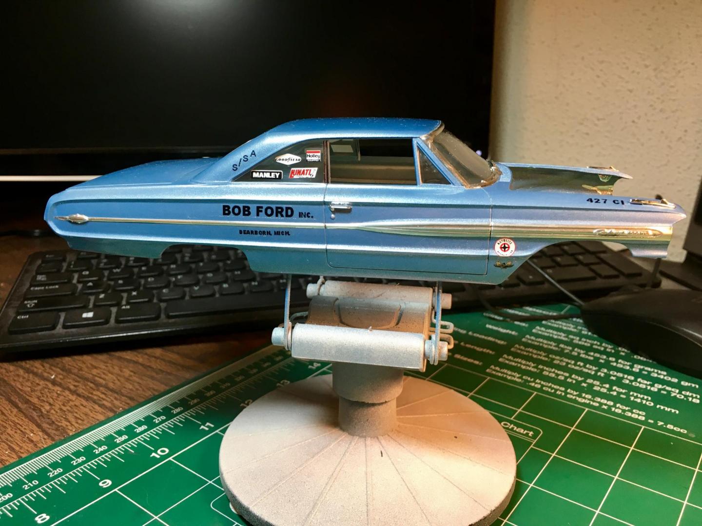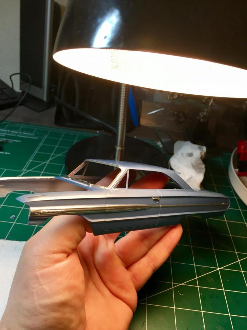 Finished the Galaxie last night. Usually I have to play around with the front end, when using the Starliner chassis. This one really became difficult. I lost two front fender top decals in the process, But its finally finished.