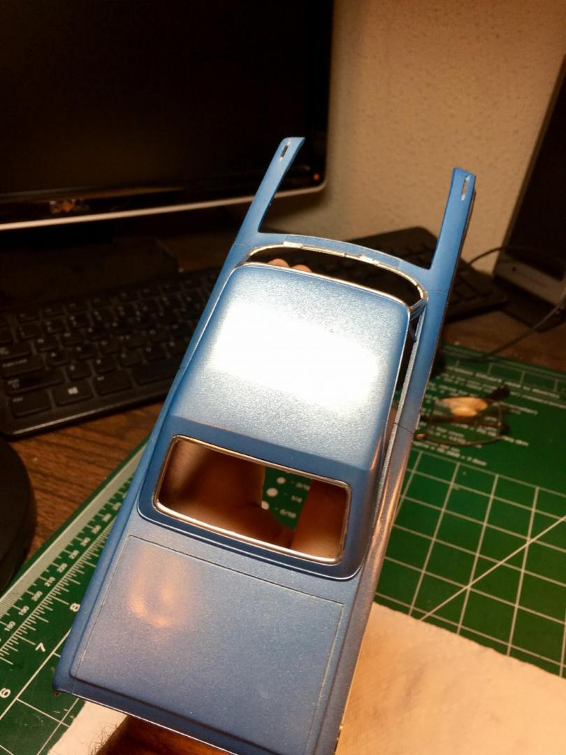 Got some work done on the white car. Thanks to fellow member Zen for the windshield. Pretty much ready to put it together tomorrow. Would do it tonight, but my back is pain again. Two spinal injections and the medicine is wearing off. Between this car, and the Bob Ford Galaxie, has tired me out. Anyway here is a few pics of what I did today.