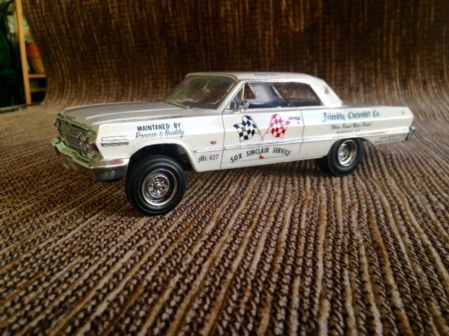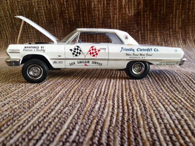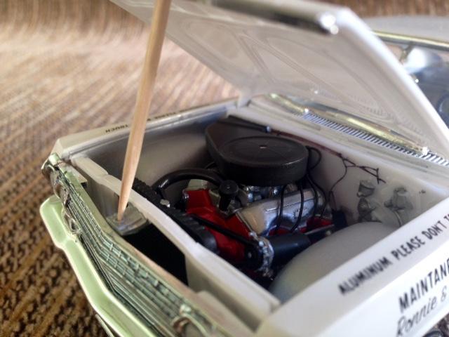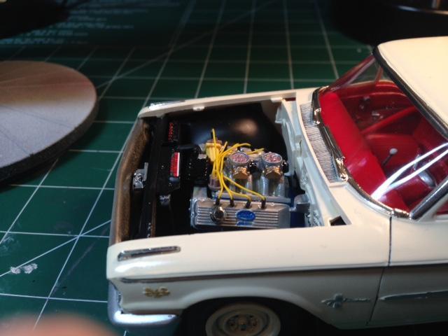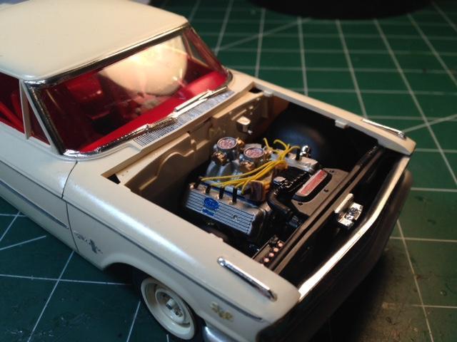 Thanks for the kind words. Yes it is a resin hood I found on eBay, for a couple of dollars. Actually I have a 63, and a 64 hood in my parts. Reason is, I'm not very happy the way this 63 turned out. First, I rushed the build, running out of BMF, and going over the side trim with a silver marker. (Ouch)! Then, the engine is a 427 SOHC from the Shelby kit. The engine looks ok I guess, but it sits a bit tilted, but the real problem is the plug wires. Not realizing when I added them, the boots should be more "flush" going in to the covers. Like a dummy, I have long boots like on conventional heads. I'll post a pic up today. Since I have another interior and kit, hood, etc, I'd figure I go another round at it not making my same mistakes. But if you check out online, I'm sure you can find the hood you want.