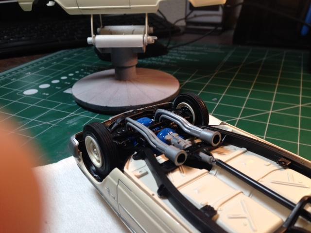 Thanks, John. Did a little work today on the white car. Still waiting for BMF to arrive. Should be here tomorrow. Sprayed the white car Racing White Tamiya. Also got just about everything painted except the interiors of both cars. Here is a couple pics of the white car, with its wheels, and engine.