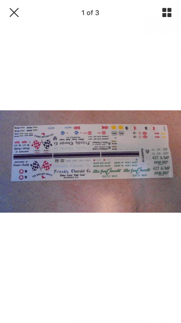 Just looking for some info on this car. I've searched everywhere but not much turns up. I'm currently building a Revell 63 to resemble this car. From what I've seen in my searches, this car had a light blue colored interior? Please correct me if I am wrong. I have a Z11 interior tub from MCW. If this isn't correct I also have the bucket seat set from them as well, in case I need them, if the car did not have s bench seat. I also have two sets of decals. Sox & Sinclair from Slixx, and another Fred Cady set Dick Milner, and Green Chevrolet. Can anyone with knowledge of the old Super Stockers please set me in the right direction on the interior type and the proper decal for the build to be as correct as possible?? Thanks in advance.