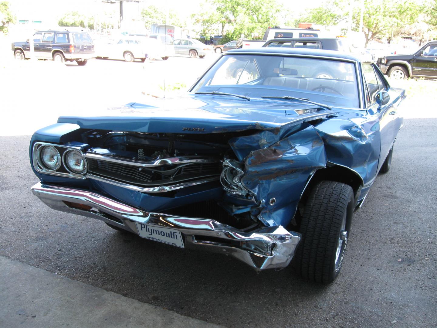 The GTX was written off as a total loss. But I believe the owner retained the salvage with the intent to repair it. The only issue with that car was lack of power steering and power brakes.