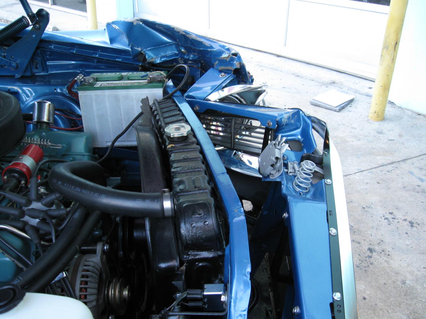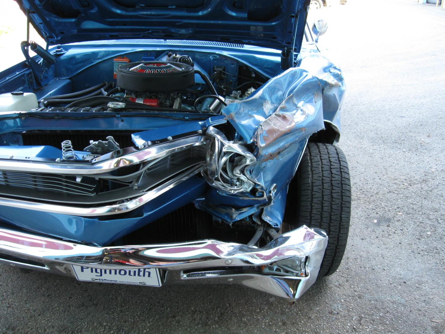 I'm certainly not suggestion you are doing anything wrong. Just showing the real thing. You can see a small tear in the radiator support, the radiator is bent, the fan shroud is bent and the radiator hose is about 6"'s from where it should be. Again, just things to maybe try in the future. I love old Mopars and just about cried myself when I saw it.