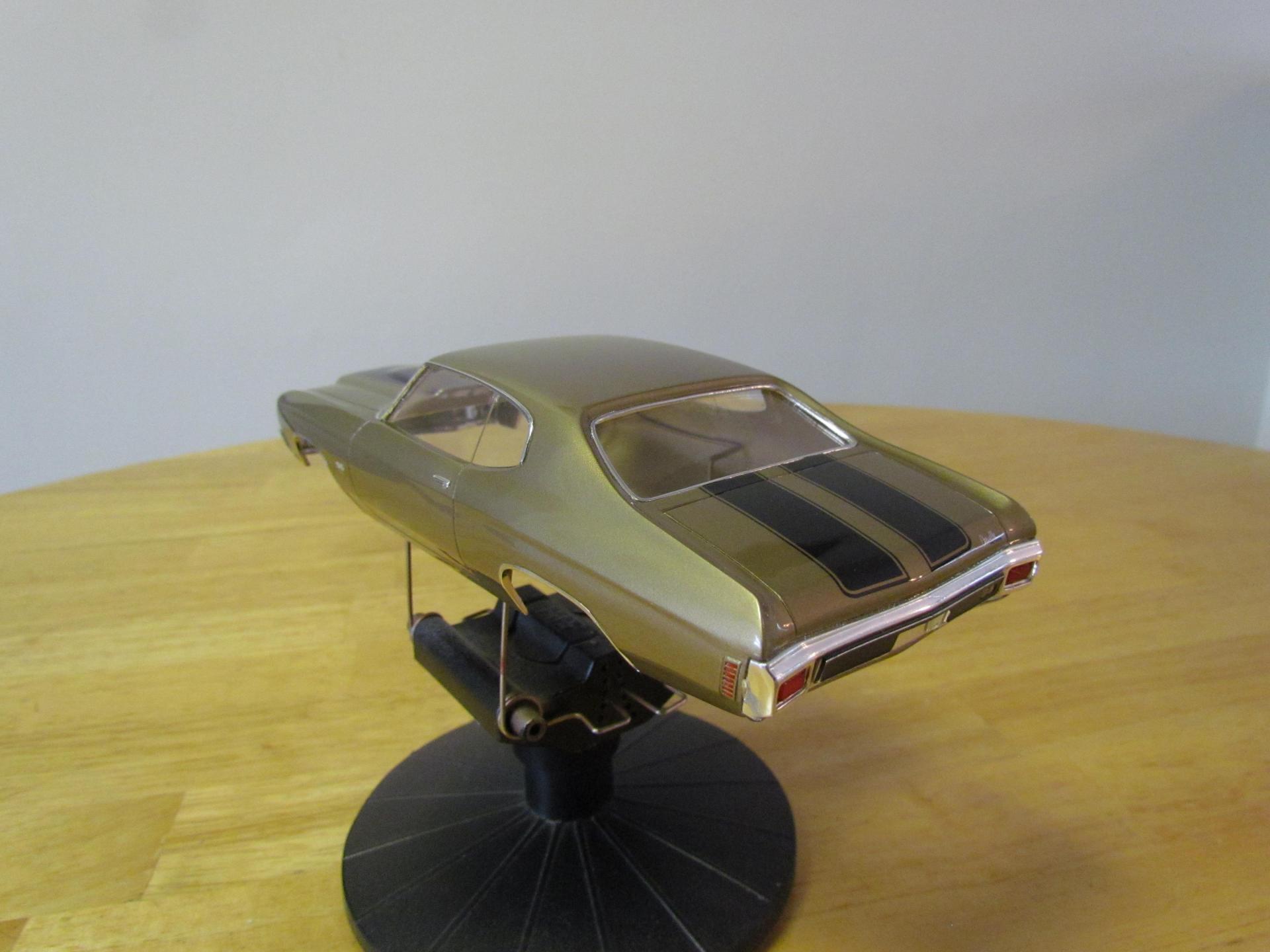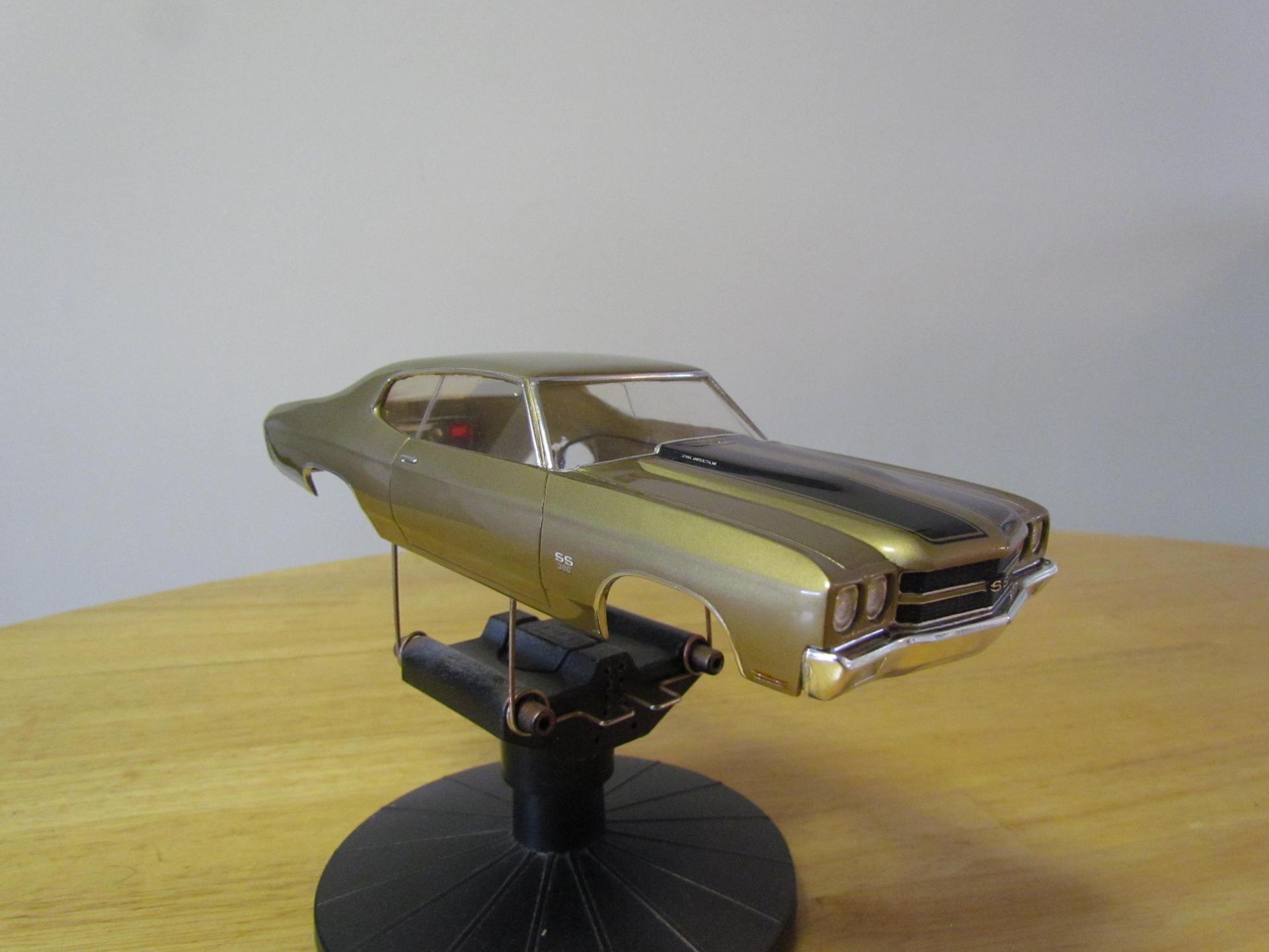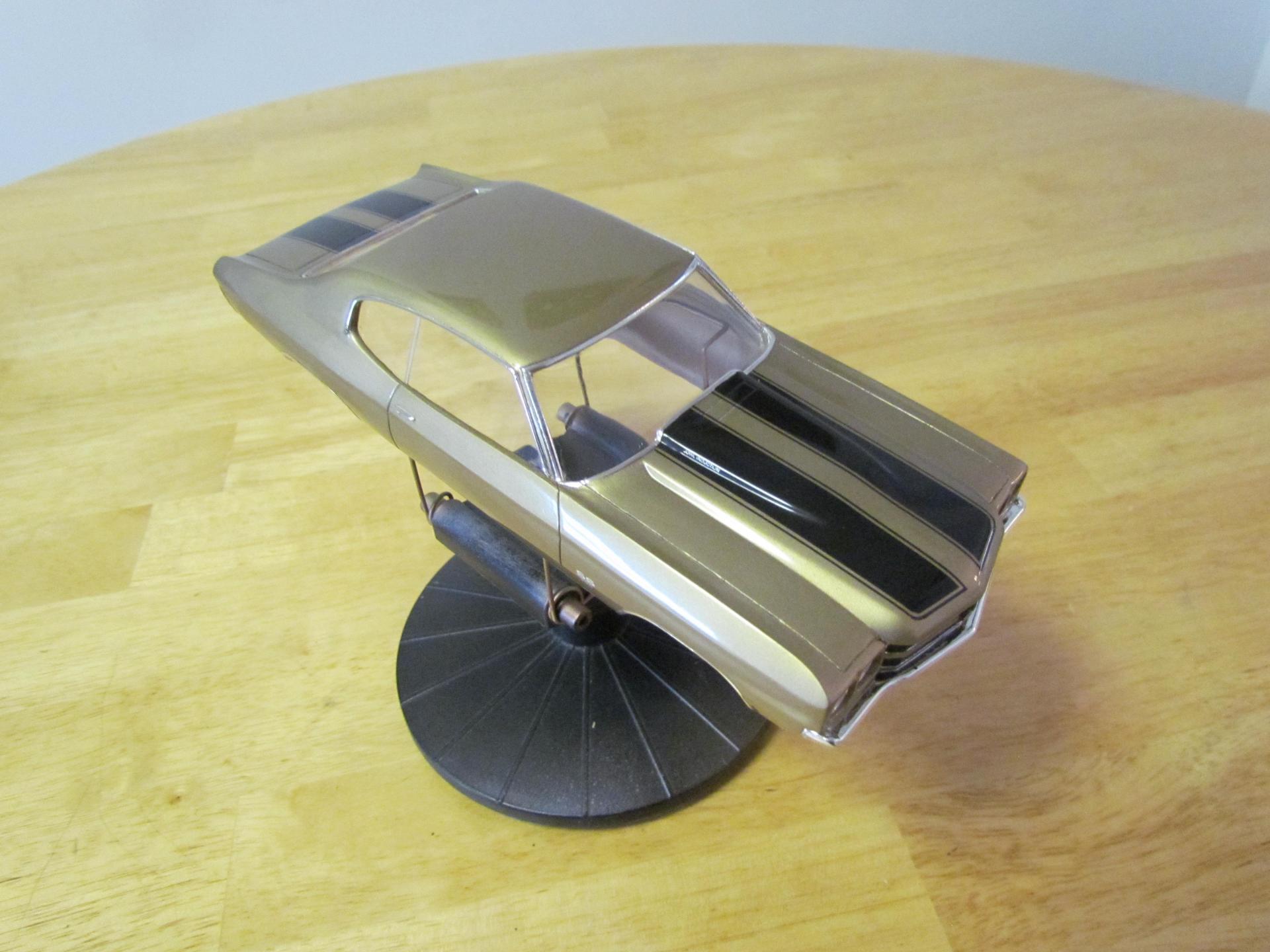 Thanks guys! I feel the AMT '70 Chevelle has the best overall shape of the available '70 Chevelle models. The fender/quarter panel bulges are the main drawback on the body of the AMT kit but with some work can be made to look closer to correct. A couple of months ago I painted an AMT '70 Chevelle body for a friend that he's going to be using as a slot car for drag racing. I modified the side fender/quarter panel bulges on that one as well. I used the kit stripe decals. I cut the hood stripes apart and narrowed the fronts so they lay down straighter over the hood hump. They aren't as accurate as the Keith Marks decals but don't look that bad. Here are a some pictures. With the original body this makes 3 that I modified. I guess it's starting to come easier, well sort of. lol