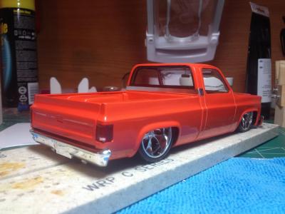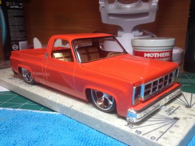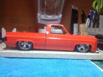 This is one I recently finished. Its the Revell kit released with a snow plow. I scratchbuilt the inner bed structure to correct the issues these kits have with the bed being out of square, uneven, and out of line with the body. I also raised the bed floor and scratchbuilt oversized tubs to clear the wheels. The bed has African Zebra Wood and photoetch strips. There are several subtle body mods and the grille has been opened up. The interior is fully detailed and the paint is Tamiya "Bright Orange" with their clear. Thanks for looking!