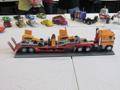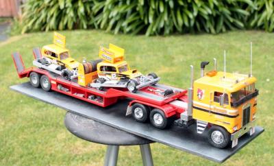 Here's my latest build !!! the tractor unit is AMT K123 kit , and the trailer is scratch built from styrene.