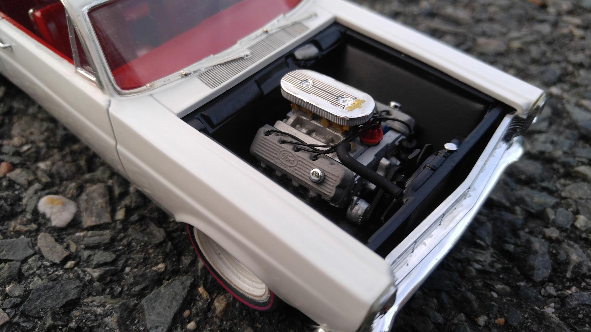 When I built my 66 Fairlane, I used the Revell Thunderbolt block, water pump, belt, and 4 speed, the 33 Willys heads, valve covers, and front cover, the AMT Fairlane 427 intake, carbs, and air cleaner. The valve covers were stripped of chrome, and sprayed with Testors Fabric Grey. Then i used the breathers from the AMT 66 Galaxie reissue. The cast header manifolds from the AMT 60 Starliner were modified to fit. Not correct but i wasnt trying to build headers.