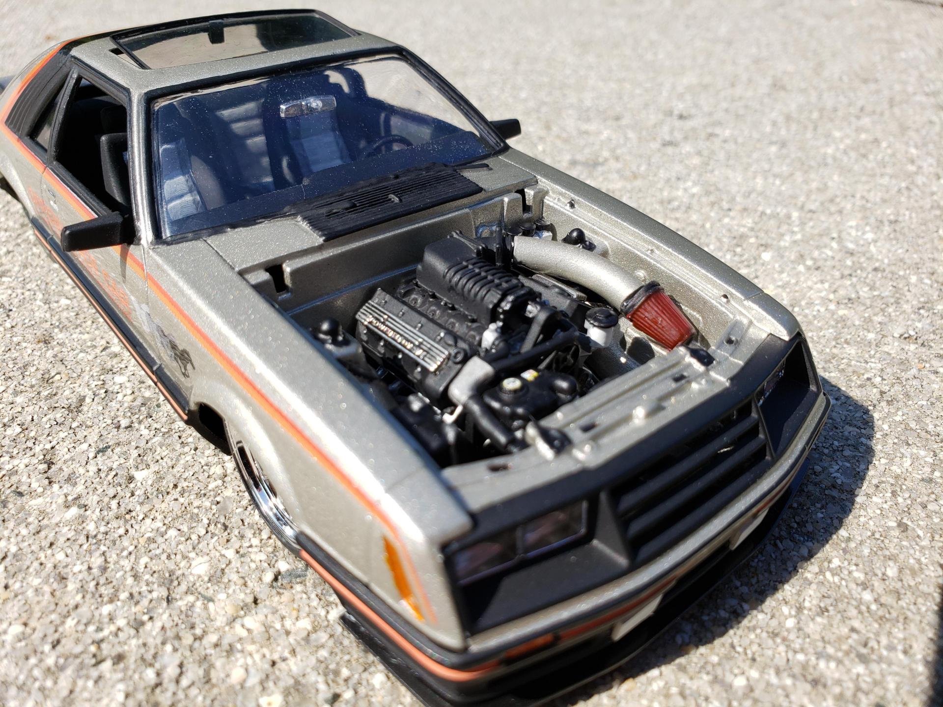 Hey folks! I got this kit when it first came out and got right to cutting on it. I'm doing it pro touring style, go figure Lol. Power is a mix of a 5 litre Coyote and the front cover, blower, intake, and modified belts from a Revell GT500KR kit, making a roots blown 5.0. Suspension is modified AMT Wagon Rod front and rear. Wheels are from the legend, Steve Zimmerman. Color will be a factory aqua with white and tan interior. All comments are welcome!