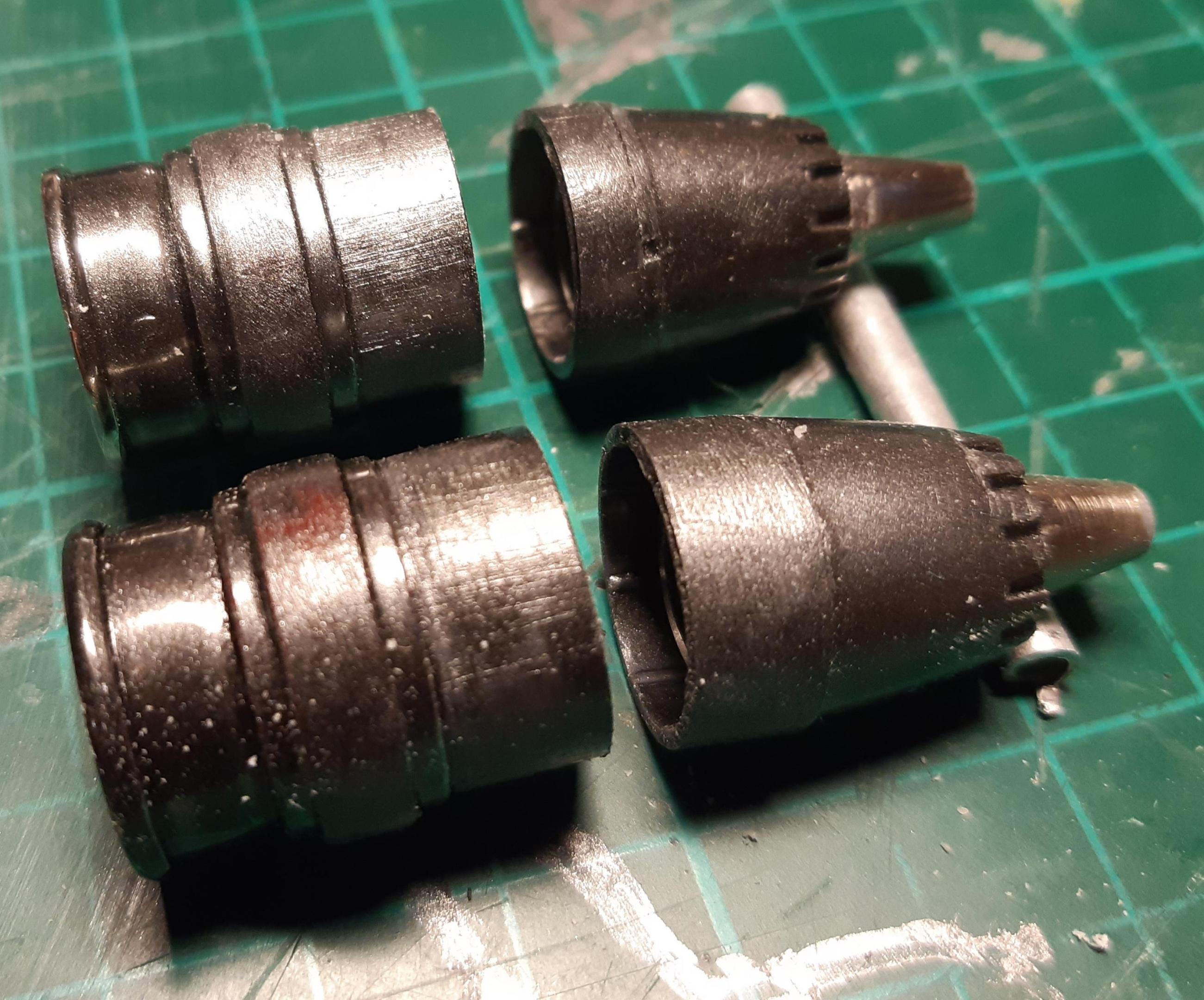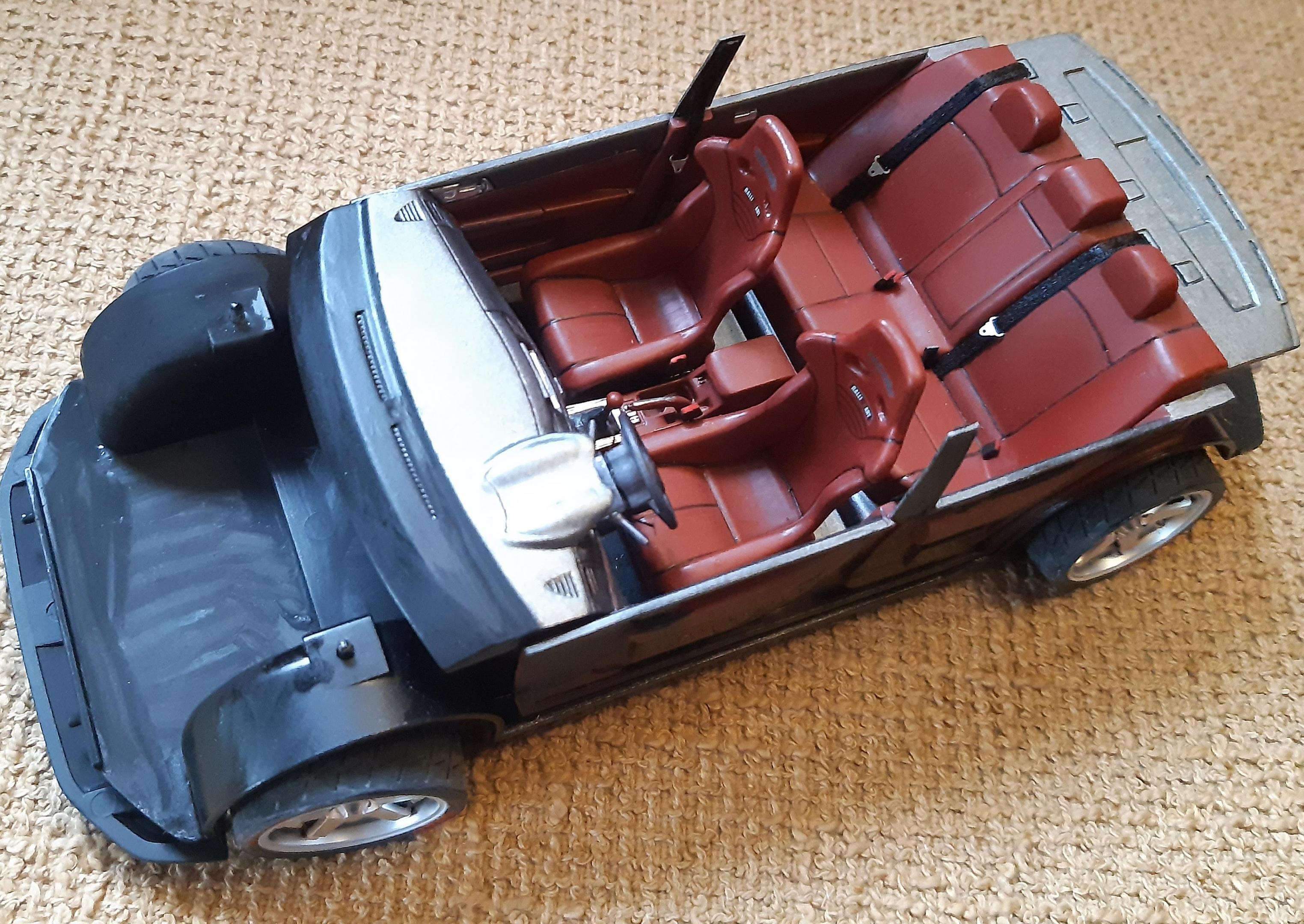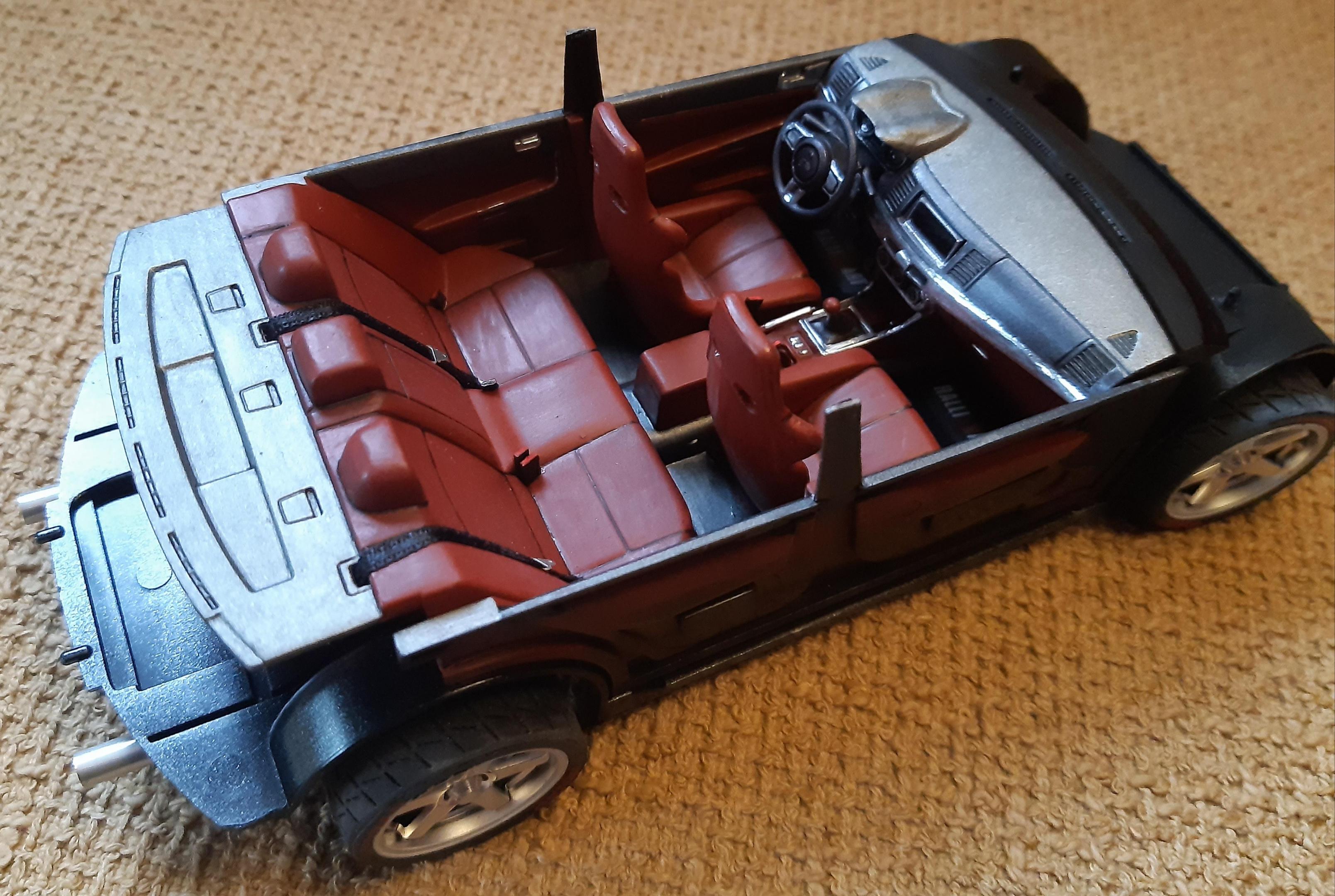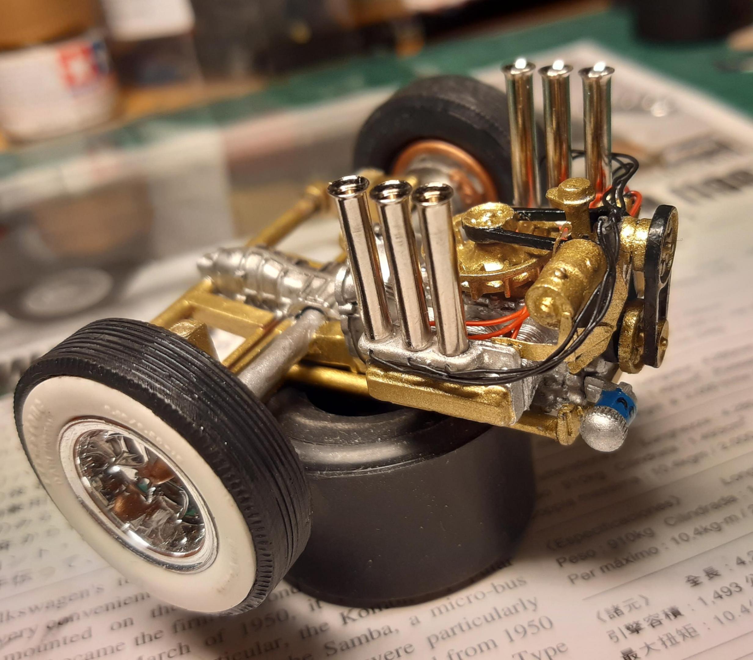 I'm back with this build! Shortened those previously schratchbuild engines so now they are not too big for this car. Also deleted the convertible bodystyle by adding a top unit from 36 Ford.