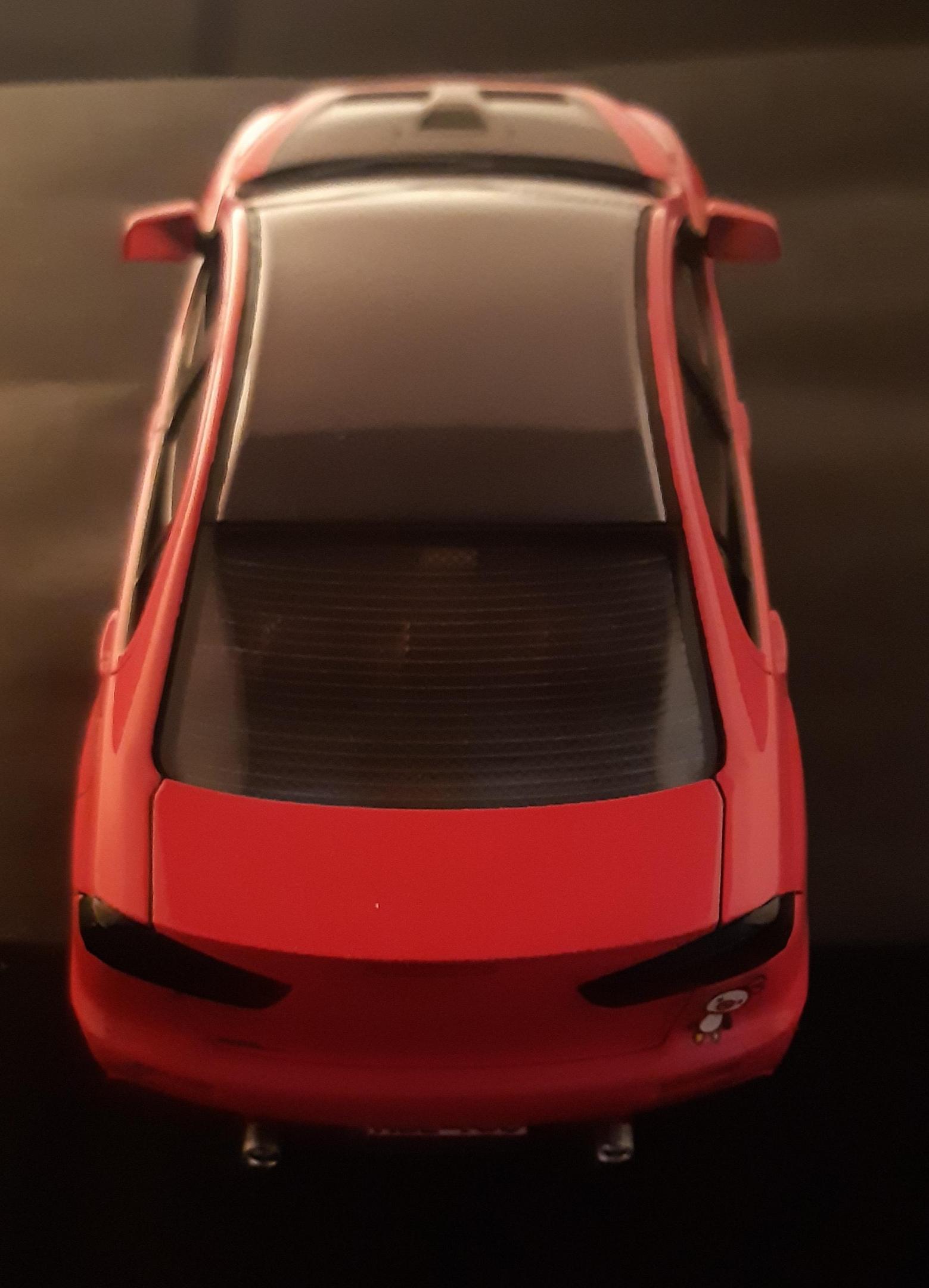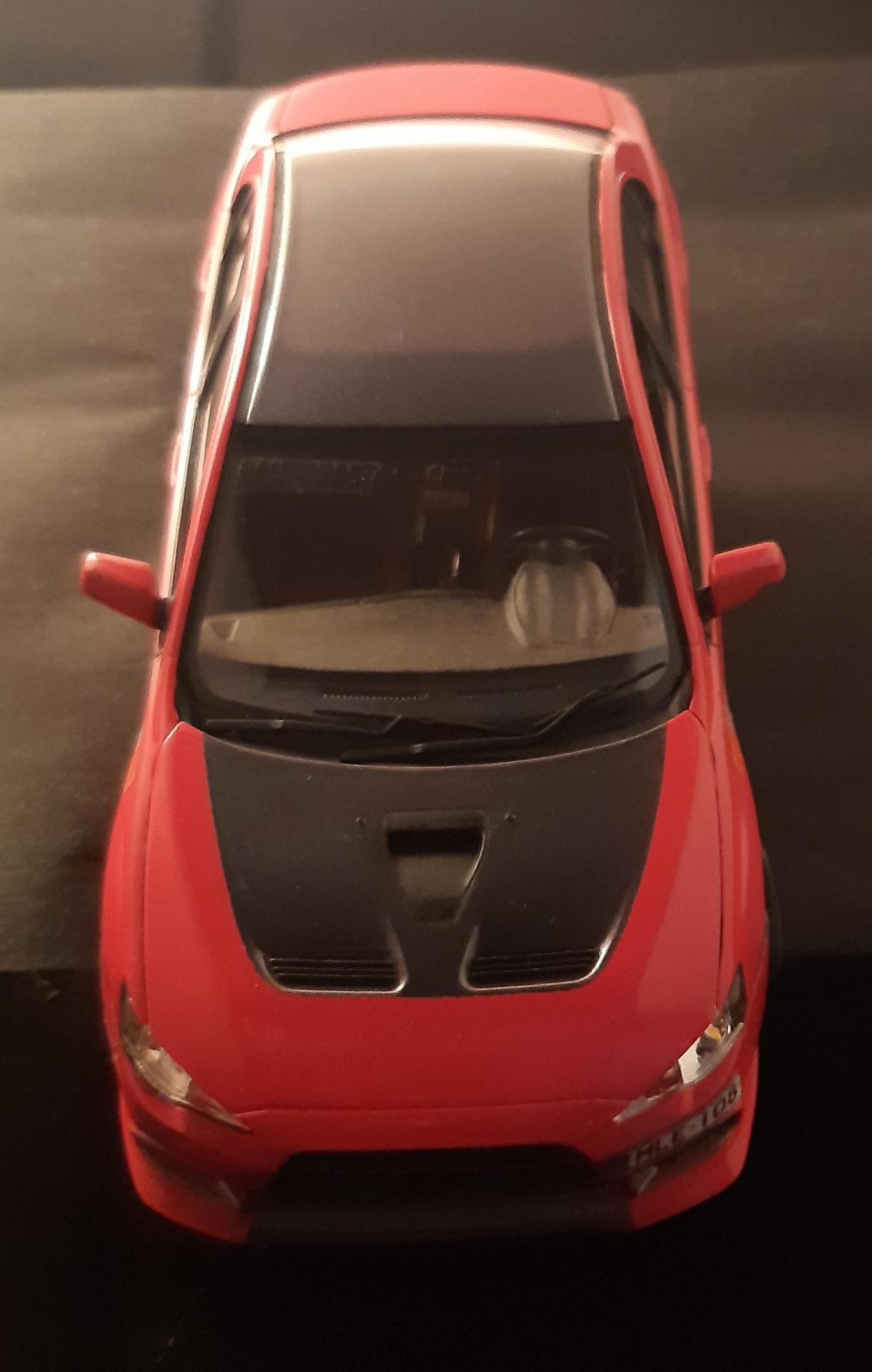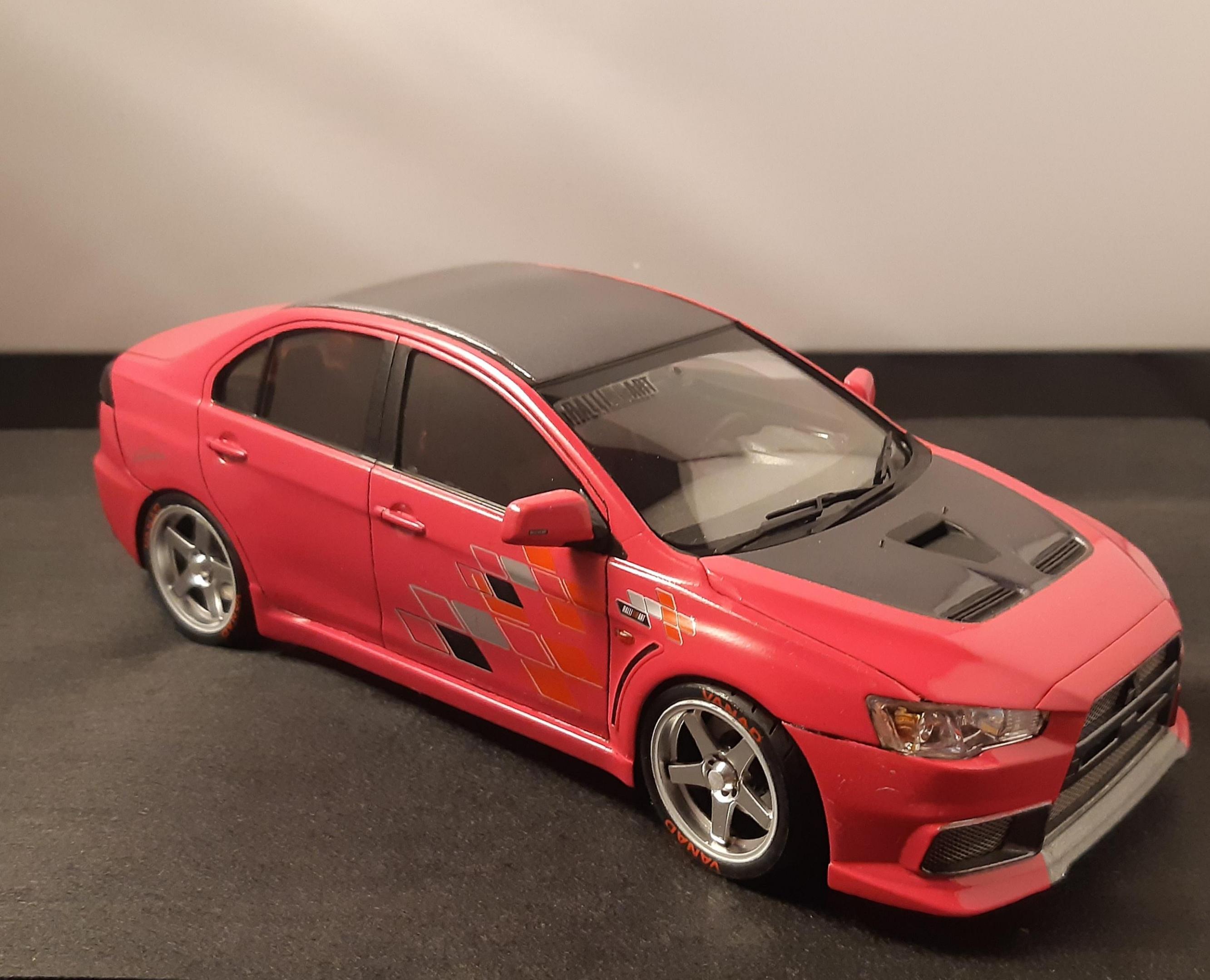 This is Evo X Ralliart from Aoshima with PE- parts and some other modifications. -Tinted windows made from smoke PVC- sheet from Raboesch. -Aftermarket seatbelts -Aoshima Skyline wheels -Tamiya 306 Peugeot tyres -Fujimi tyre decals -Tamiya cherry red and gun metal paint -computer generated local plates Thanks for looking!
