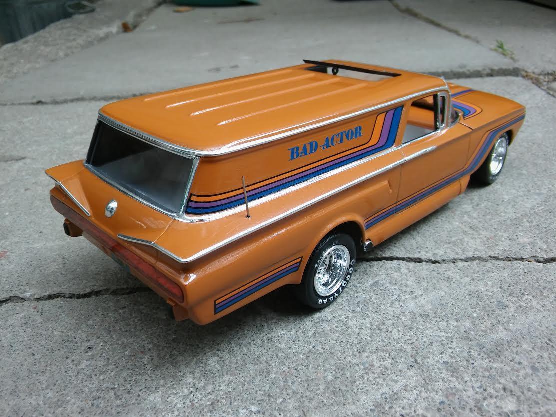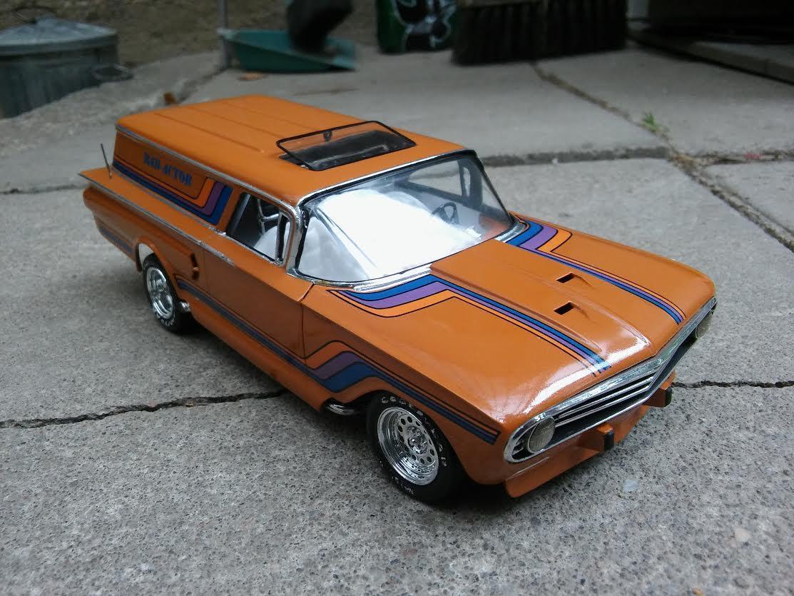 Hello! This is my almost box stock club project. I tried to achieve some sixties mild custom touch into this one. An AMT kit with some minor modifications and detailing, Pegasus wheel / hubcap combo and tyres. Paint: tamiya, hand painted scallops, some extra BMF work to the top to achieve brushed steel look. Thanks for looking!