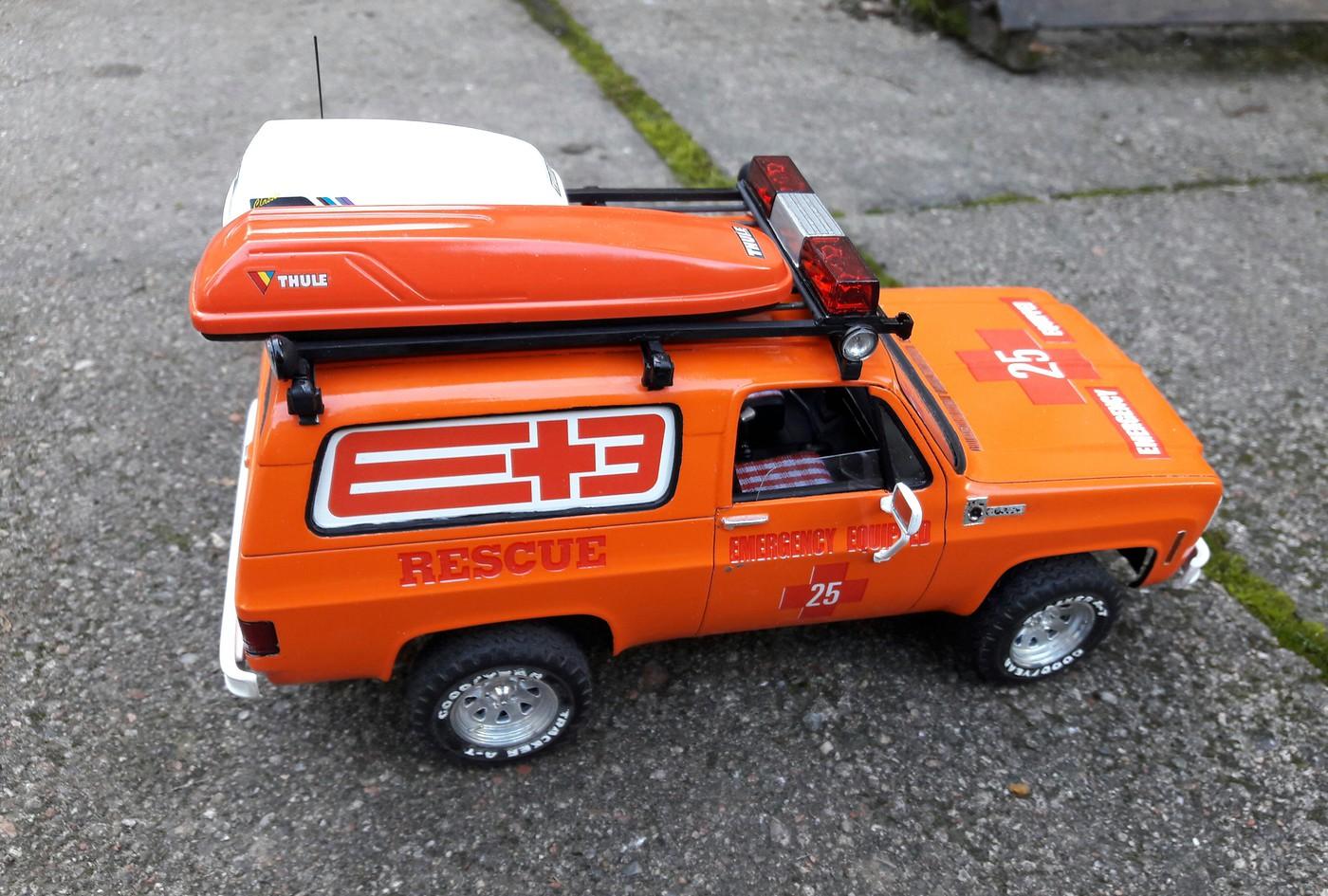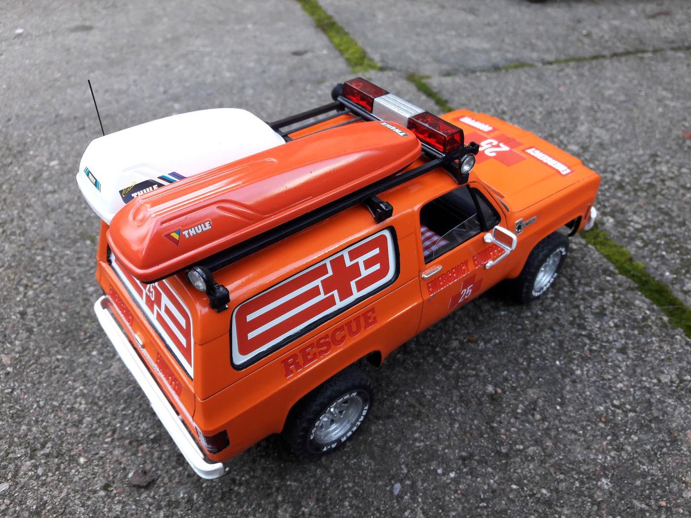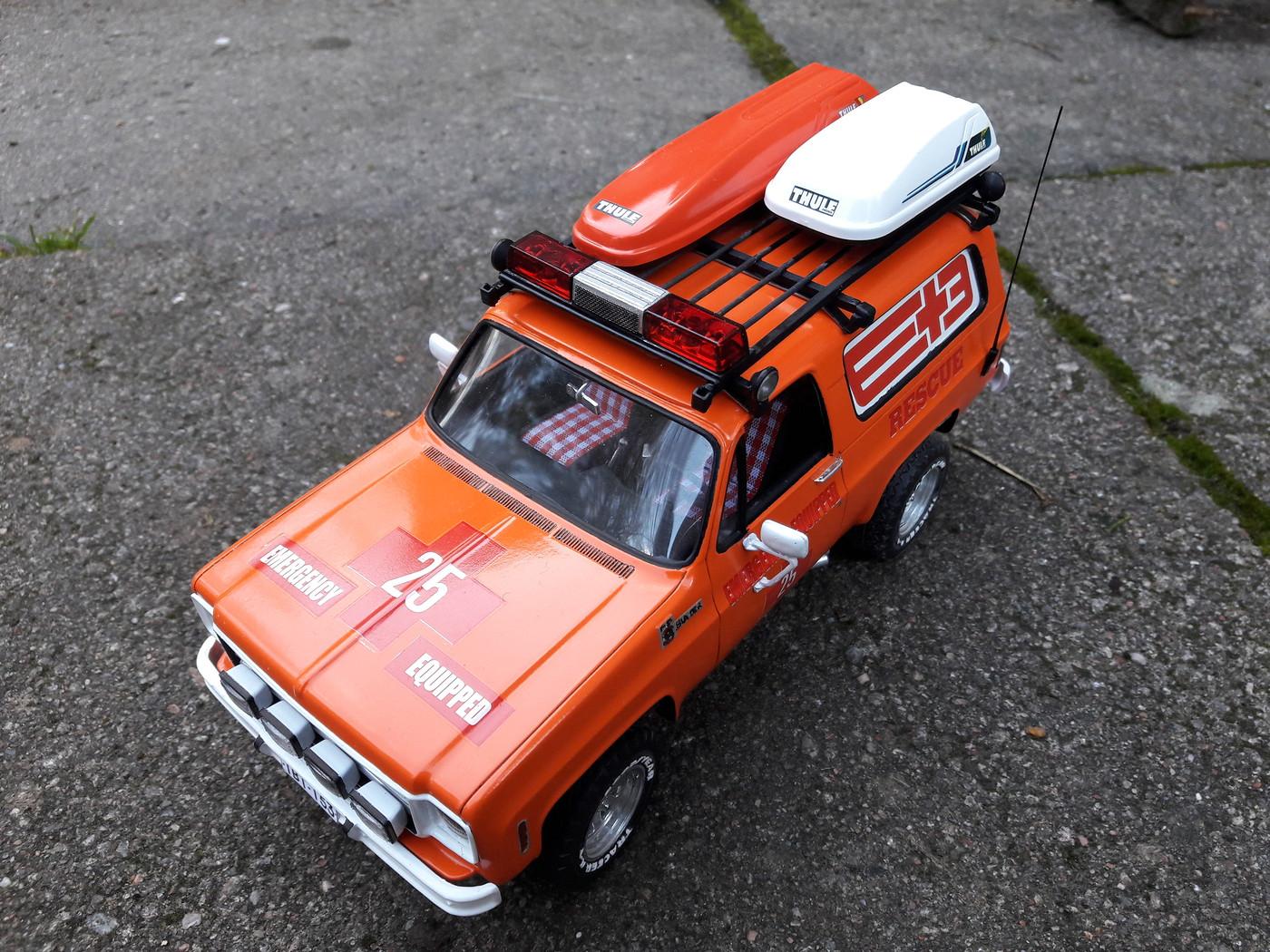 HI! This model started as a 1/25 snap rescue kit from MPC. Now it´s a model of a Search And Rescue vehicle with some extra detailing, scratchbuilt roofrack and so on.. Comments and questions are welcomed of course. Pics: