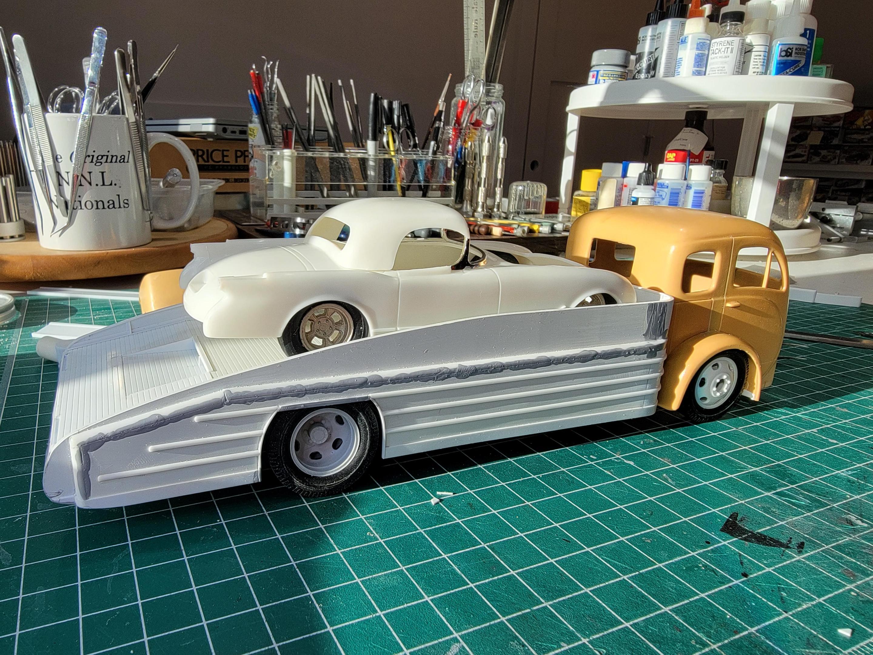 Well, a year and 2 days is pretty much a quick build for me. As always I couldn't leave things alone and changing that, meant changing this. Which in turn cause other items to be changed, upgraded and improved. But like all projects, I had a lot of fun this one. Next up is finishing my 57 Ford Country Sedan 4 door wagon and midget racer.....or the BMW Z4 GT...or...well check back in a year or so.