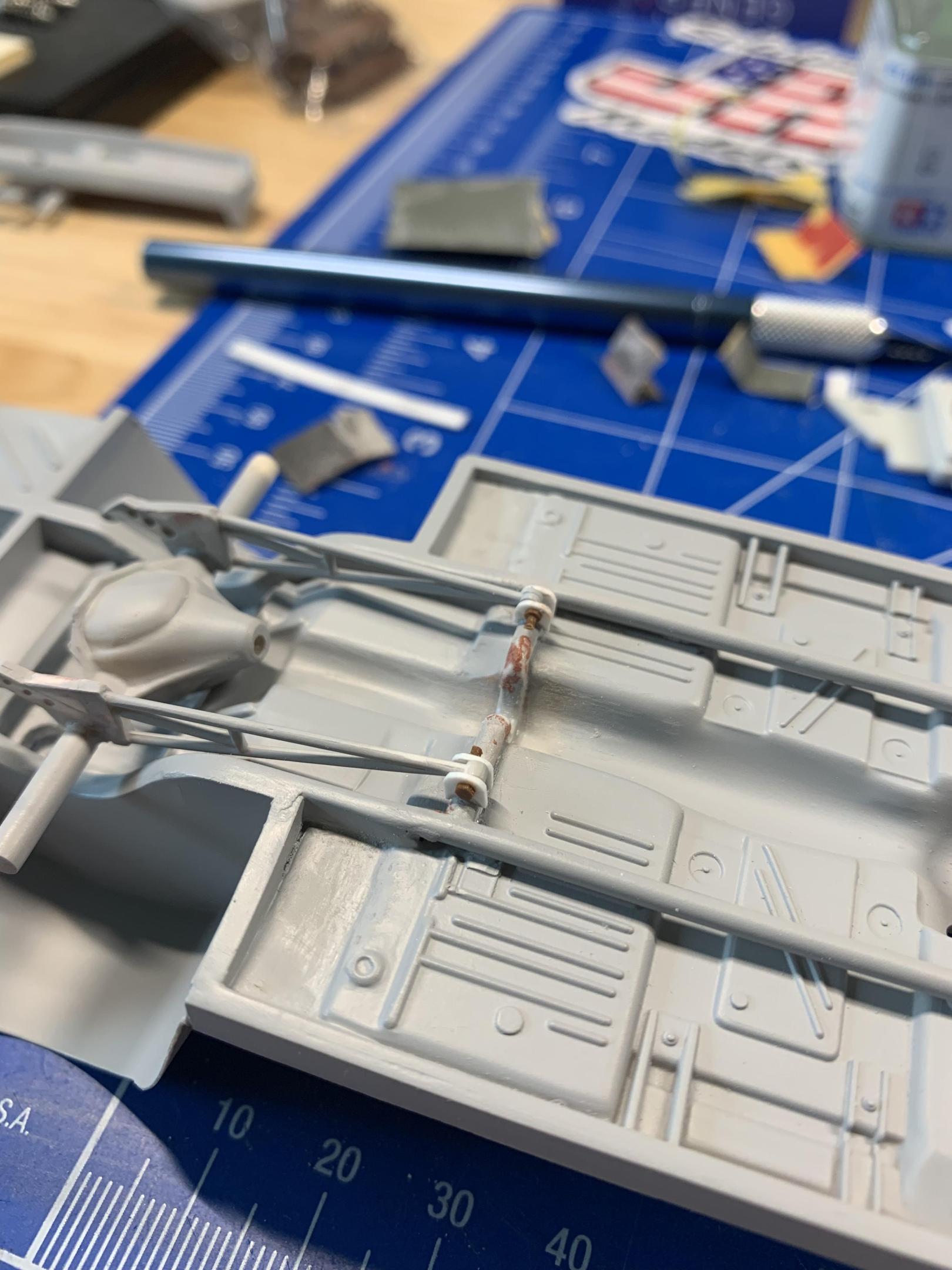LOL….That looked easier than it was. I have a lot of scrap plastic left over from many failed attempts, I tried left over exhaust pipes, tried heating and bending.080 evergreen rod numerous times, I finally gave up and got one close and pieced it together and puttied the seams. Now I just hope it’s in the right place. ??