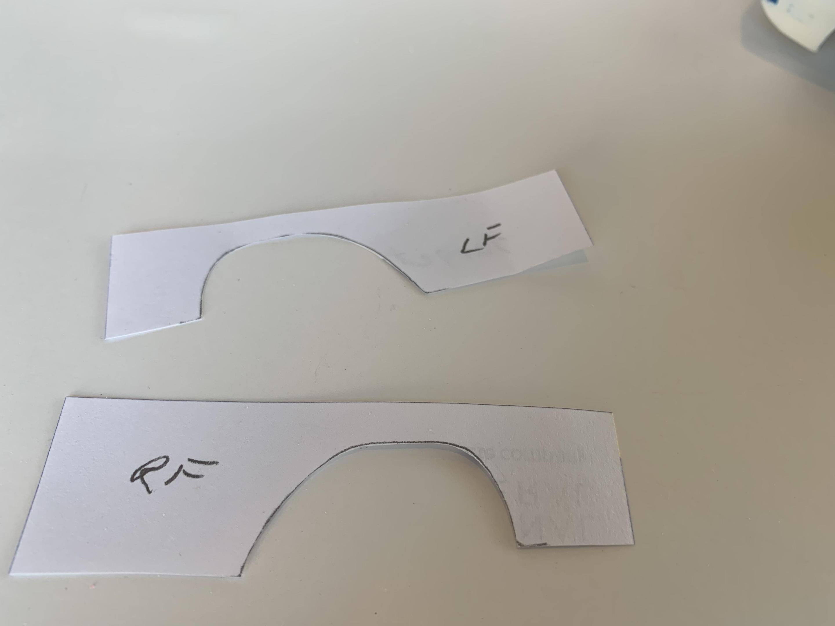 I made a template for the front wheel openings, and trimmed then accordingly. It’s starting to look like a Demon!