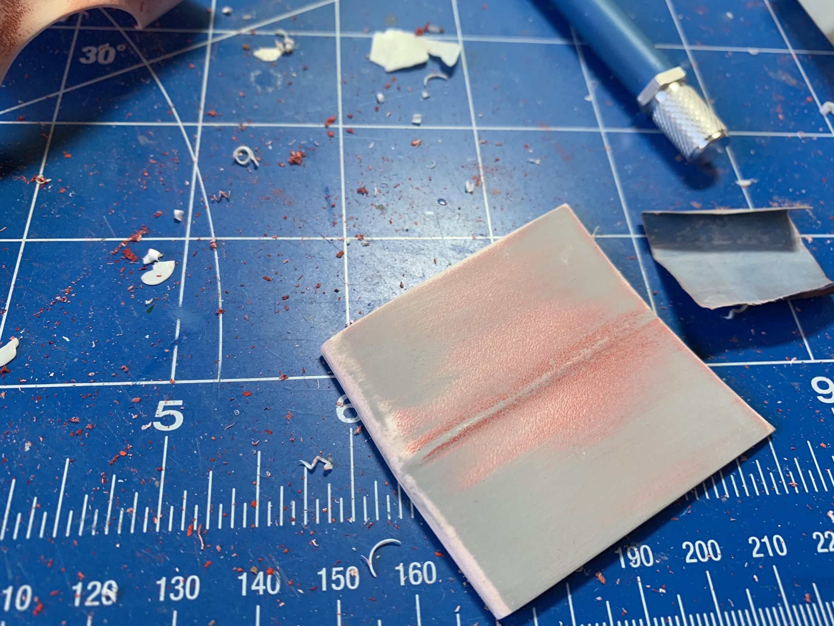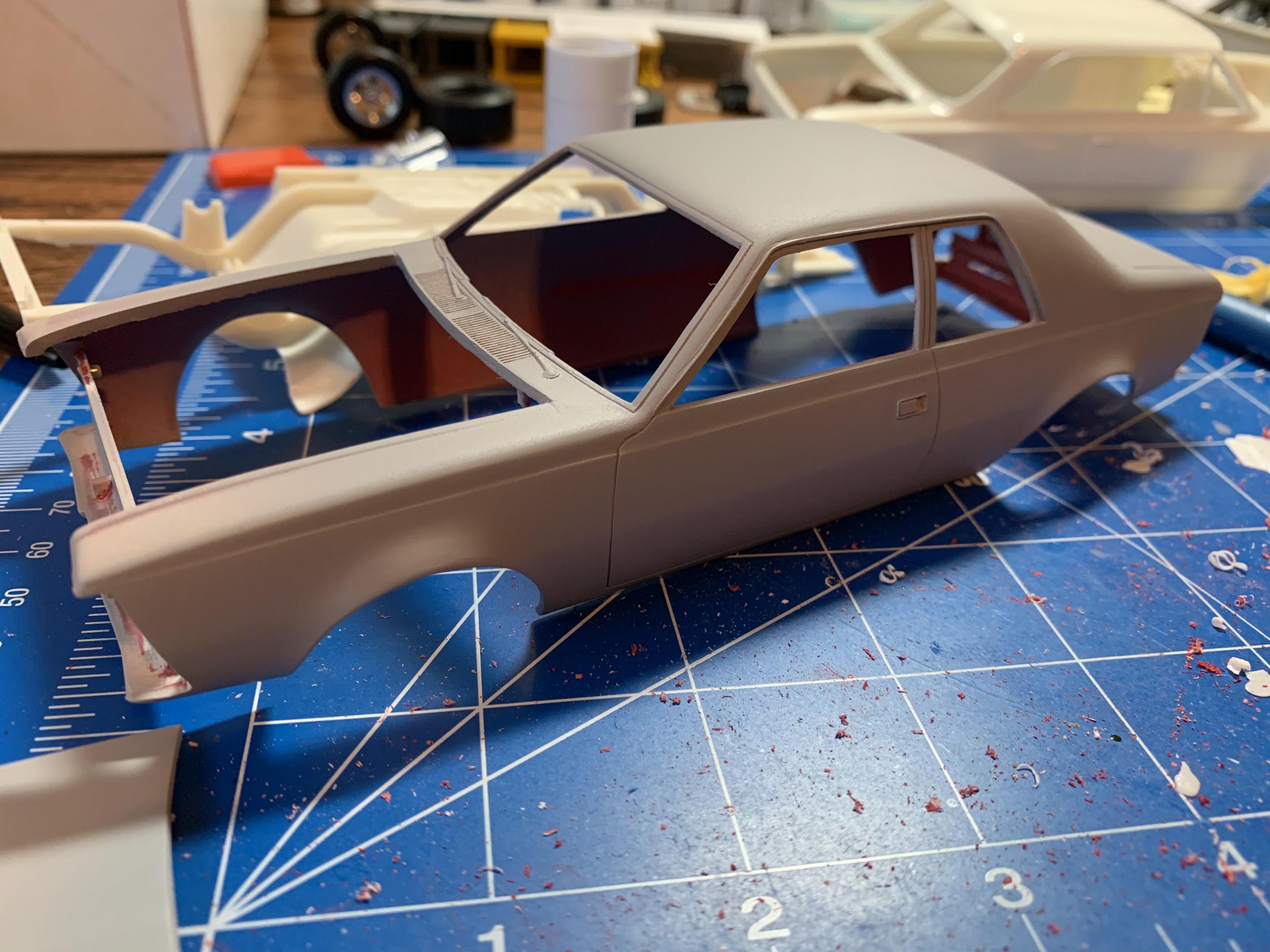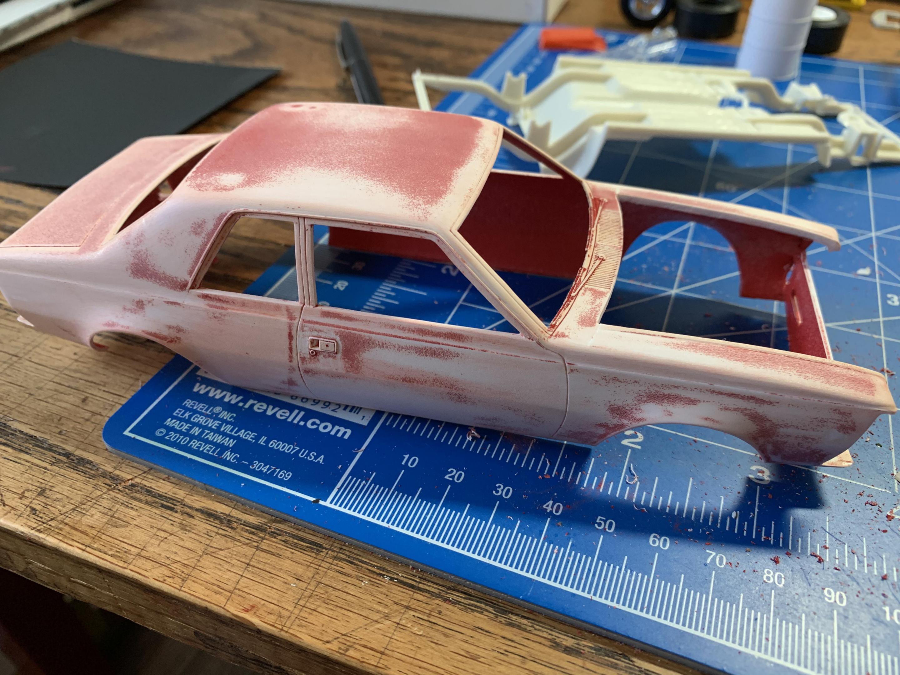 16. I started working on the body, as I mentioned in the beginning the body was painted with lacquer and the plastic was crazed. I spent almost two days sanding .scraping and rescribing the panel line’s, if I can’t save the body, there’s no need to continue. I started with 400 grit, primer and 600 grit, I think I’m good to go .
